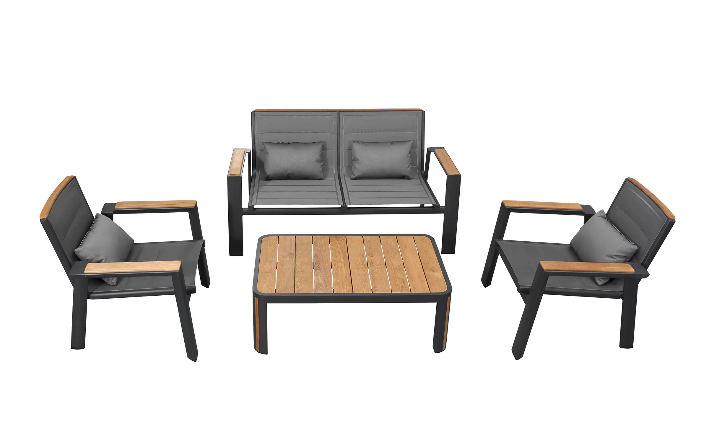 Grafitowy aluminiowy komplet wypoczynkowy ogrodowy GENEVA
