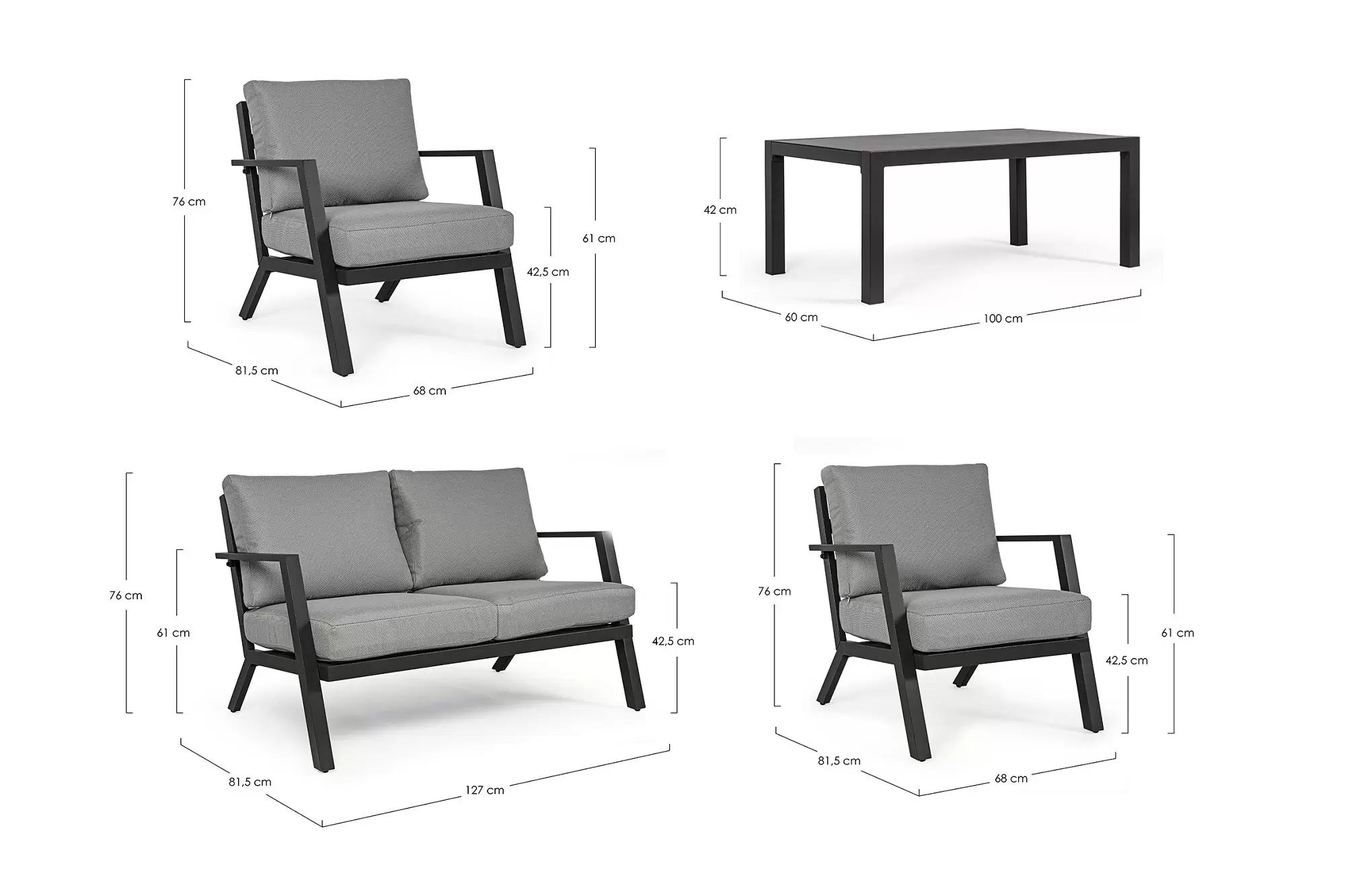 Szerokość 100 cm / Głębokość 60 cm / Wysokość 42 cm