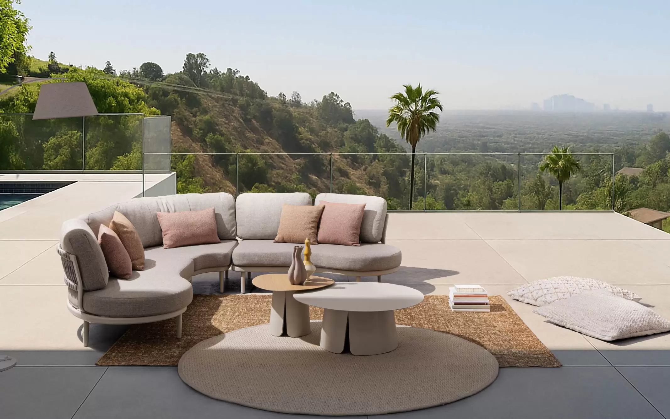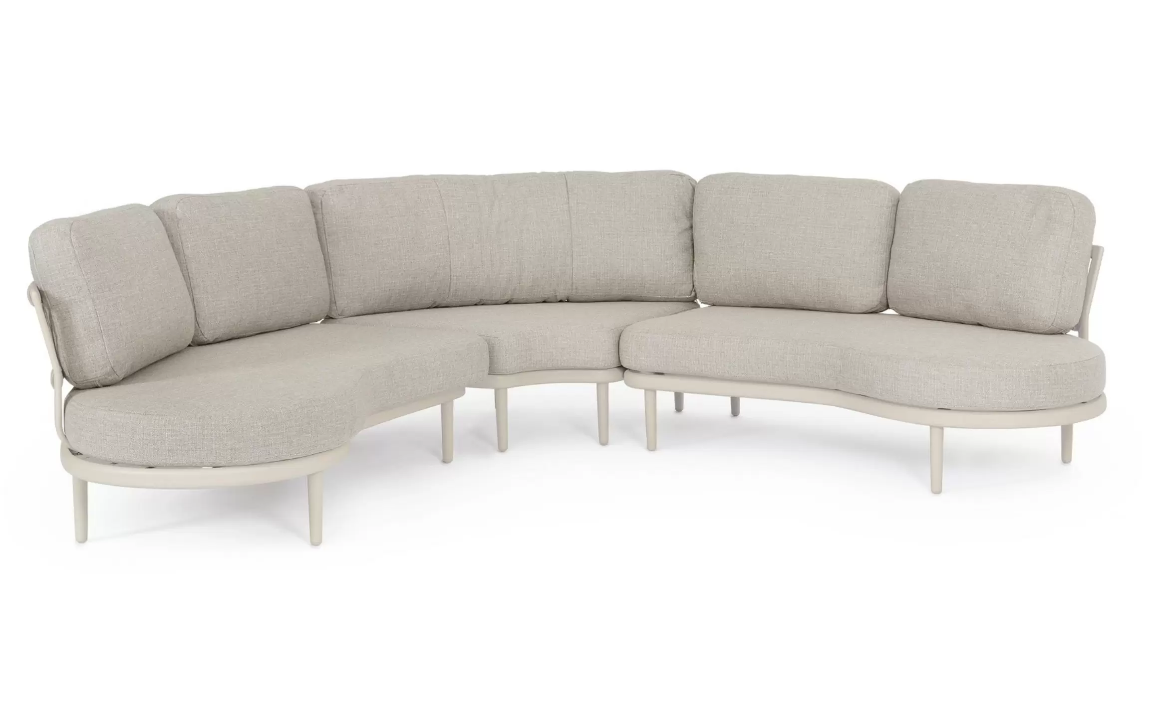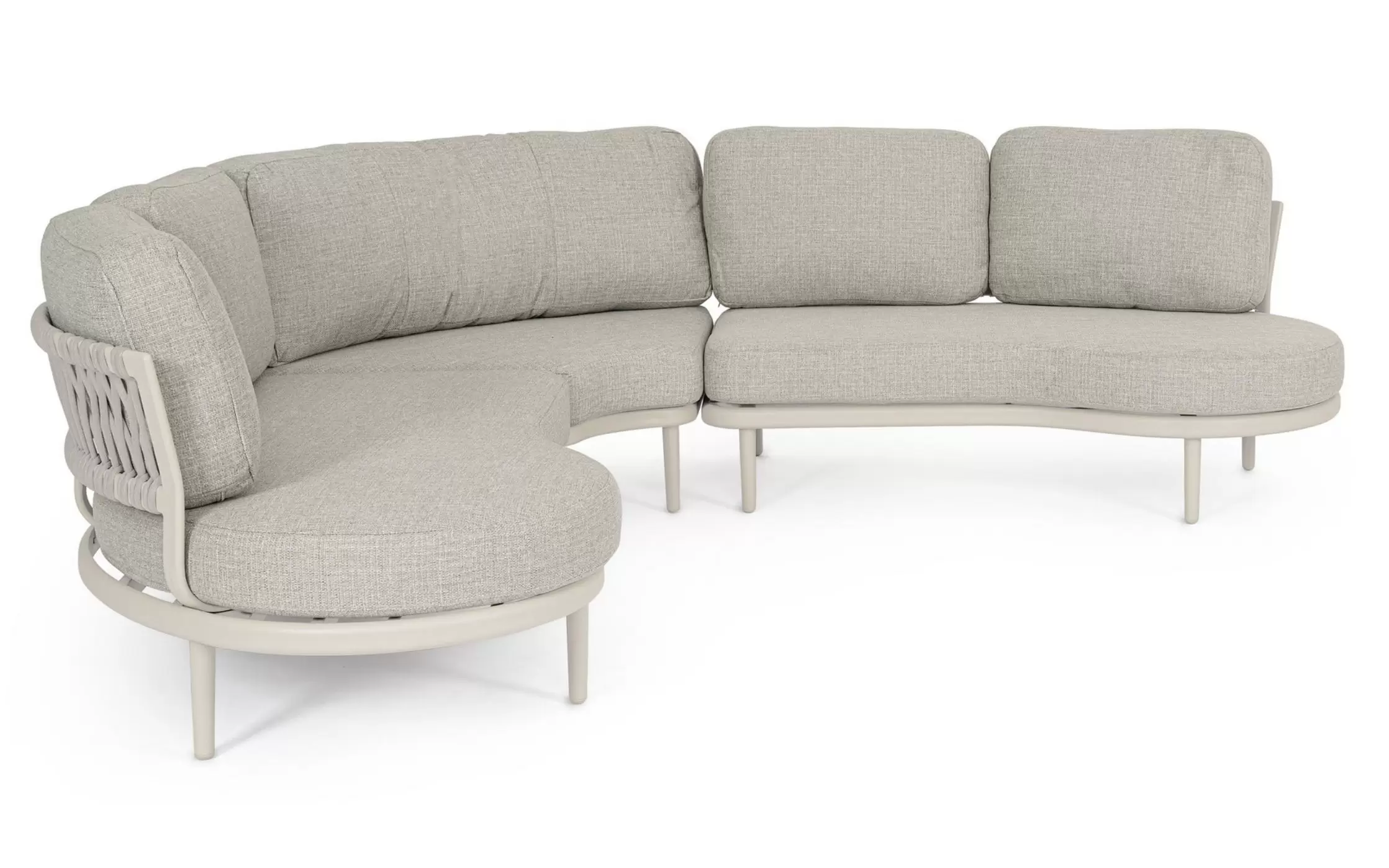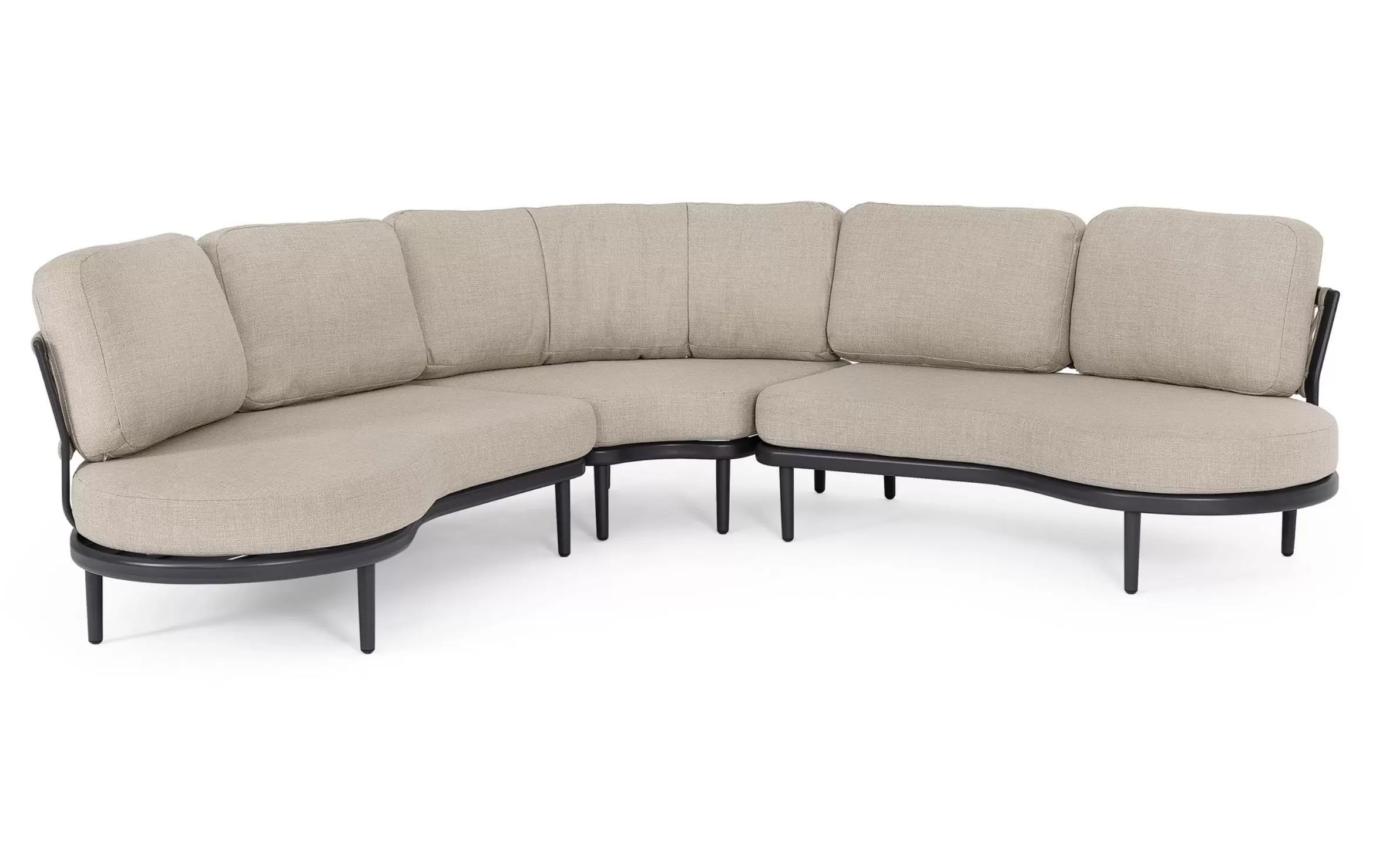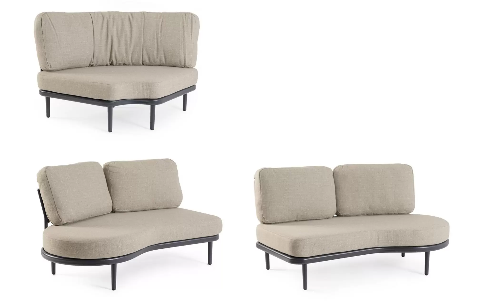 HELIOS to nowoczesny, modułowy zestaw ogrodowy o płynnych, półokrągłych liniach, który tworzy komfortową strefę wypoczynkową sprzyjającą relaksowi i rozmowom. Konstrukcja składa się z dwóch podwójnych modułów bocznych oraz jednego modułu narożnego, które po połączeniu tworzą elegancki narożnik o miękkiej, opływowej formie.