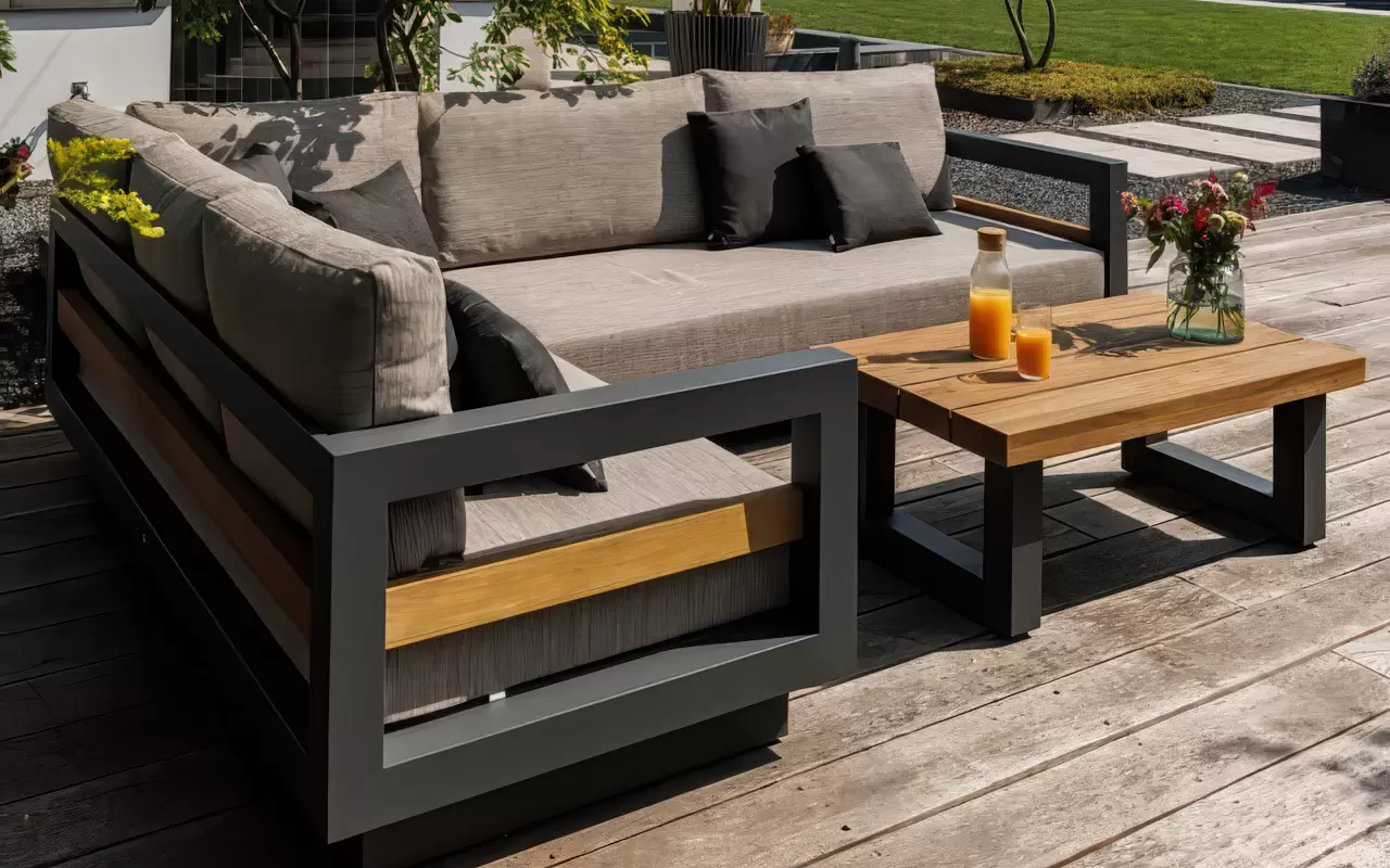 - Narożnik ogrodowy aluminiowy z elementami teak