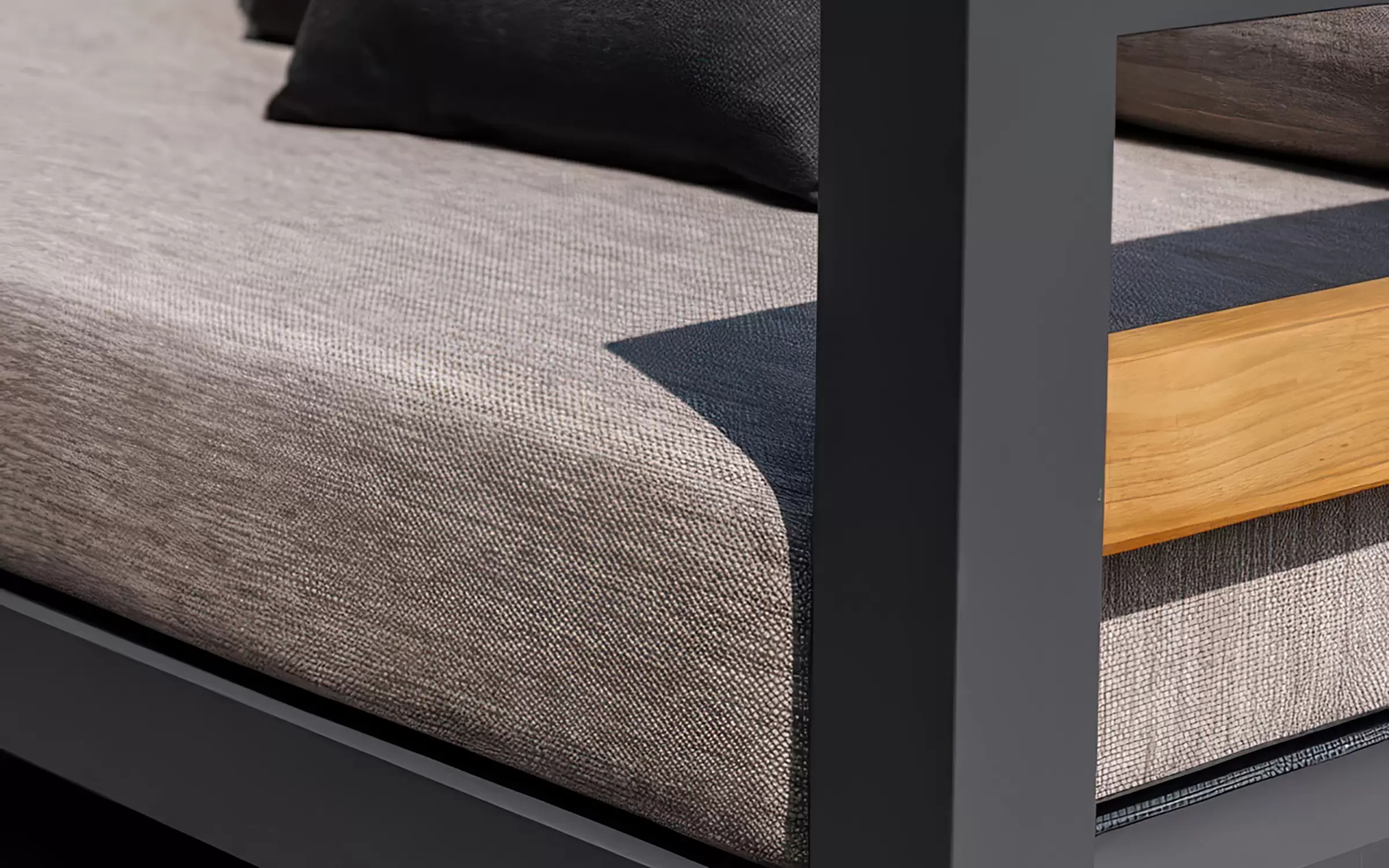 Wyjątkową innowacją są poduszki uszyte z zaawansowanej tkaniny, będącej połączeniem wytrzymałych włókien tekstylnych z przędzą olefinową. Taka struktura gwarantuje, że materiał nie chłonie wilgoci i pozostaje niewrażliwy na intensywne promieniowanie słoneczne. Wnętrze wypełnia specjalistyczna pianka o gęstości SG22, która nie tylko oferuje wyjątkową miękkość, ale też sprawnie odprowadza wodę, zapobiegając powstawaniu pleśni i drobnoustrojów.