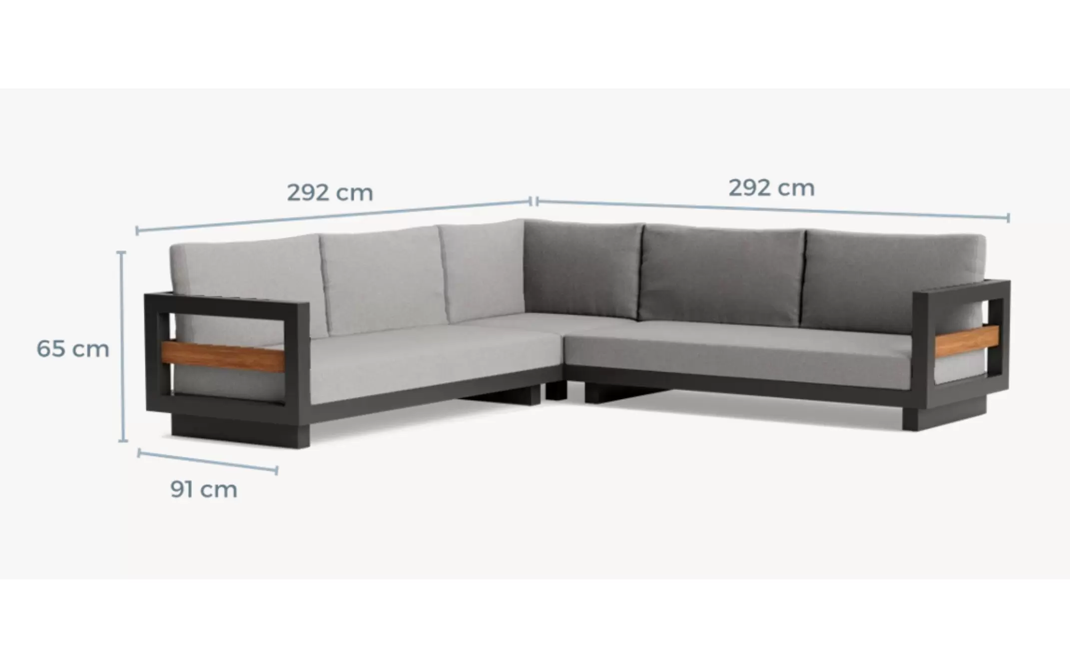 Długość 292 cm / Szerokość 292 cm / Głębokość 91 cm / Wysokość 65 cm