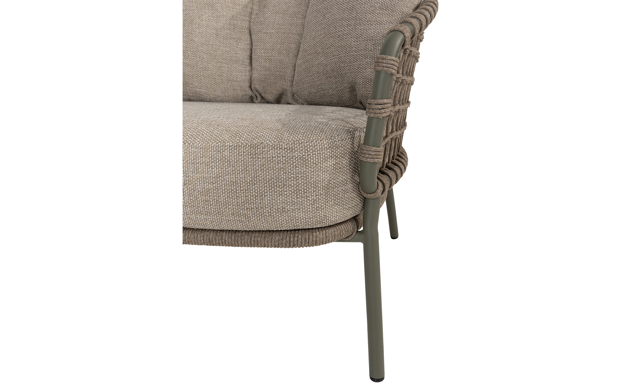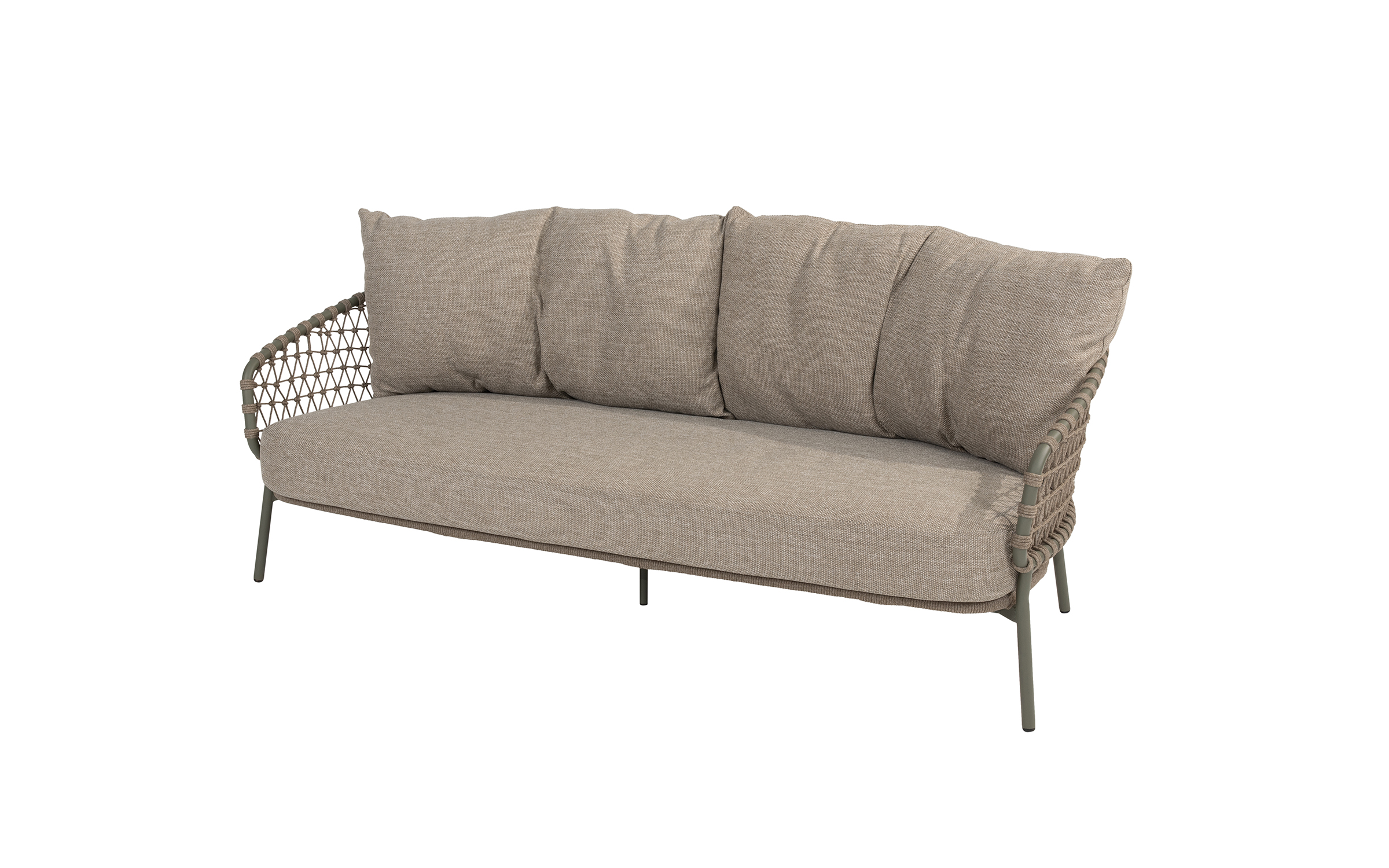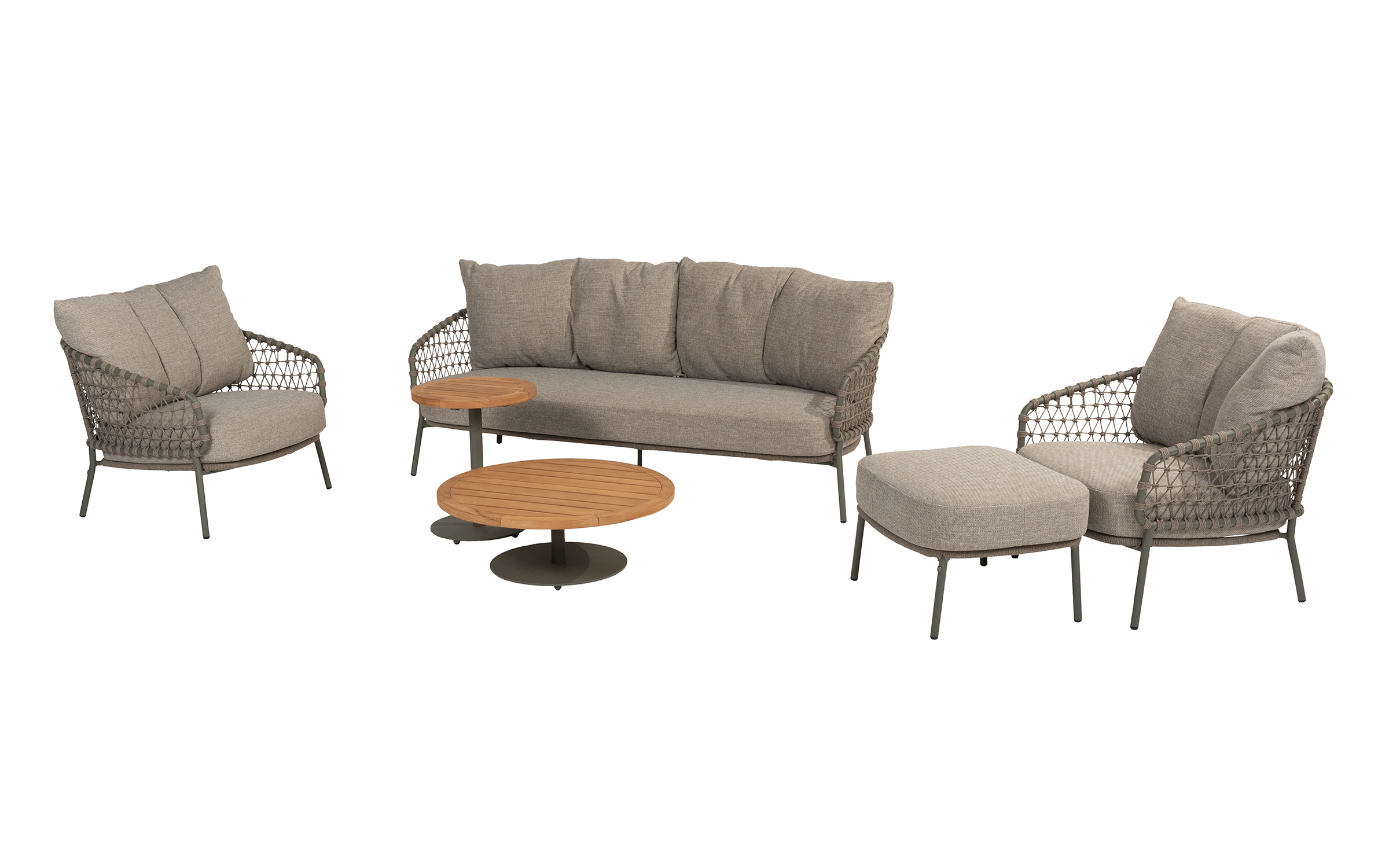 Meble ogrodowe Jura od 4 Seasons Outdoor w kolorze oliwkowym to jedna z najpopularniejszych opcji dla stylowych i trwałych mebli ogrodowych. Ekskluzywny zestaw składa się z 3-osobowej sofy, dwóch foteli i opcjonalnego podnóżka, wszystkie w eleganckim kolorze.