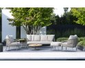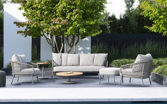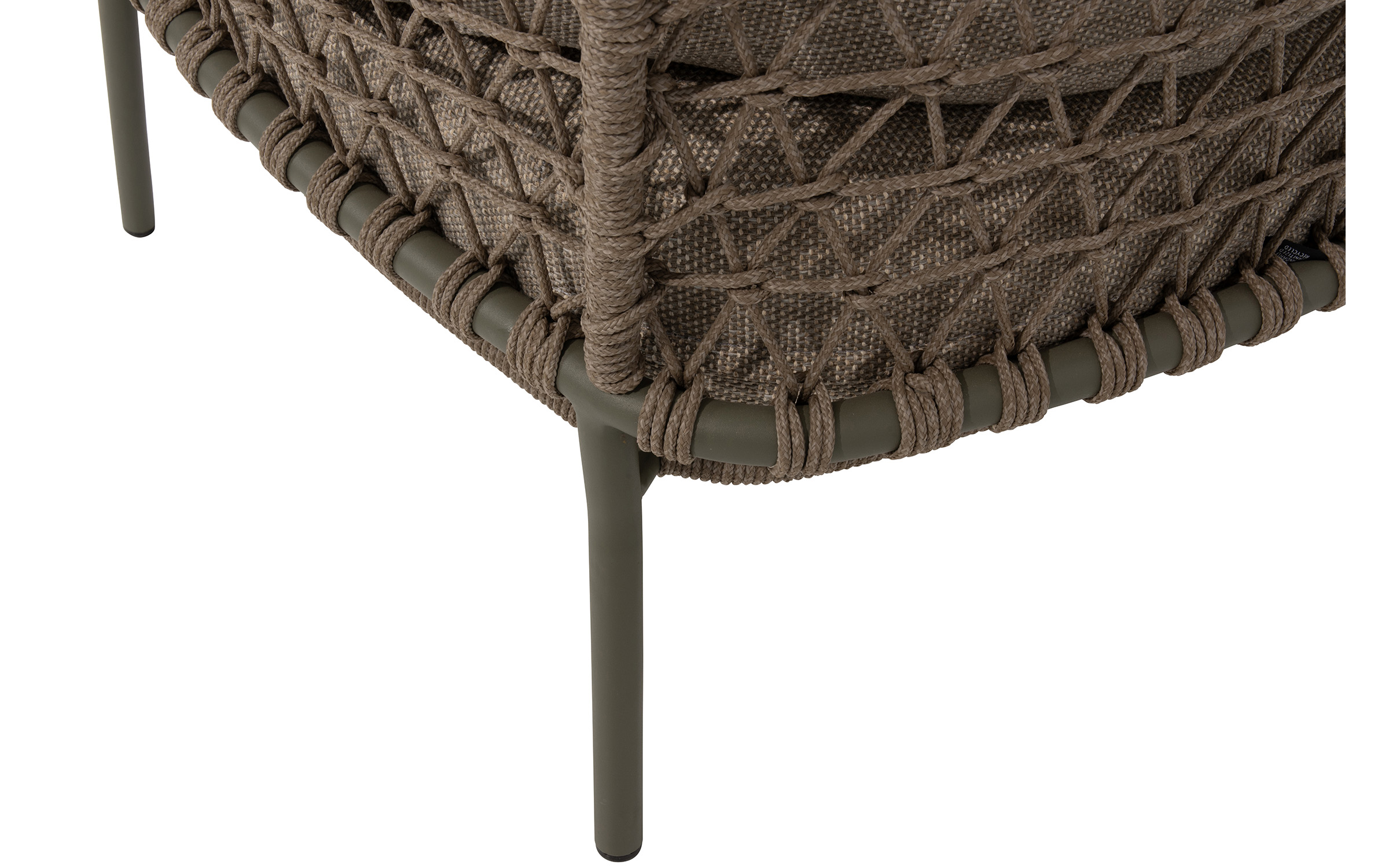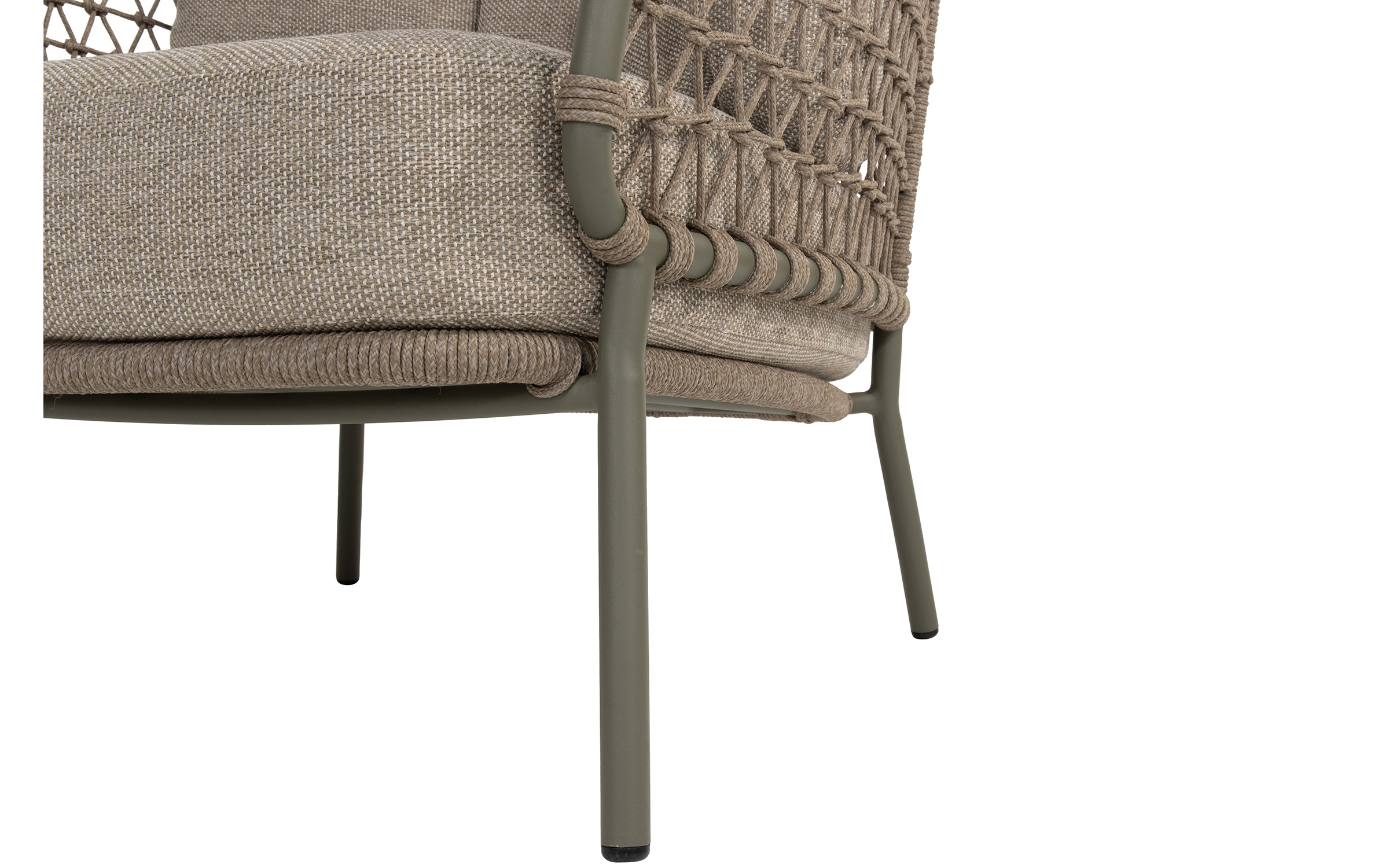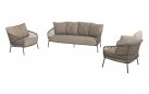 Meble ogrodowe Jura od 4 Seasons Outdoor w kolorze oliwkowym to jedna z najpopularniejszych opcji dla stylowych i trwałych mebli ogrodowych. Ekskluzywny zestaw składa się z 3-osobowej sofy, dwóch foteli i opcjonalnego podnóżka, wszystkie w eleganckim kolorze.