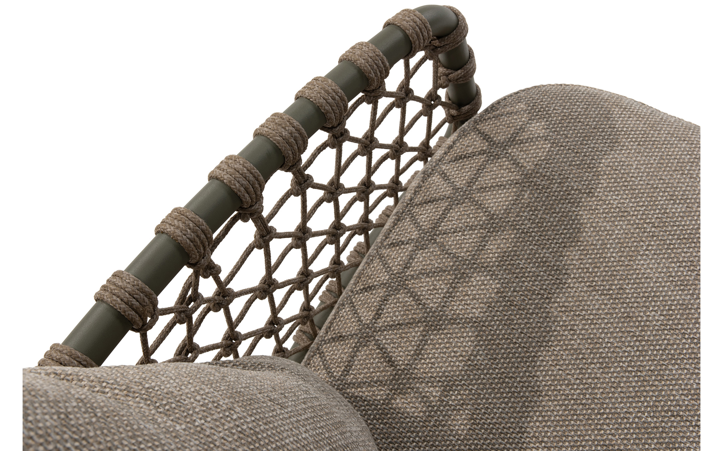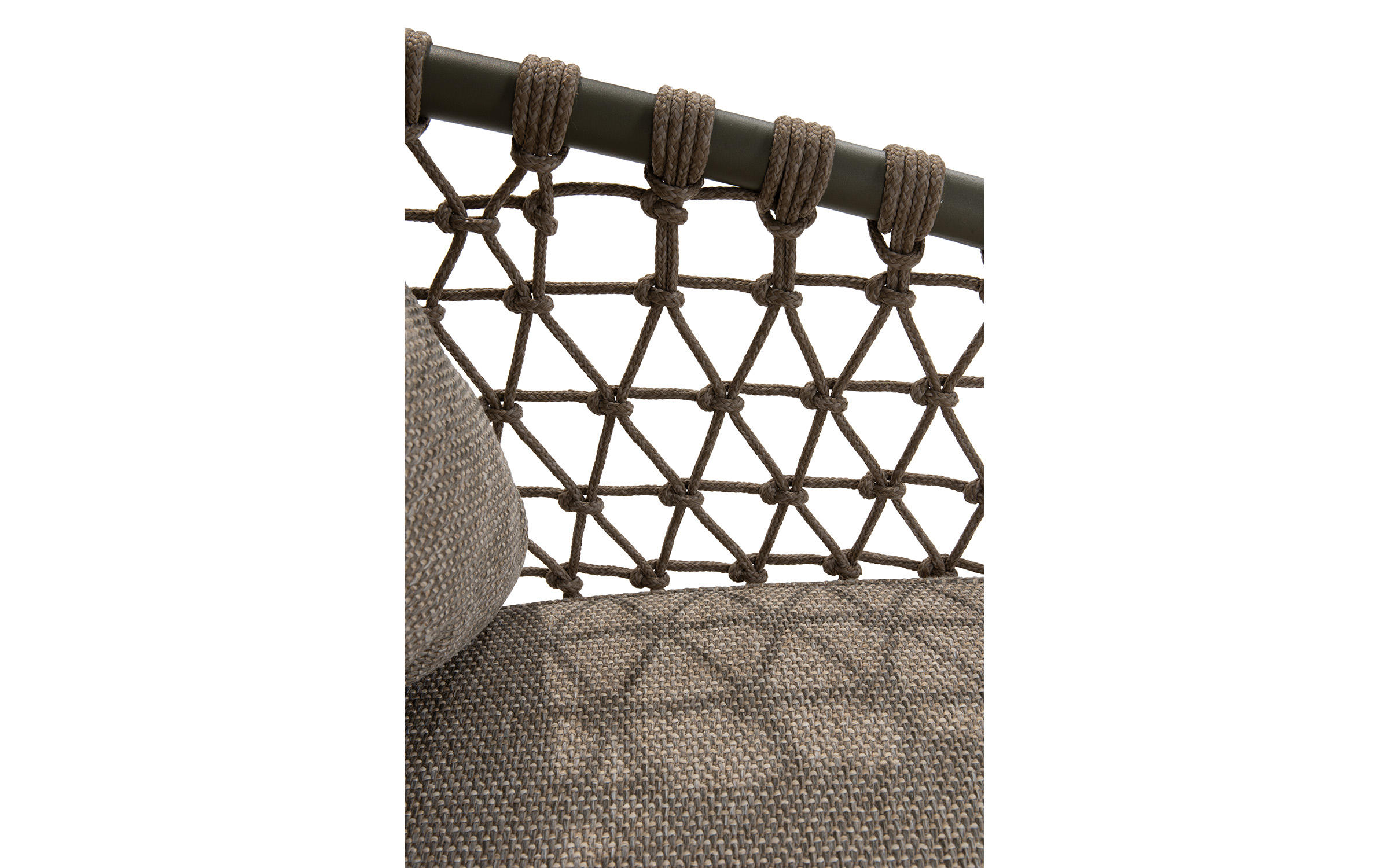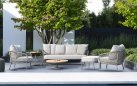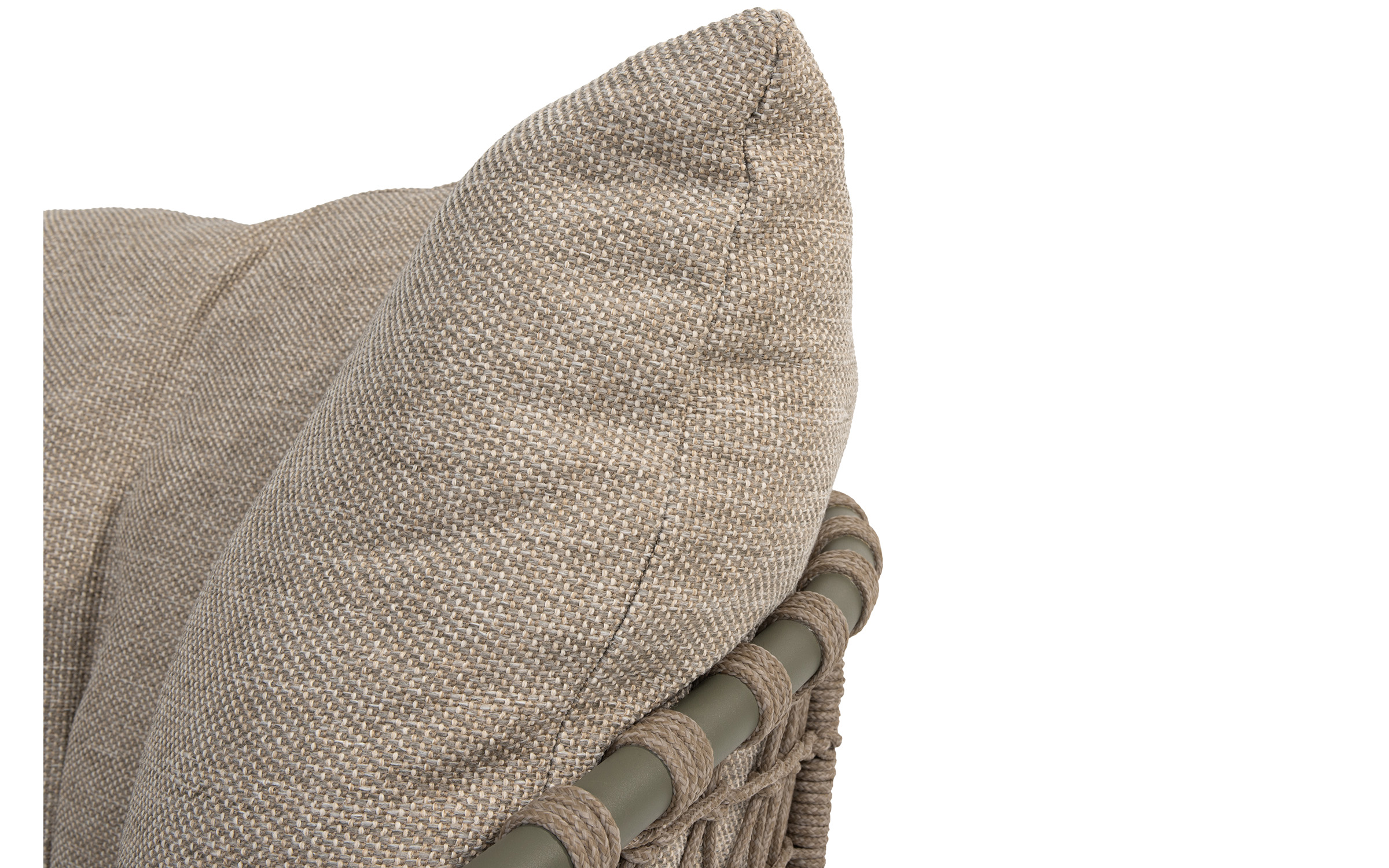 Zestaw wyposażony jest w obszerne, wygodne poduszki. Poduszki są nie tylko luksusowe, ale dzięki beżowej tapicerce Volta również odporne na warunki atmosferyczne, co pozwala cieszyć się komfortem przez cały rok, niezależnie od pogody.