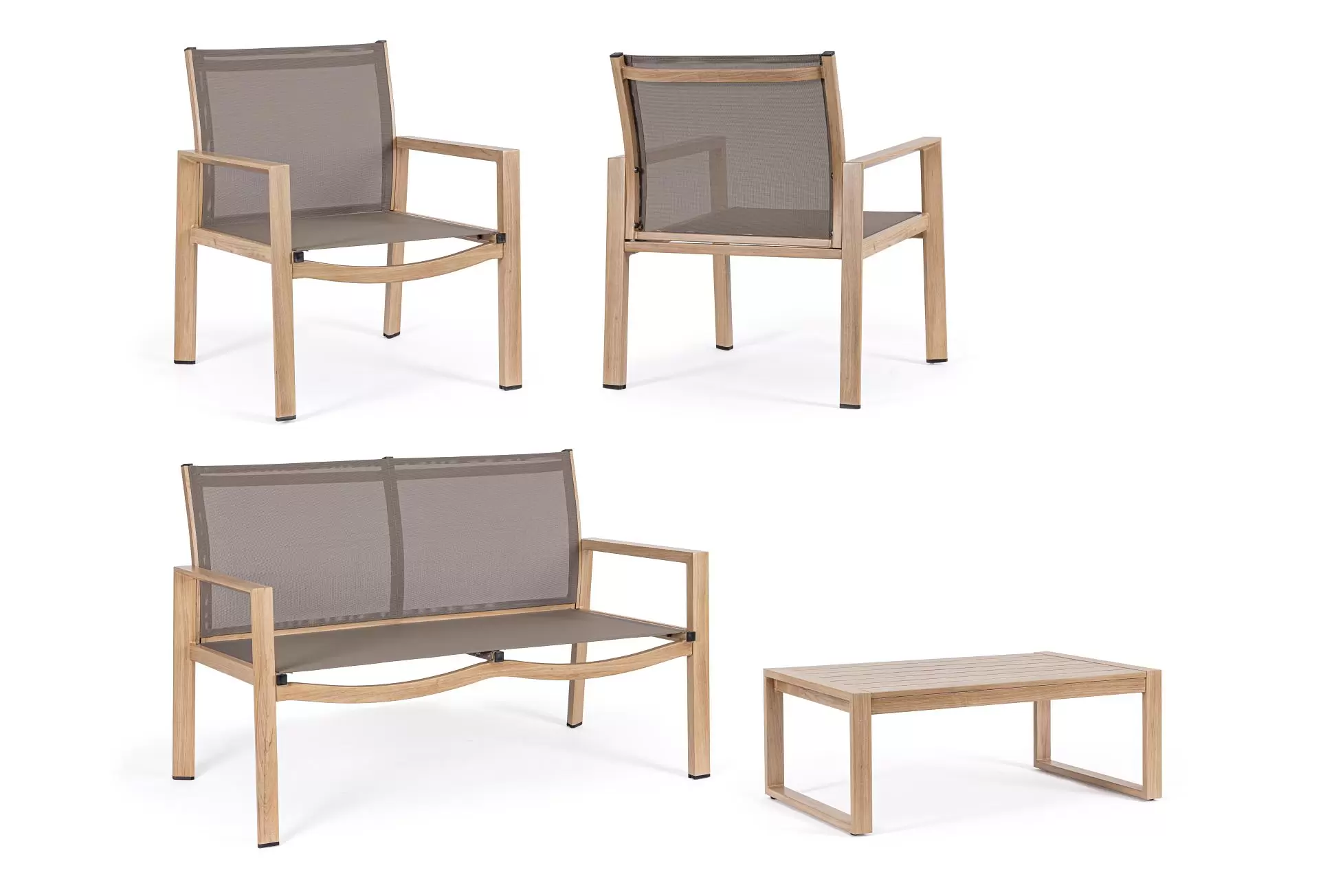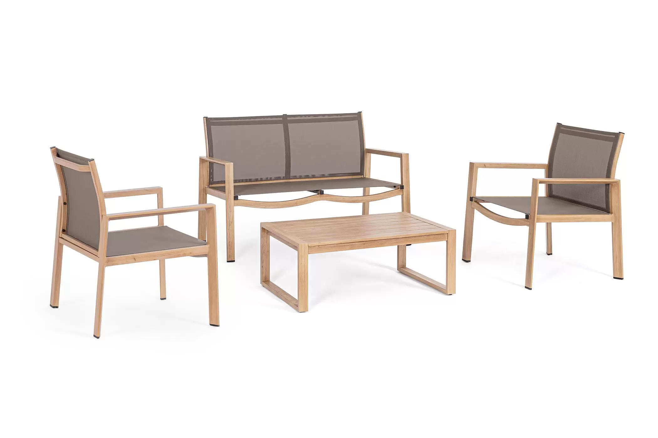 Aluminiowy komplet wypoczynkowy na taras lub balkon KALLEN Lounge / powłoka imitująca drewno