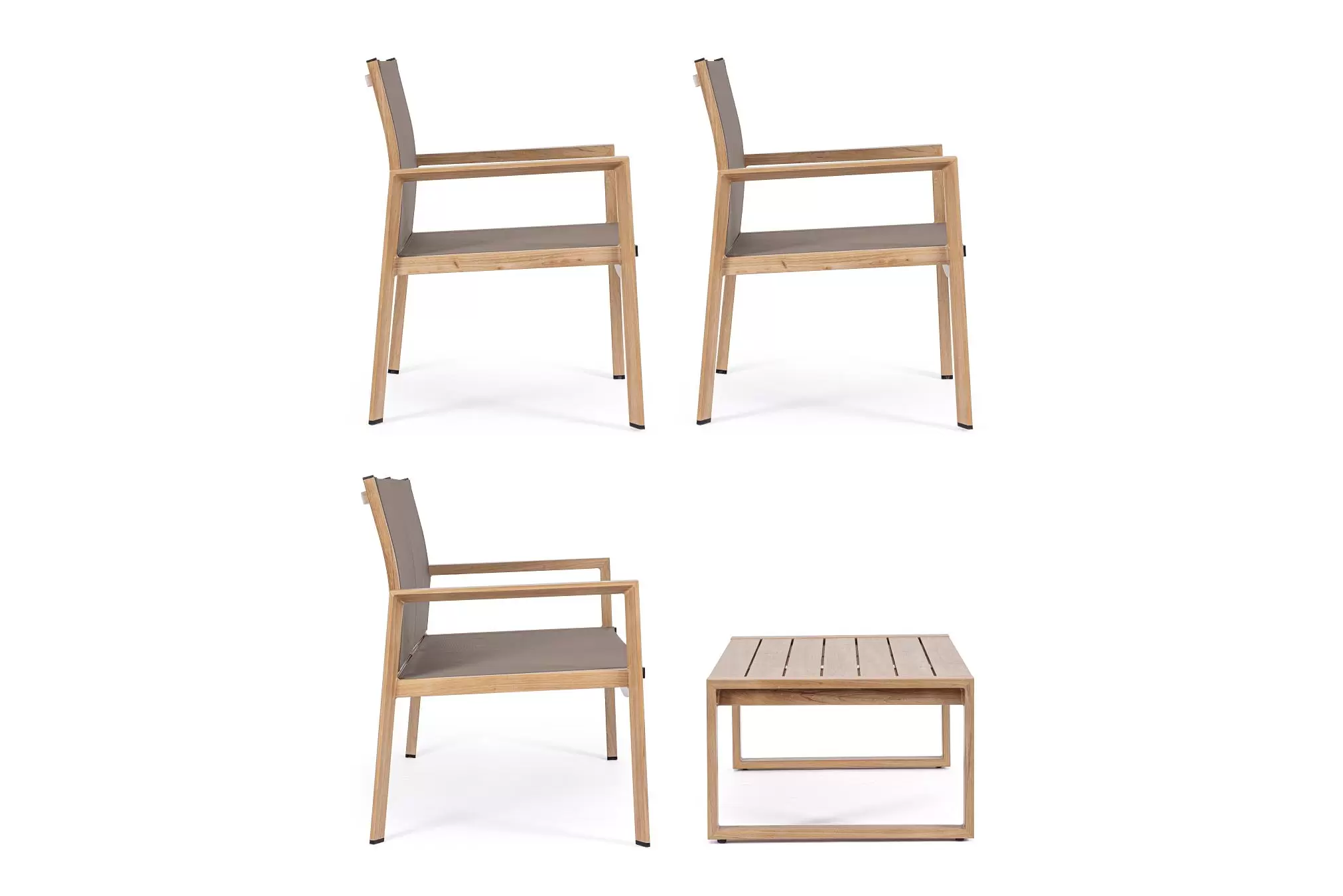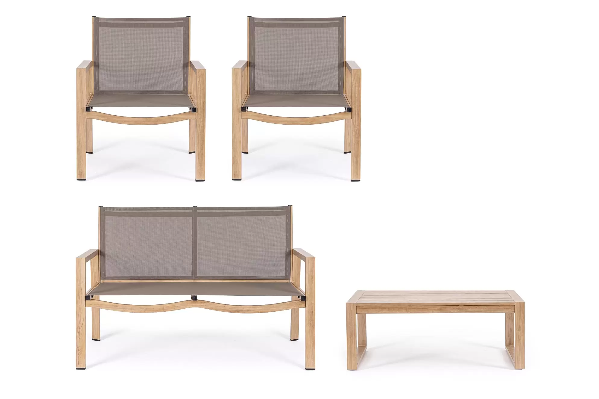 Aluminiowy lekki zestaw wypoczynkowy z siedziskami z tekstyliny. Idealny zestaw na nieduży taras.
