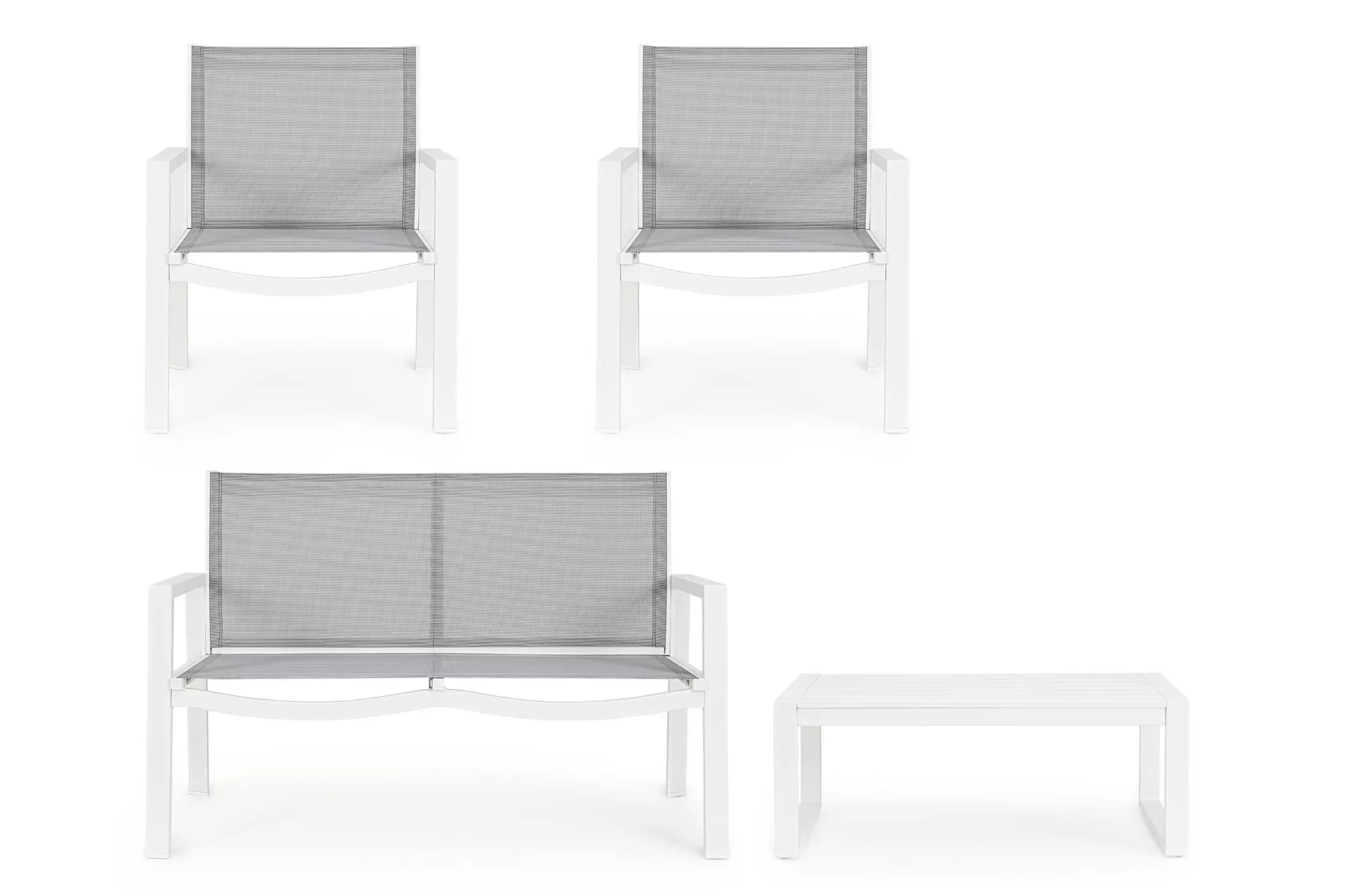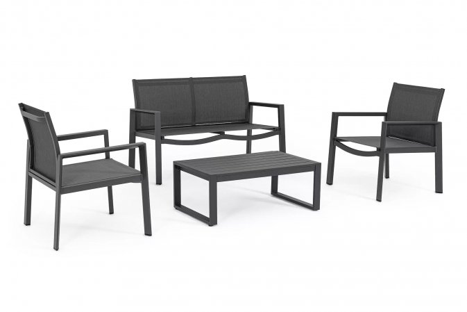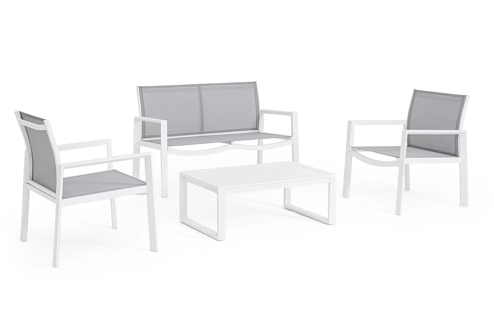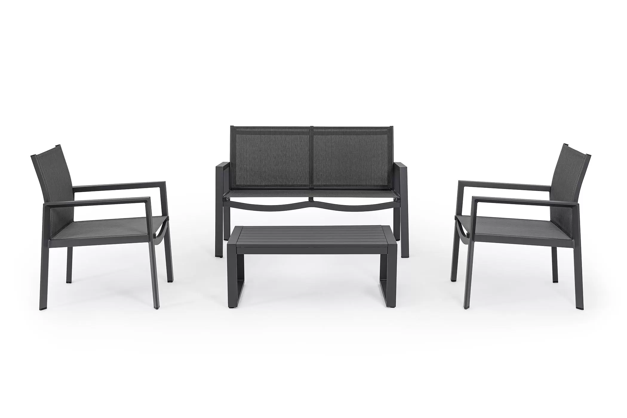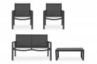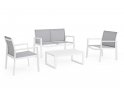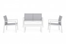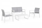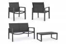 Aluminiowy lekki zestaw wypoczynkowy z siedziskami z tekstyliny. Idealny zestaw na nieduży taras.