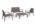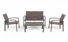 Aluminiowy zestaw wypoczynkowy z siedziskami z gęstej podwójnej tekstyliny z wszytą między warstwy gąbką.