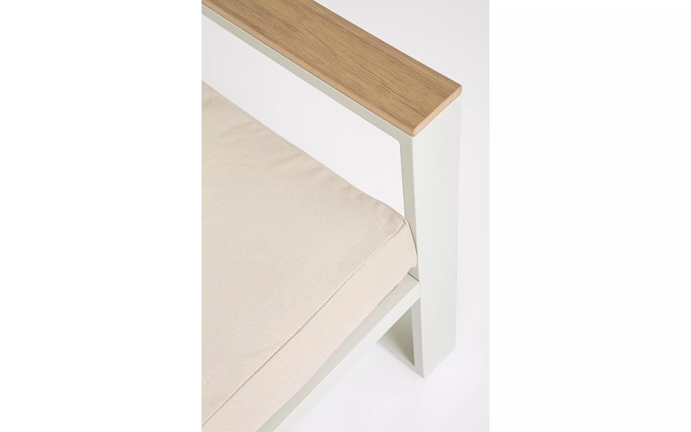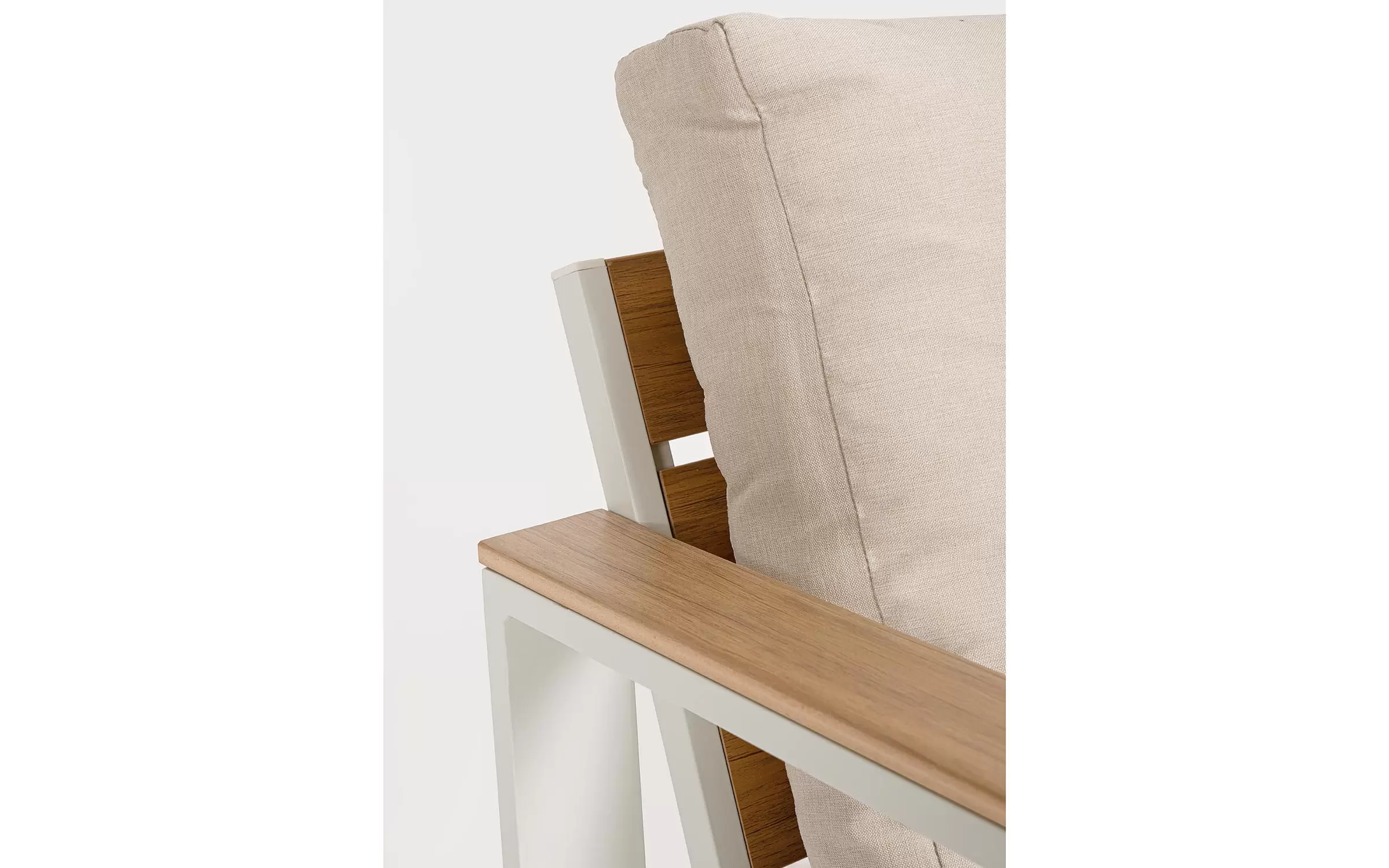Podłokietniki i blat stolika z kompozytu drewnianego.