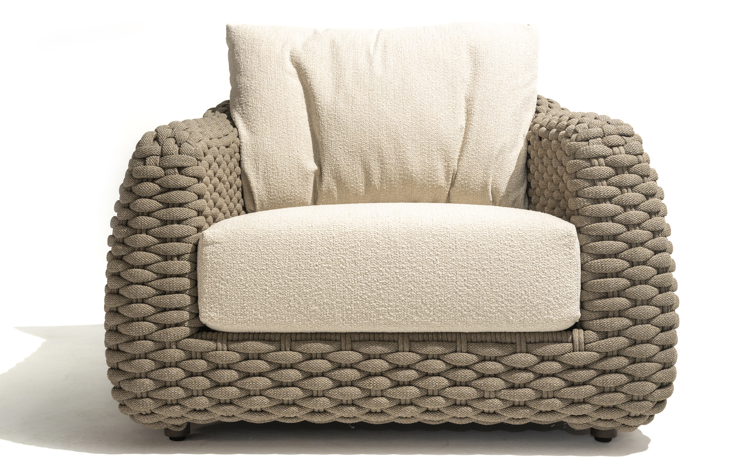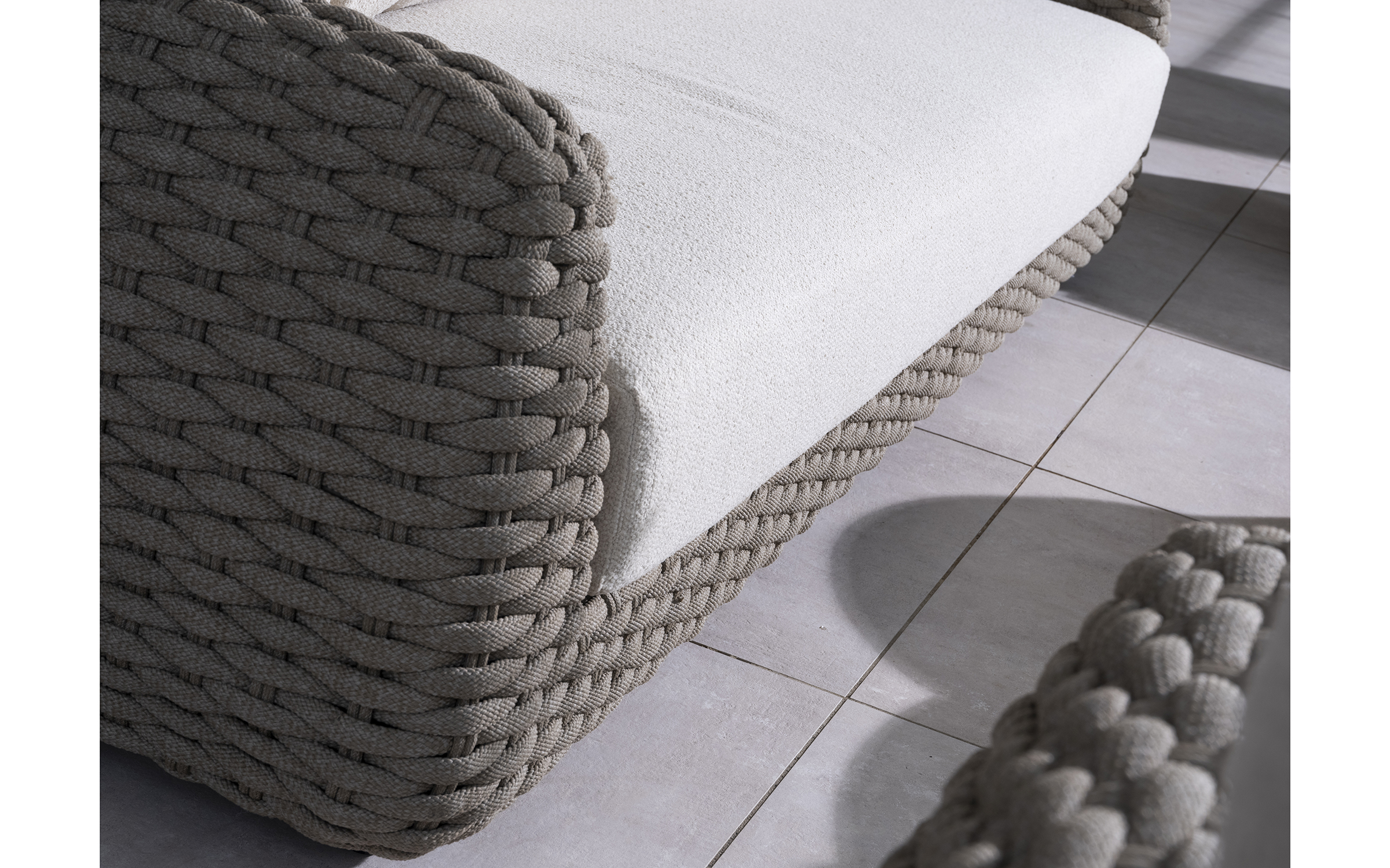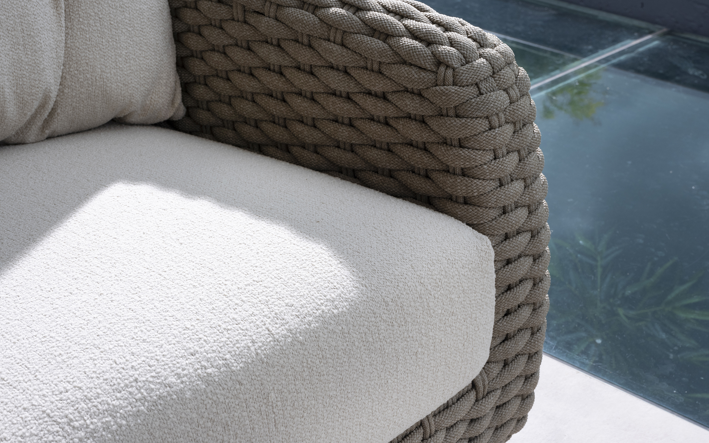 Zdejmowane poszewki obiciowe z materiału Boucle wyplecionego z odpornych na działanie UV i wody włókien polipropylenowych.