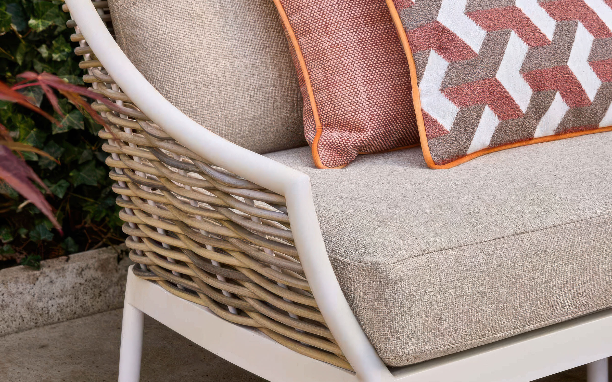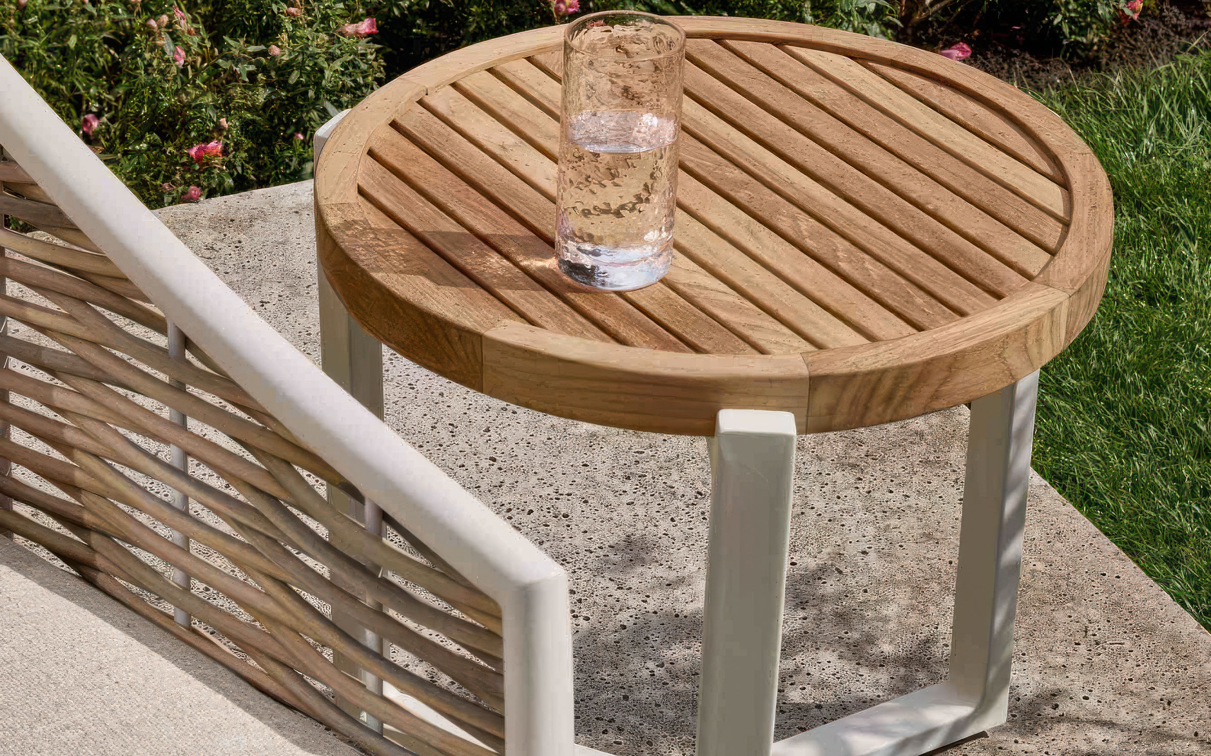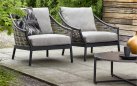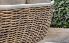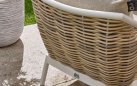 Konstrukcja z aluminium malowanego proszkowo – lekka, trwała i odporna na korozję. Oplot z technorattanu Willow Wave – syntetyczne włókno odporne na wilgoć, promieniowanie UV i zmienne warunki atmosferyczne. Dodatki z drewna teak – naturalne, odporne na warunki zewnętrzne, z czasem nabierają szlachetnej patyny.
