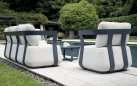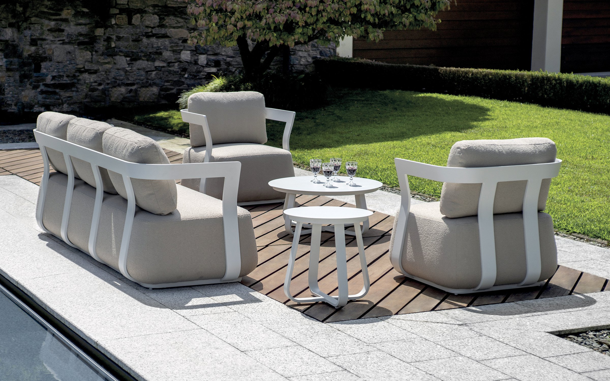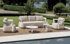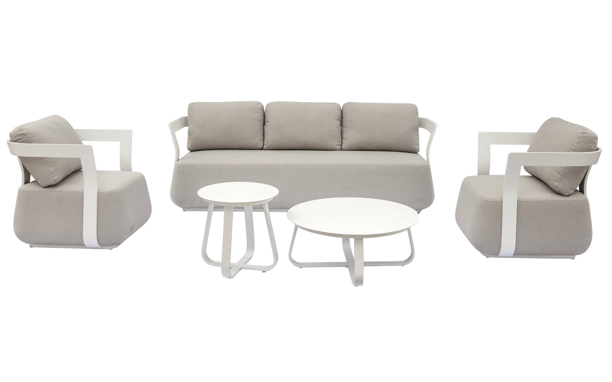 Zestaw wypoczynkowy MONACO to nowoczesna propozycja do aranżacji przestrzeni ogrodowej, tarasu lub balkonu. Wyróżnia się miękkimi, pełnymi poduchami i minimalistyczną linią aluminiowej konstrukcji. W zestawie znajdują się dwa stoliki kawowe o różnych średnicach z blatem aluminiowym.