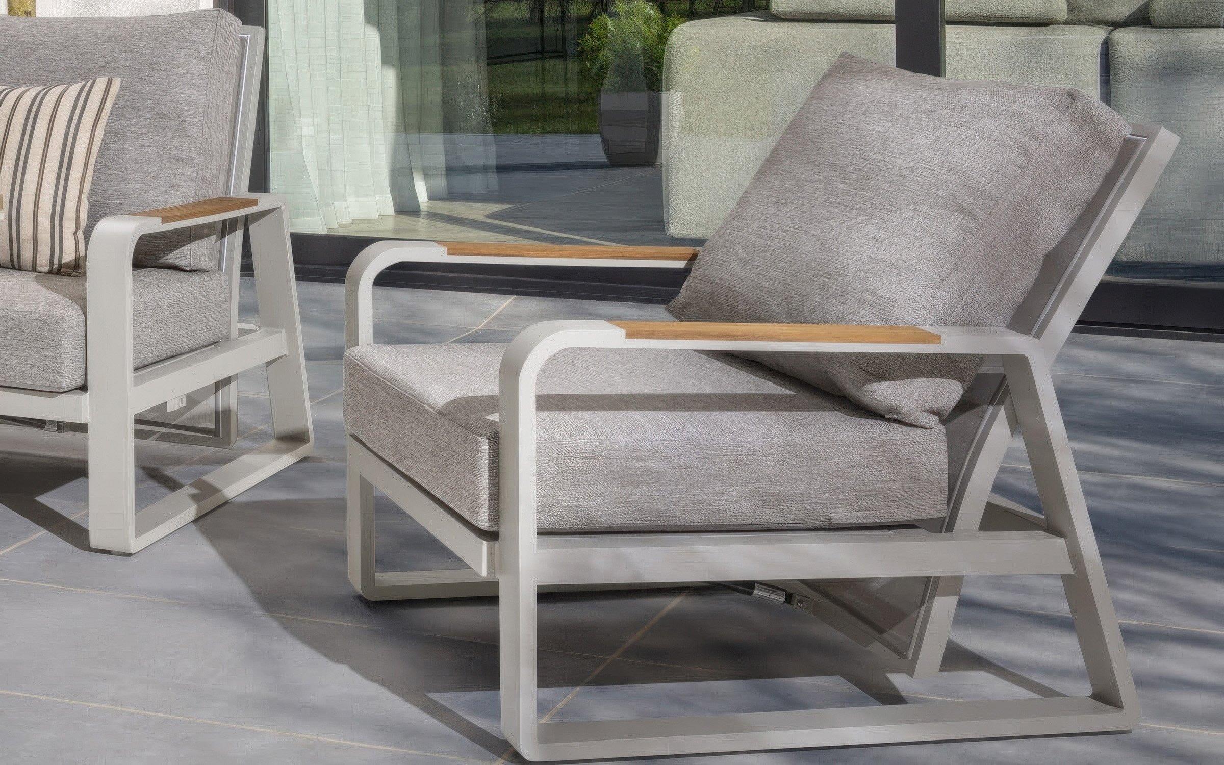 Komplet wypoczynkowy Montana zachwyca ponadczasowym wyglądem, który doskonale wpasuje się w każdy ogród, na taras lub balkon. Grafitowa lub beżowa kolorystyka aluminium malowanego proszkowo nadaje meblom lekkości i szyku, a starannie wykończone detale podkreślają ich wysoką jakość.