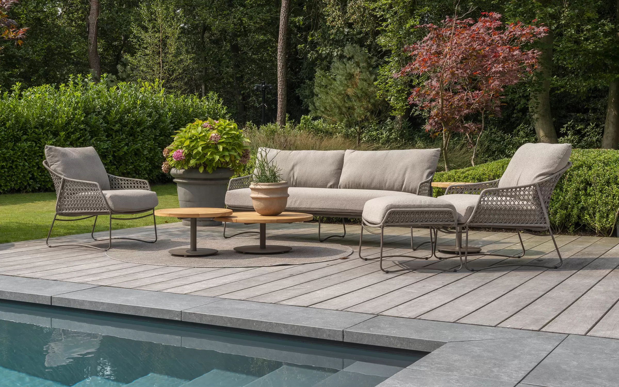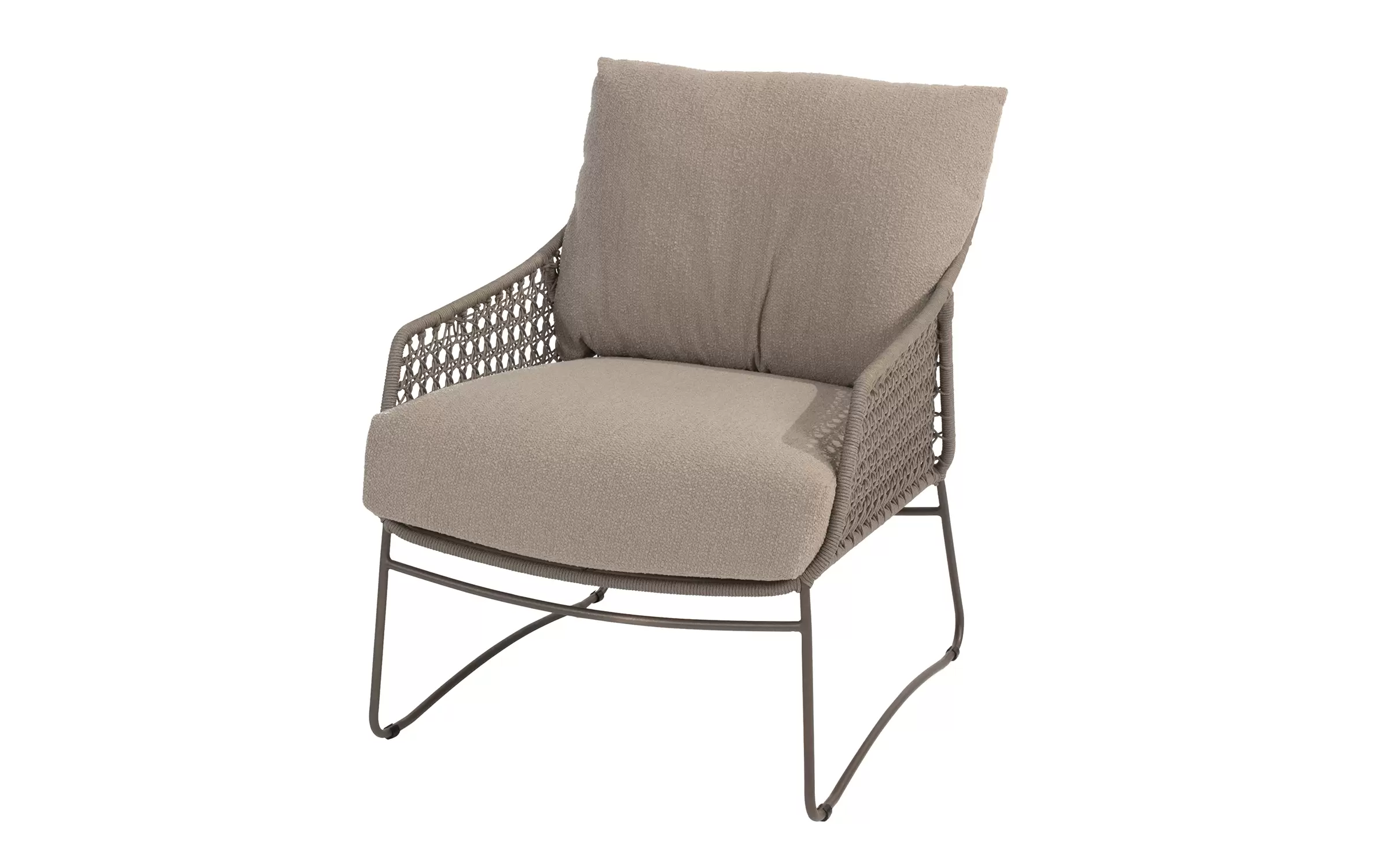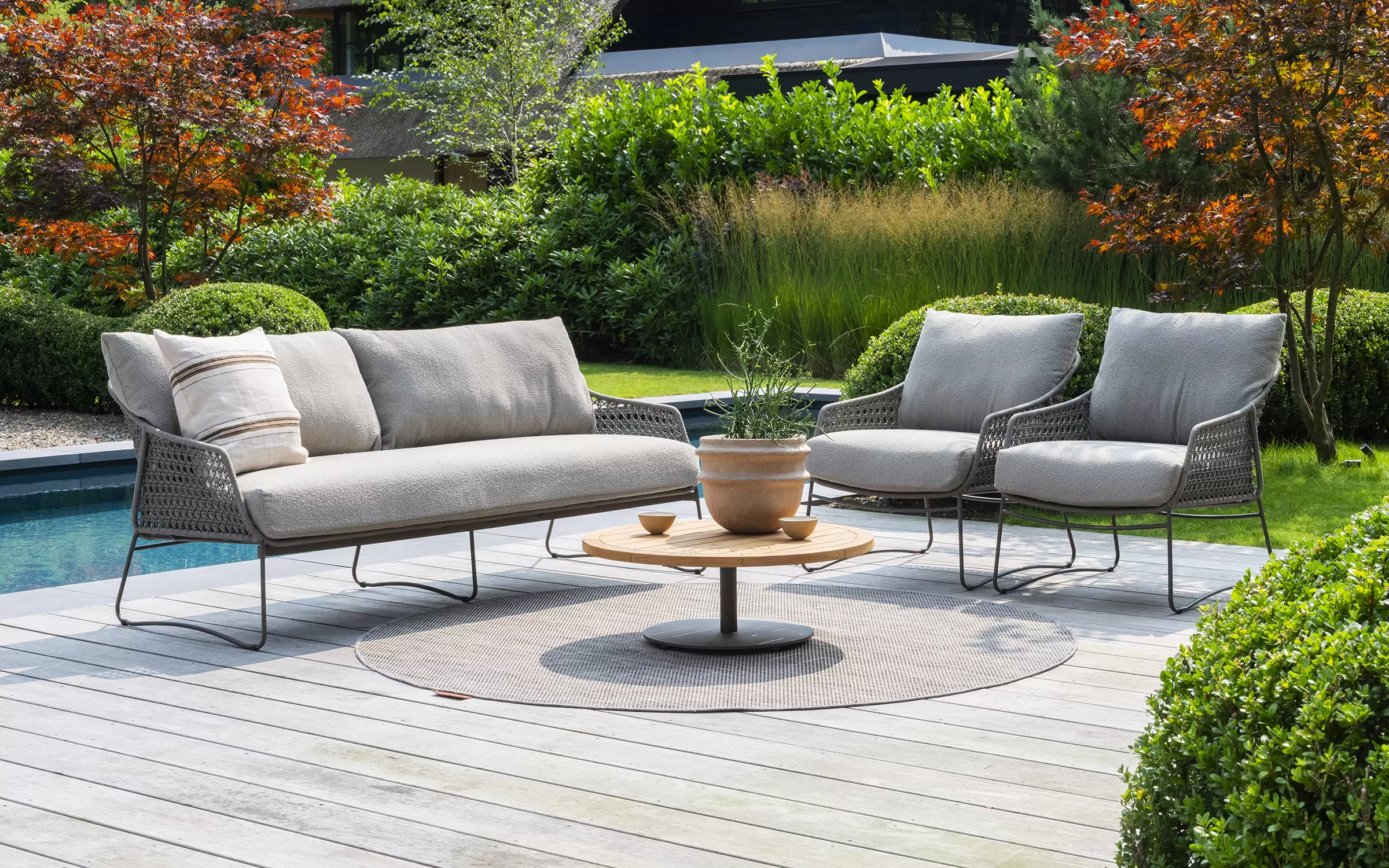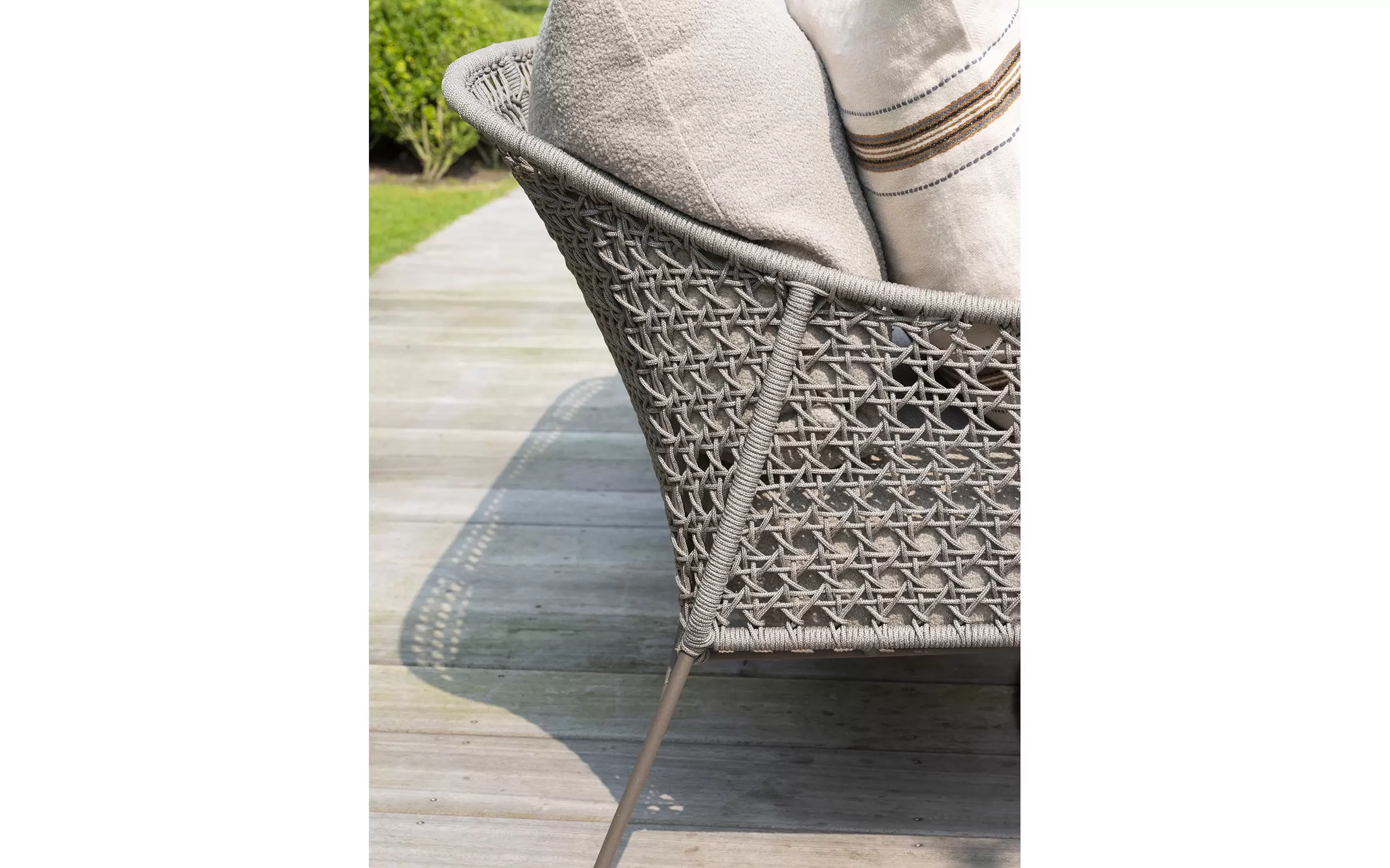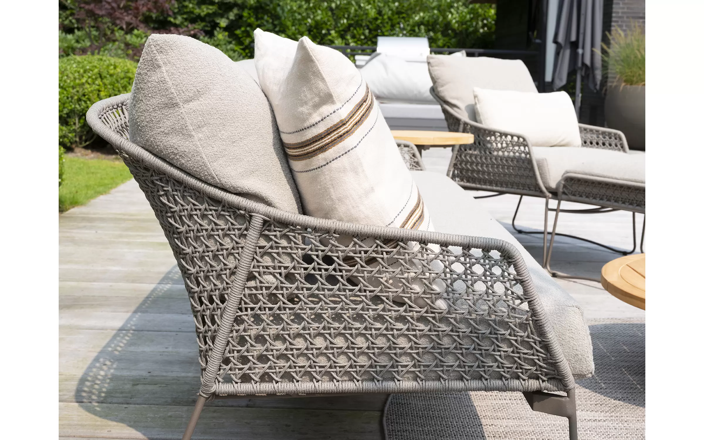 Zdejmowane poszewki obiciowe z materiału Boucle wyplecionego z odpornych na działanie UV i wody włókien polipropylenowych.