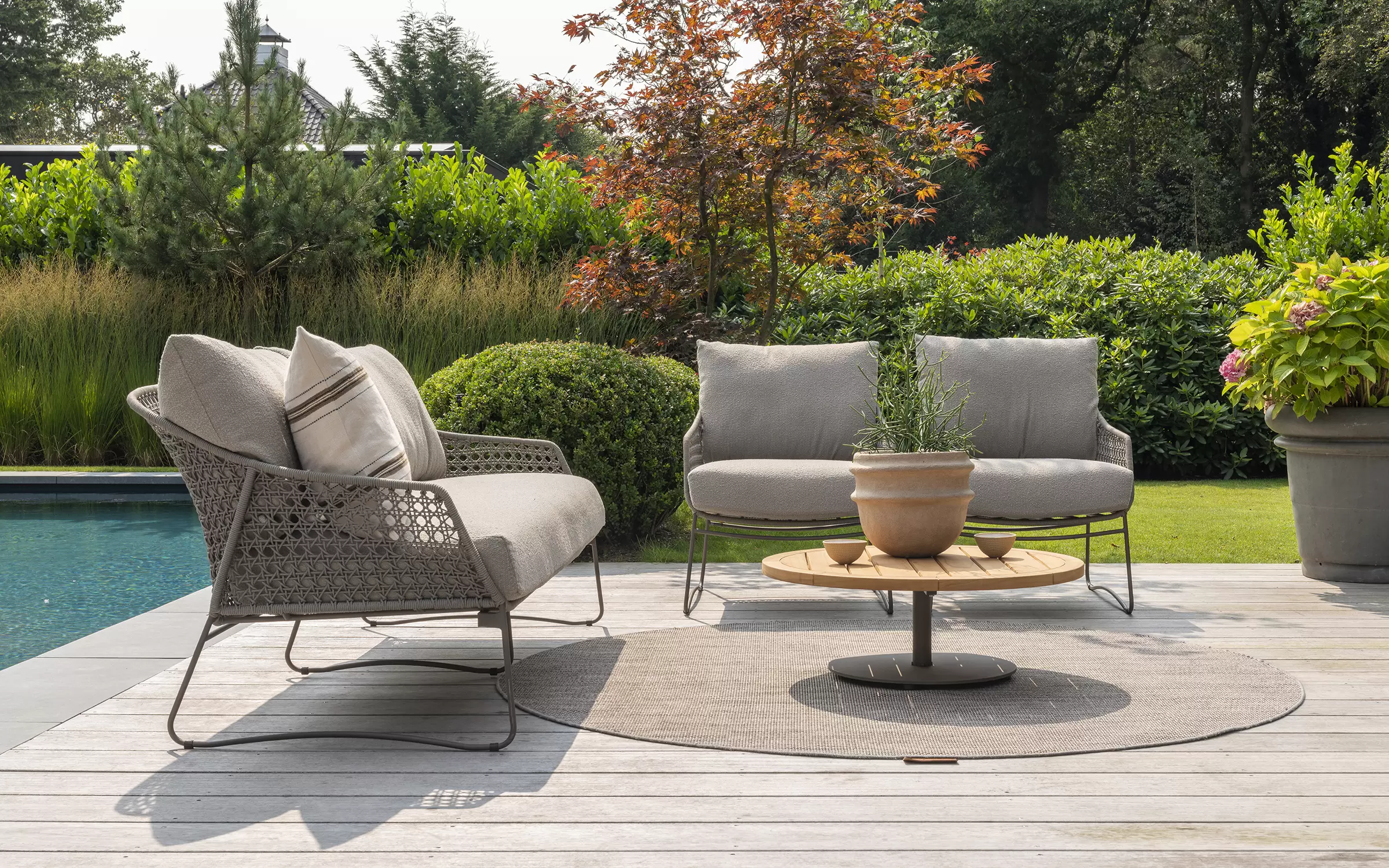 Meble ogrodowe Moretti to idealne połączenie stylu i komfortu, z organicznym designem, który podkreśla zaokrąglone kształty i wygodne podłokietniki.
