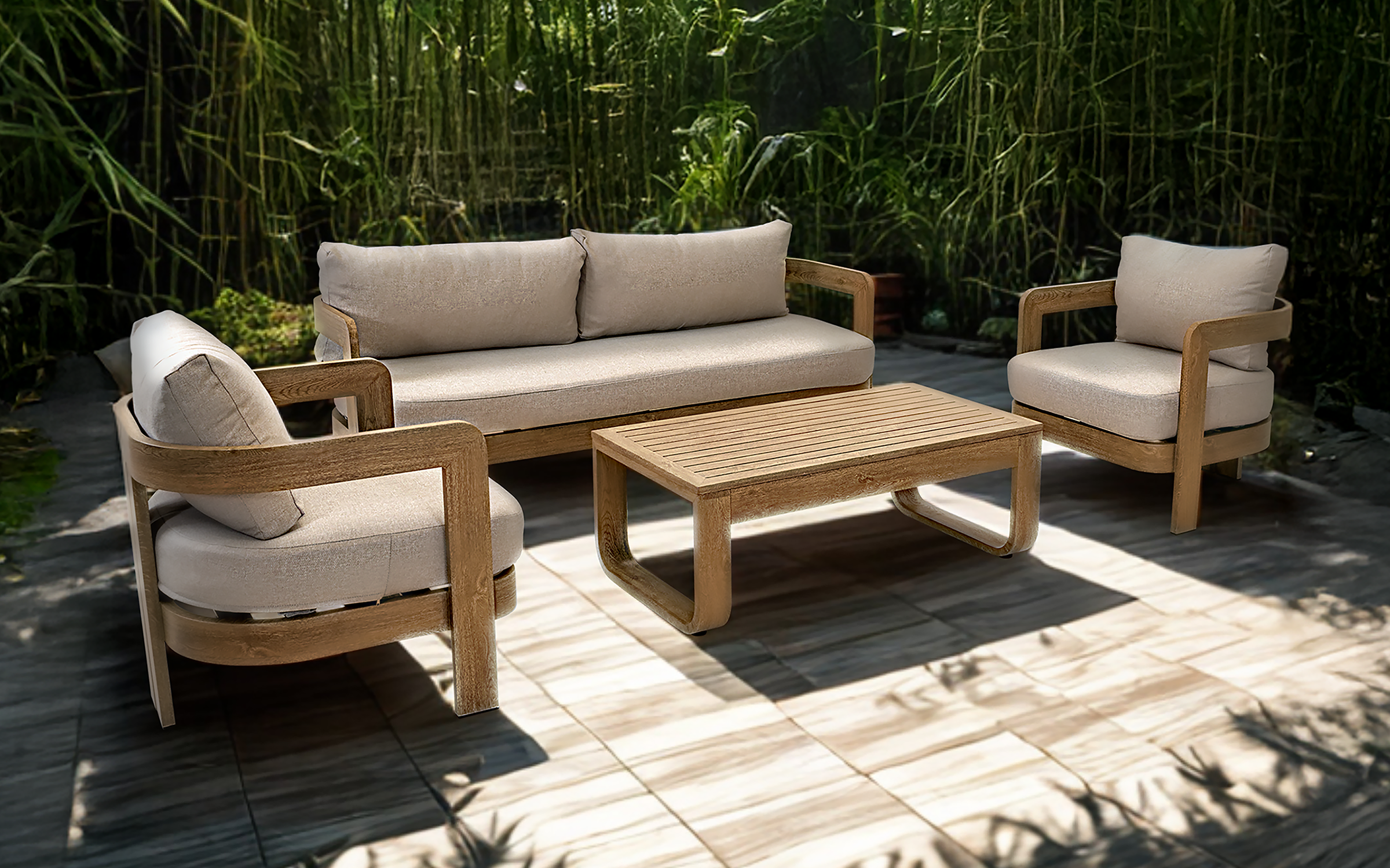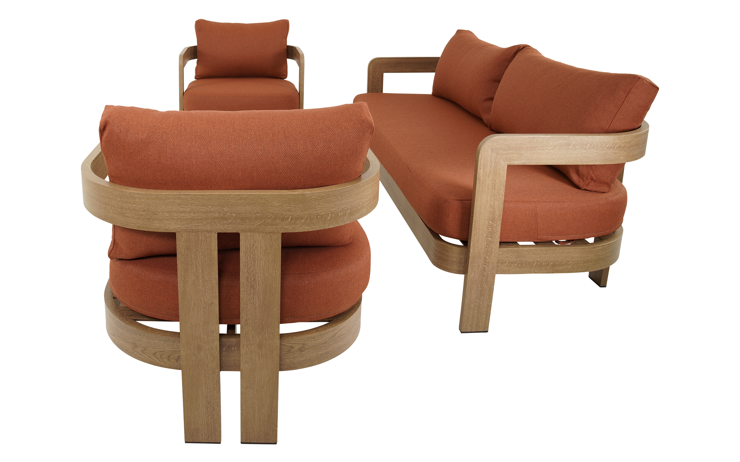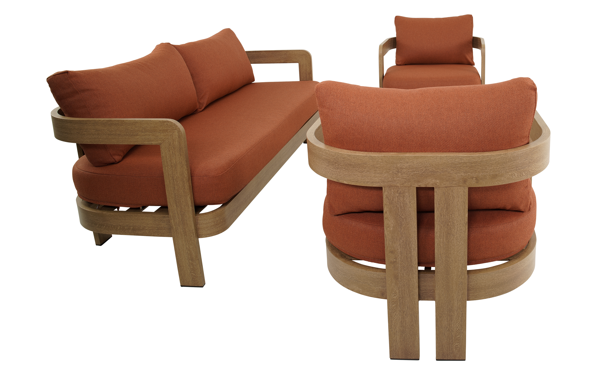 Zestaw wypoczynkowy MYLO marki LesliLiving to elegancka i funkcjonalna propozycja dla strefy relaksu na tarasie lub w ogrodzie. W skład zestawu wchodzi sofa 2‑osobowa, dwa fotele oraz stolik kawowy. Konstrukcja wykonana z aluminium w wykończeniu woodlook zapewnia trwałość i odporność na warunki atmosferyczne, a jednocześnie nadaje meblom naturalny charakter.