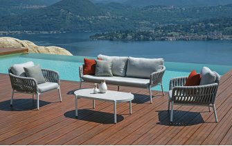 Zestaw wypoczynkowy NANTES to elegancka propozycja do aranżacji przestrzeni ogrodowej, tarasu lub balkonu. Wykonany z aluminiowej konstrukcji malowanej proszkowo w kolorze białym, z bokami z oplotem z liny polipropylenowej, łączy nowoczesny design z naturalnym akcentem. Stolik kawowy posiada blat aluminiowy o wymiarach 86×86 cm – trwały i odporny na warunki atmosferyczne.