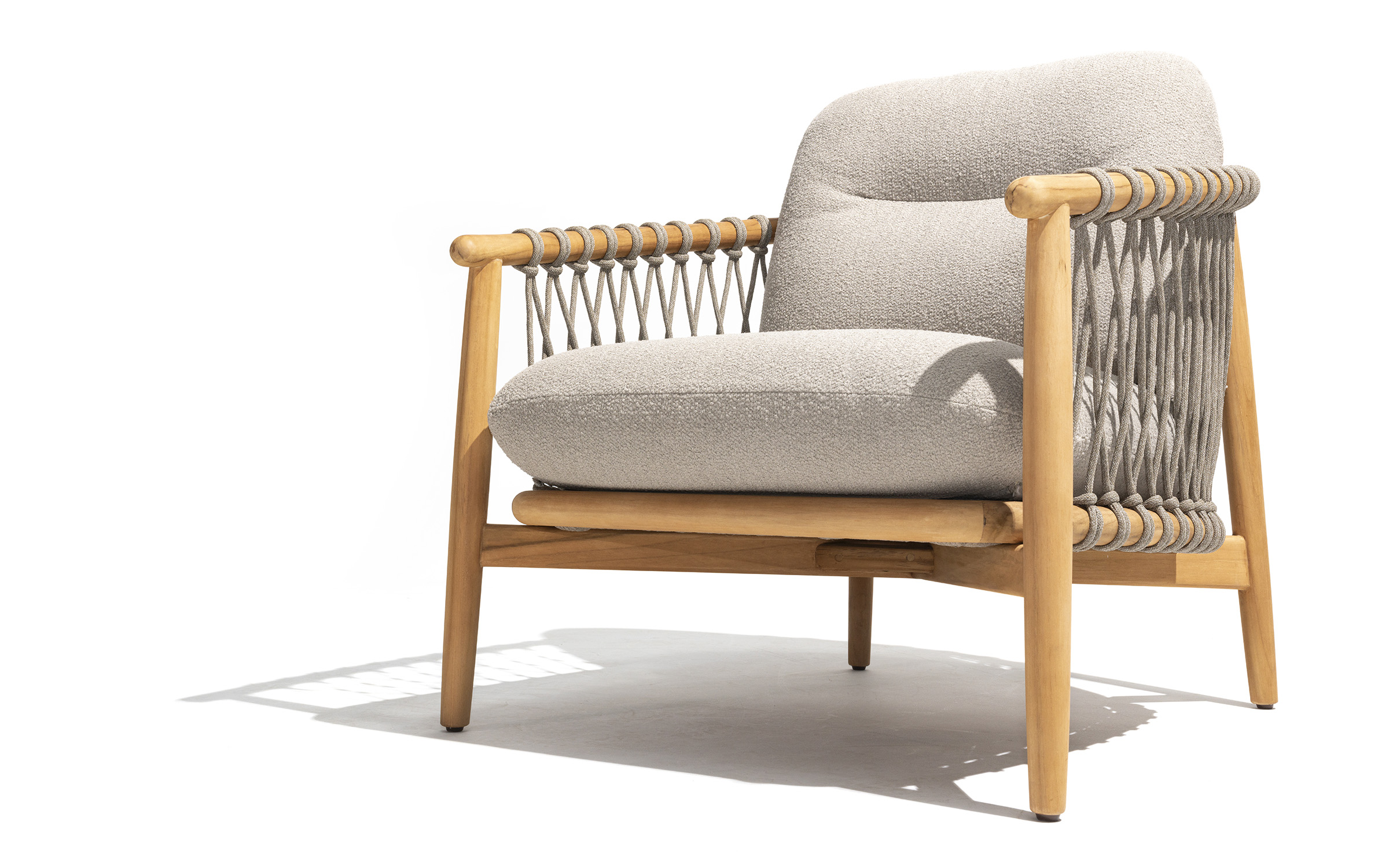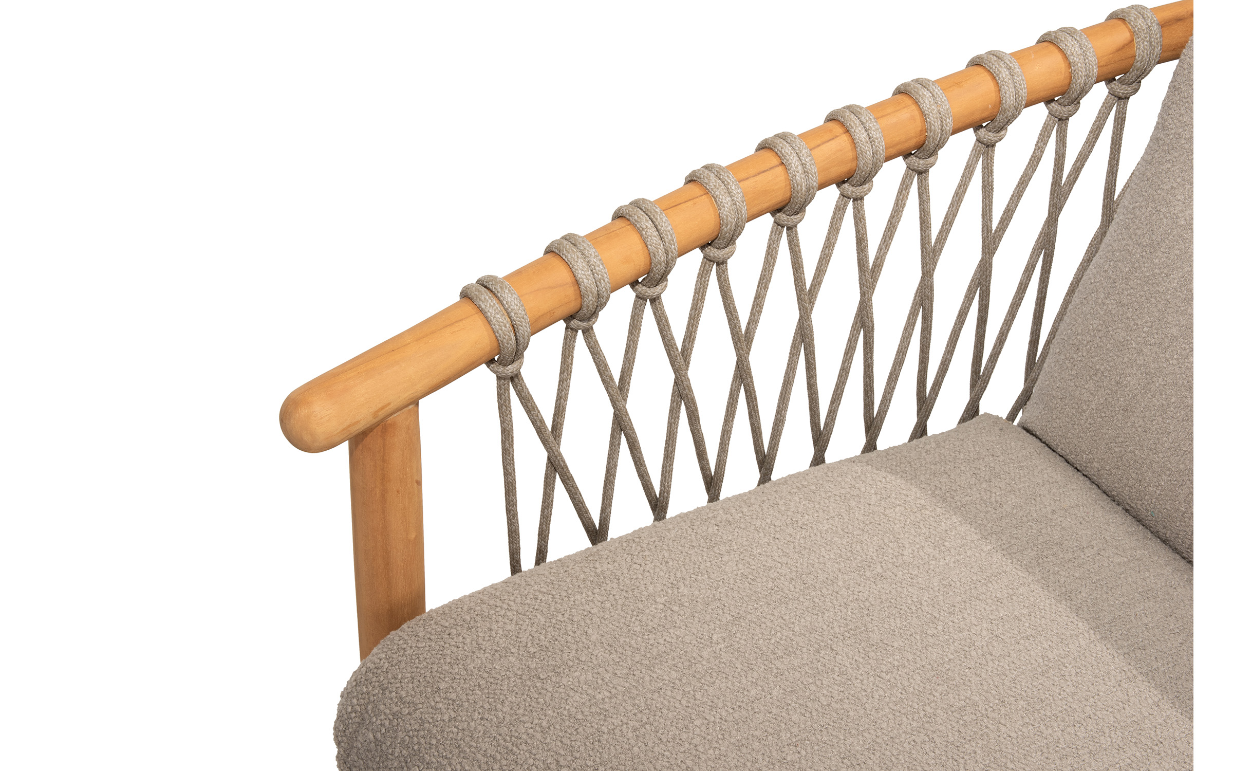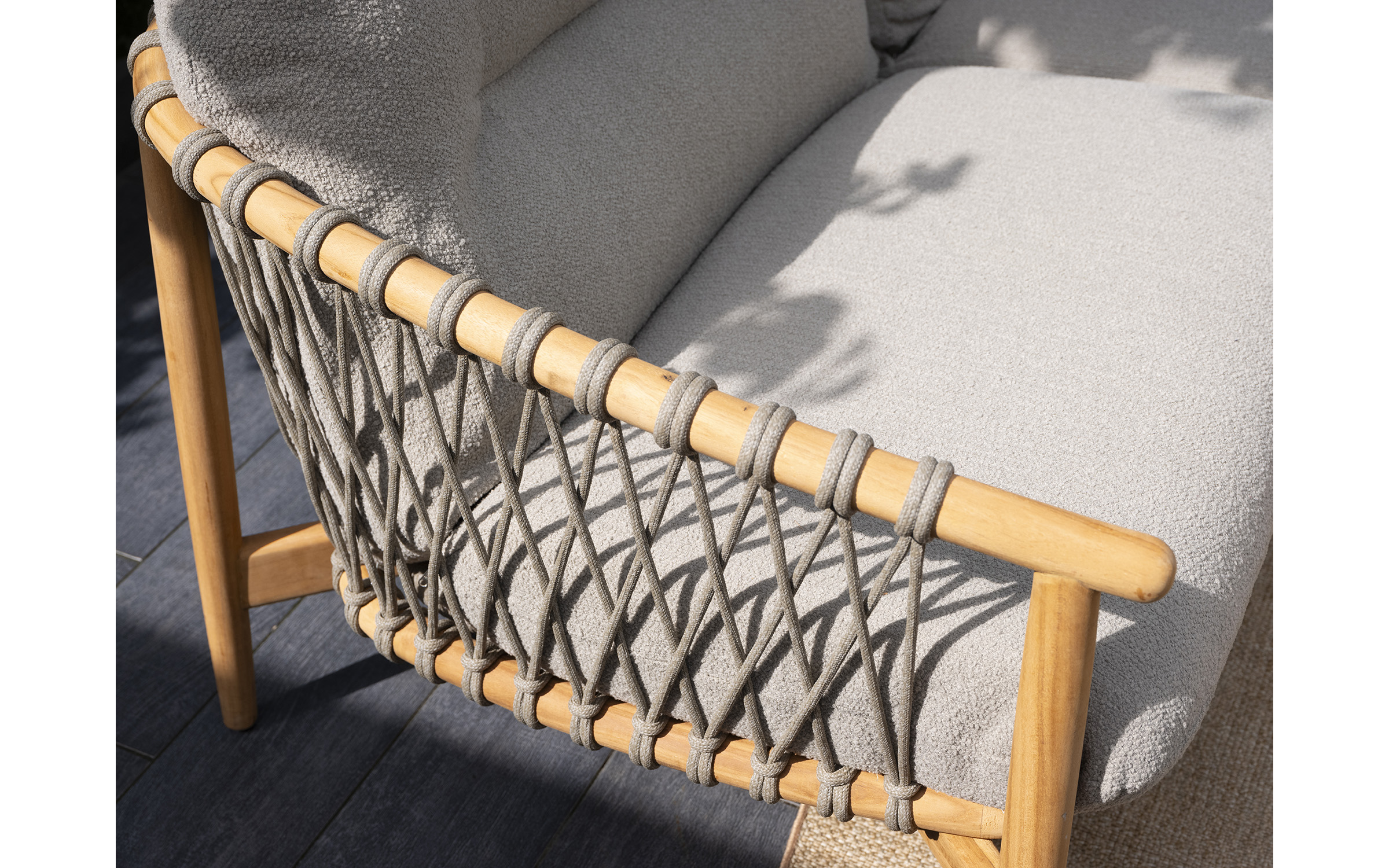 Zdejmowane poszewki obiciowe z materiału Boucle wyplecionego z odpornych na działanie UV i wody włókien polipropylenowych.