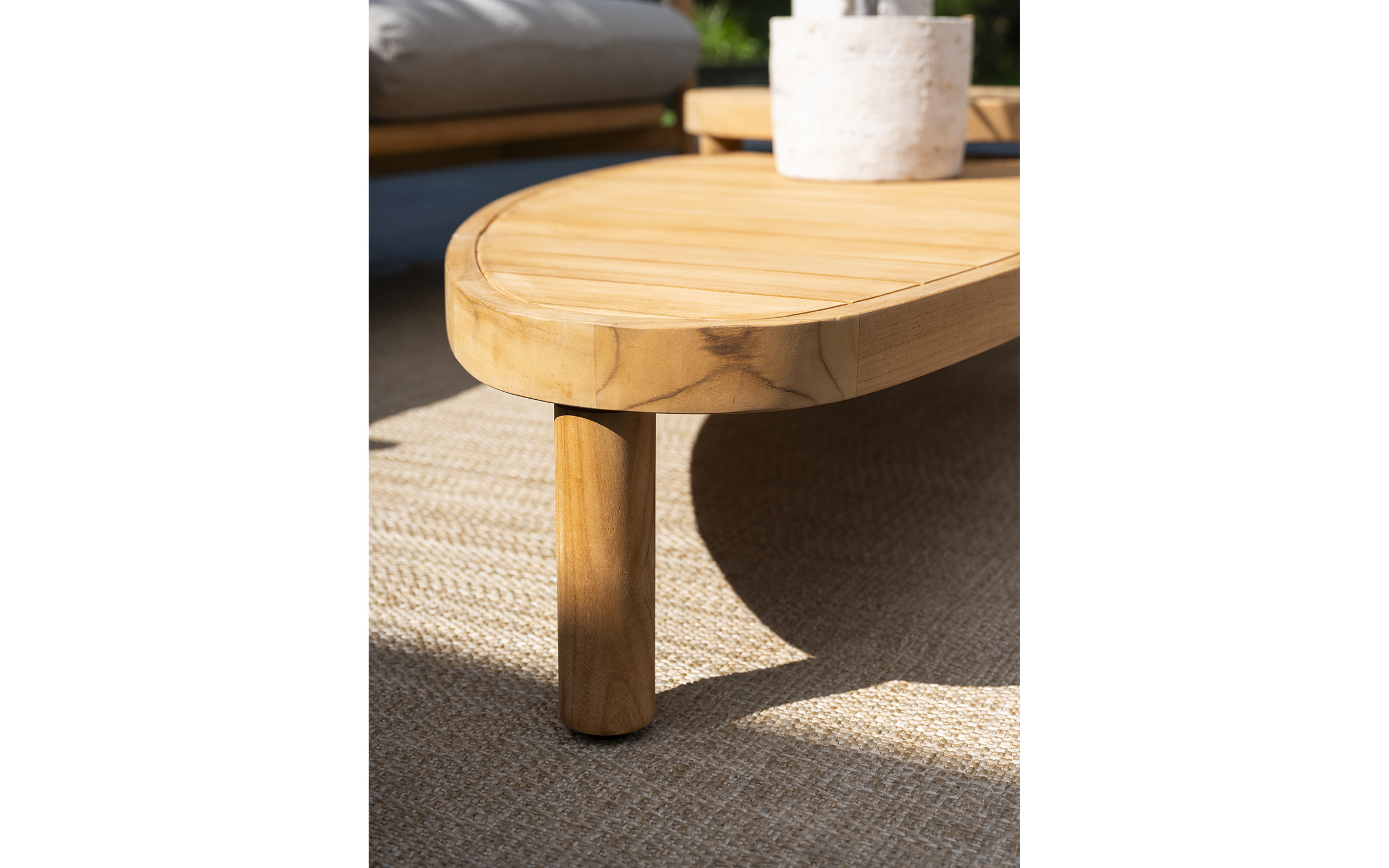 Ekskluzywna opływowa konstrukcja z drewna tekowego o eleganckich krzywiznach to nie tylko uczta dla oczu, ale także solidna podstawa.