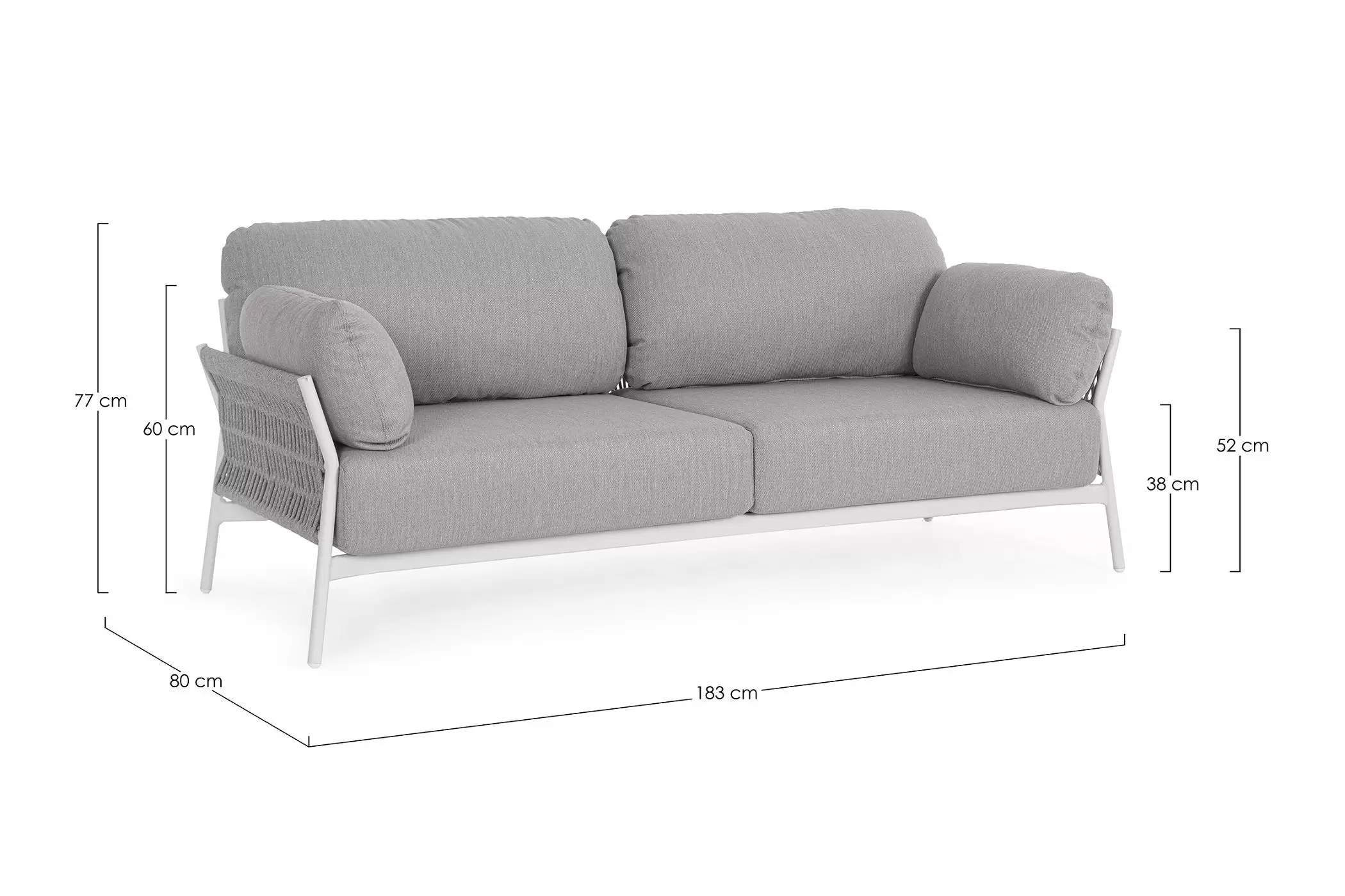 Szerokość 183 cm / Głębokość 80 cm / Wysokość 77 cm