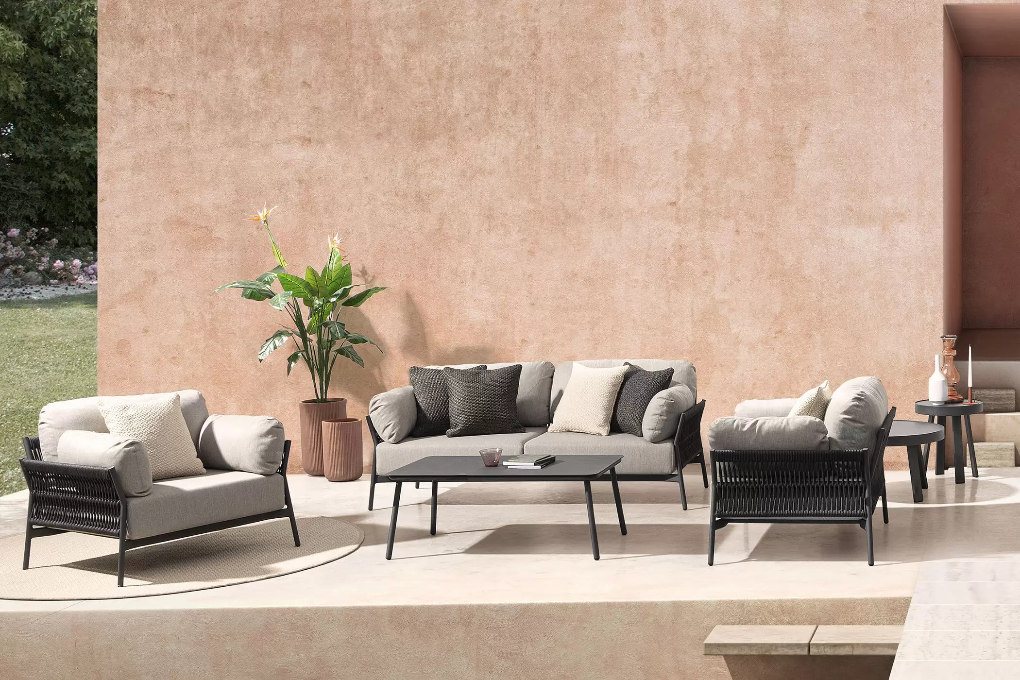Nowoczesne w formie, klasycznie wygodne - aluminiowy komplet wypoczynkowy na taras z kolekcji PARDIS. Niebanalny styl i kolorystyka oraz bardzo wygodne poduszki.