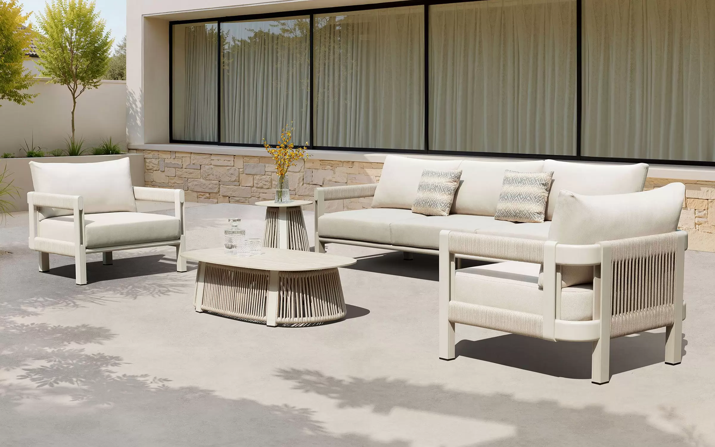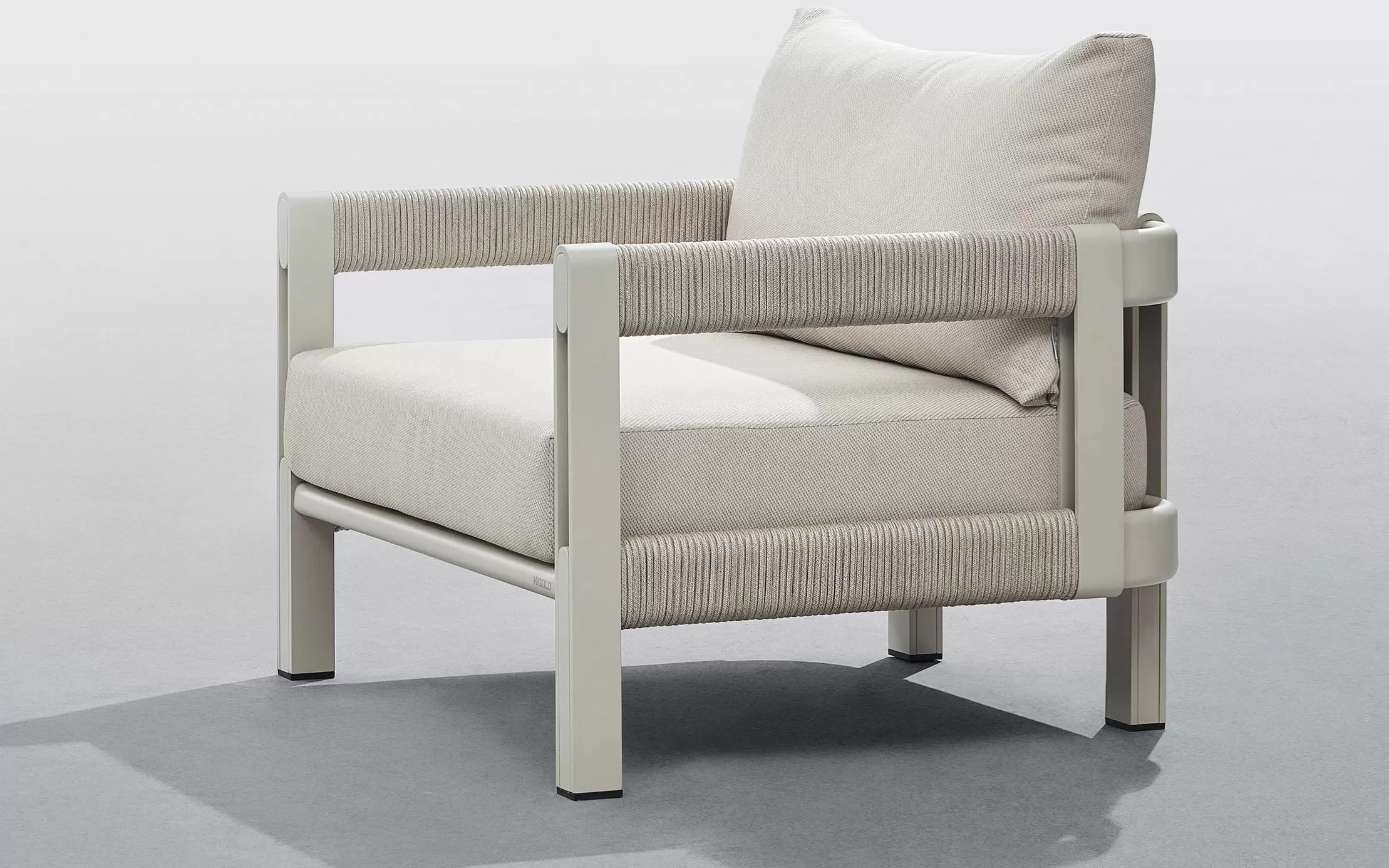 Pleciona lina olefinowa (Outdoor Rope) – boki i oparcia mebli wykończono kunsztownym splotem z liny technicznej. Jest ona hydrofobowa, odporna na promieniowanie UV, pleśń i zabrudzenia, a przy tym niezwykle trwała.