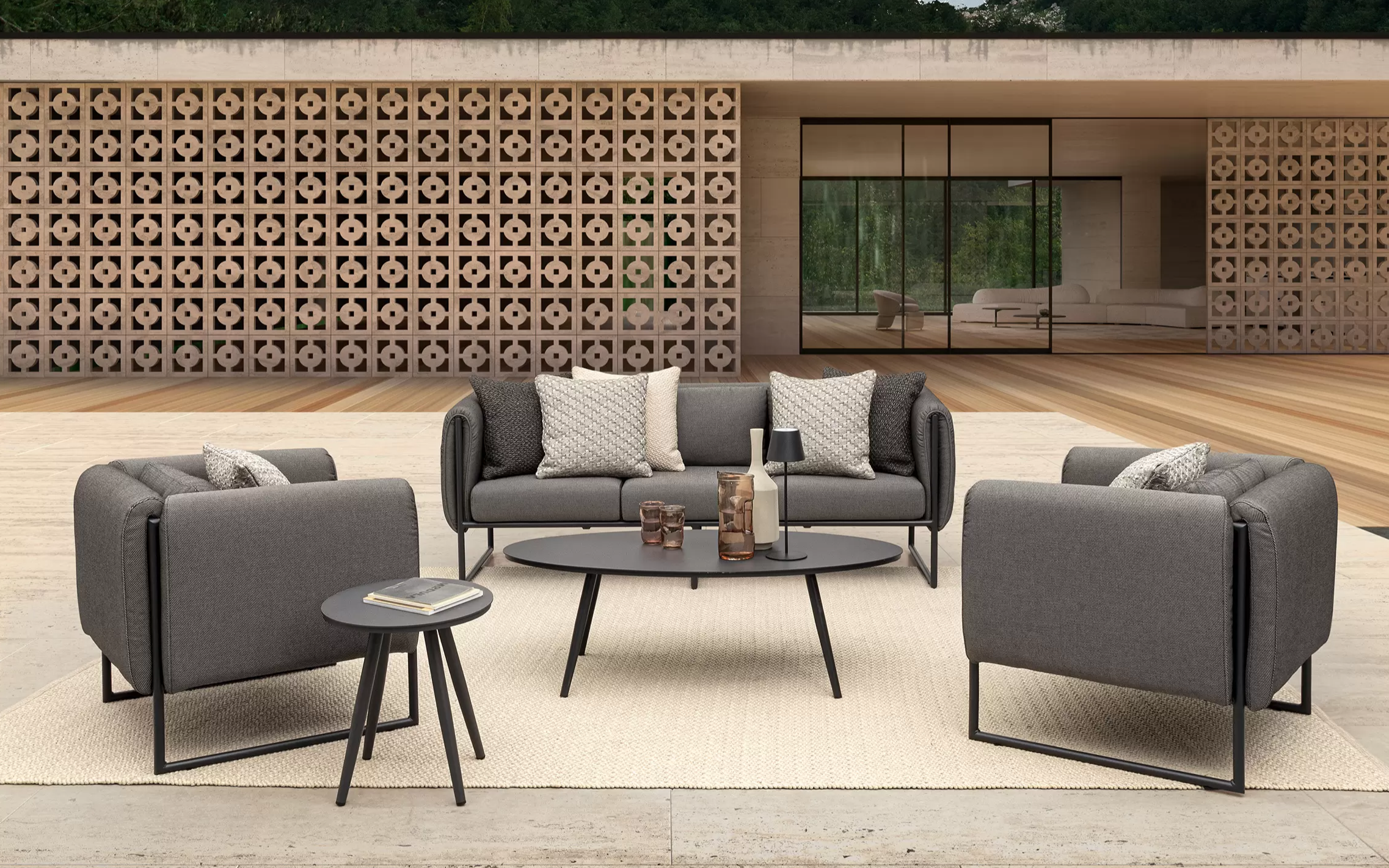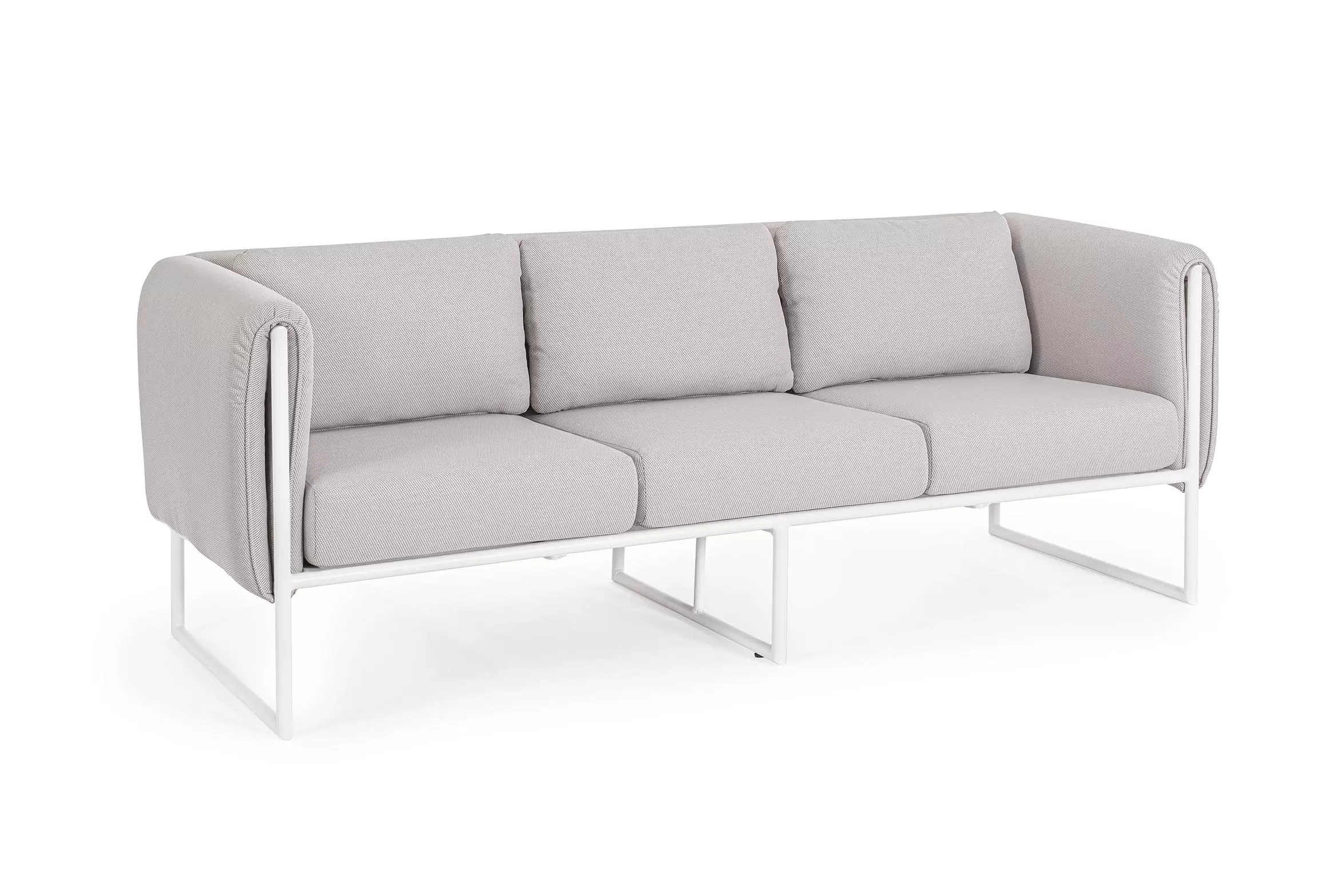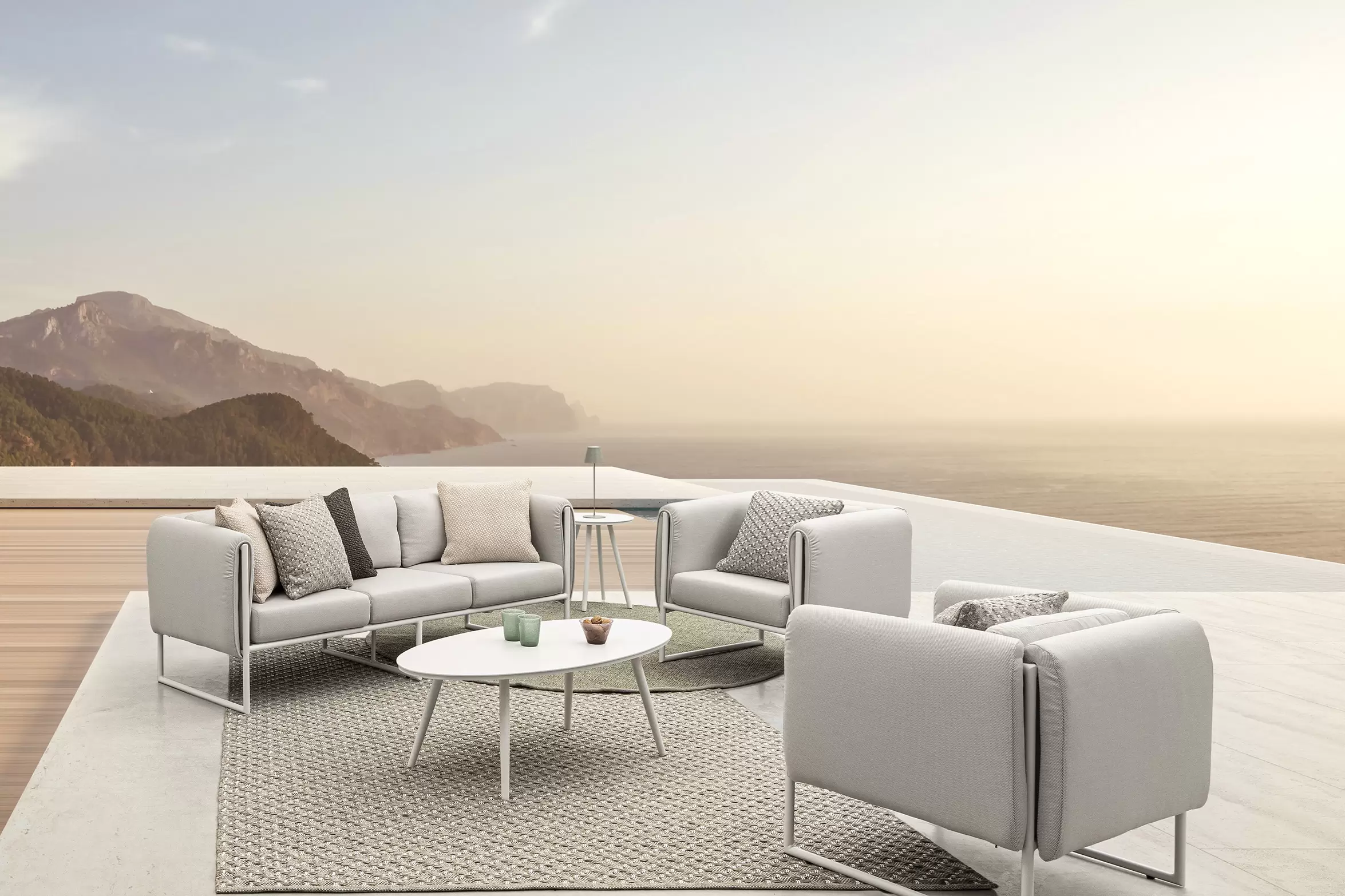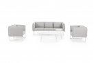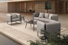 Nowoczesny design kolekcji Pixel przyciąga wzrok. Meble posiadają niezdejmowalne wodoodporne poduszki na siedziskach oraz bocznych obiciach z materiału Olefin.