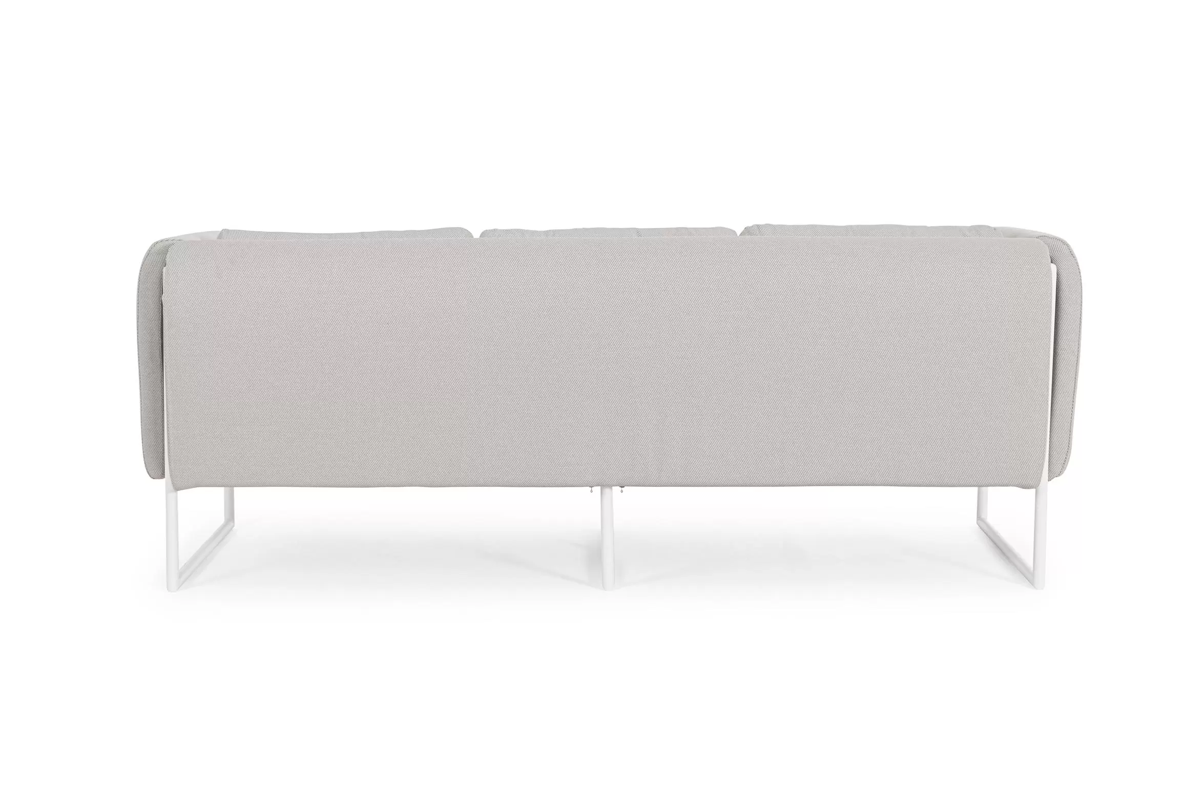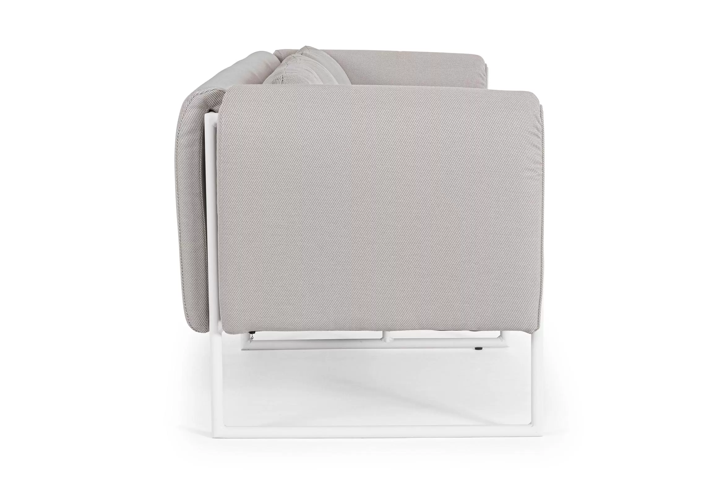 Poduszki na oparciu ze zdejmowalną poszewką z materiału Olefin identycznego jak użyty do obicia siedzisk i boków.