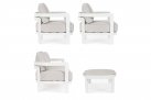 Meble wyposażone w poduszki wodoodporne ze zdejmowanymi poszewkami z akrylowego materiału Olefin.