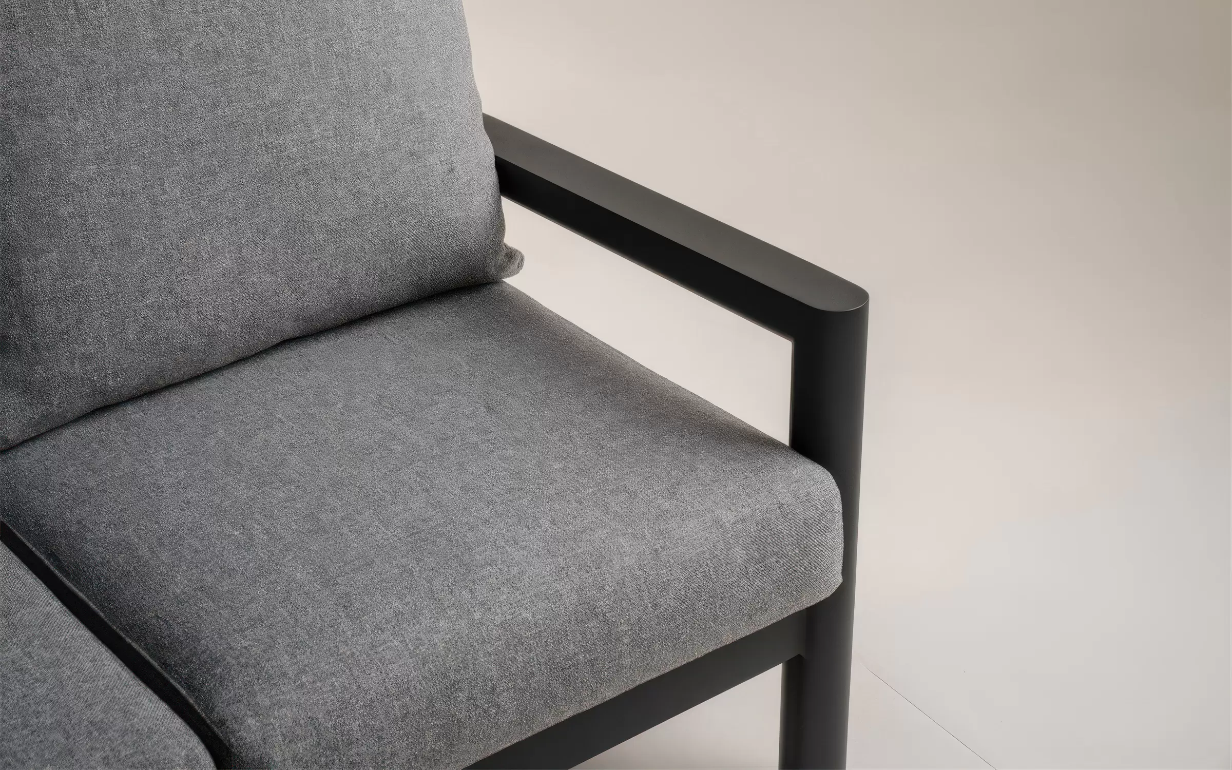 Aluminium malowane proszkowo – stanowi technologiczny fundament zestawu, łącząc "lekkość strukturalną" z bezkompromisową stabilnością. Rama została poddana procesowi precyzyjnego lakierowania proszkowego, dostępnego w prestiżowych odcieniach "champagne" lub "antracyt". Powłoka ta tworzy hermetyczną barierę ochronną, która jest całkowicie uodporniona na korozję, utlenianie oraz ekstremalne wahania temperatur, co gwarantuje nienaganny wygląd mebli przez wiele lat.