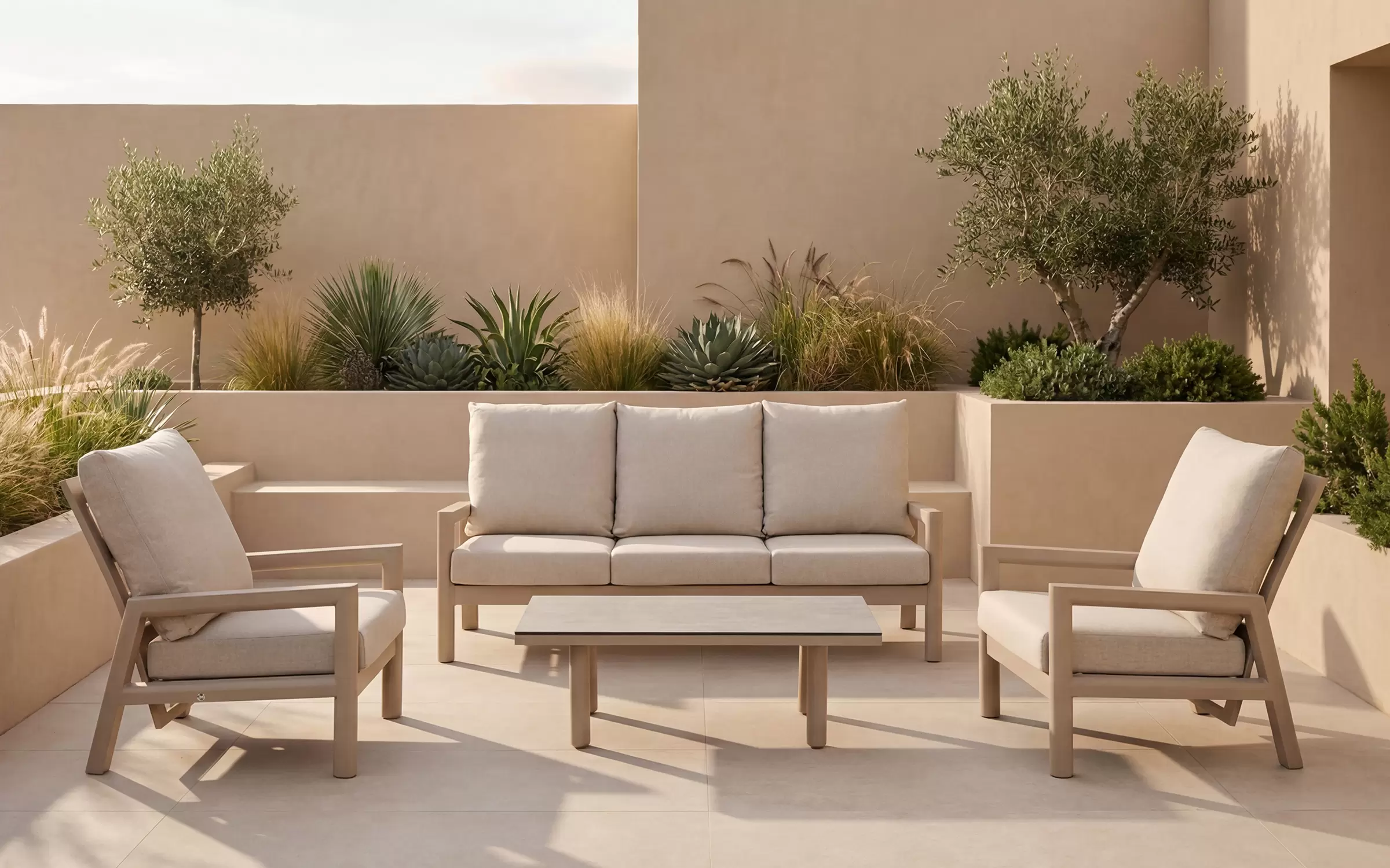 Zestaw można zakupić bez stolika lub dobrać inny z kolekcji Tierra outdoor.