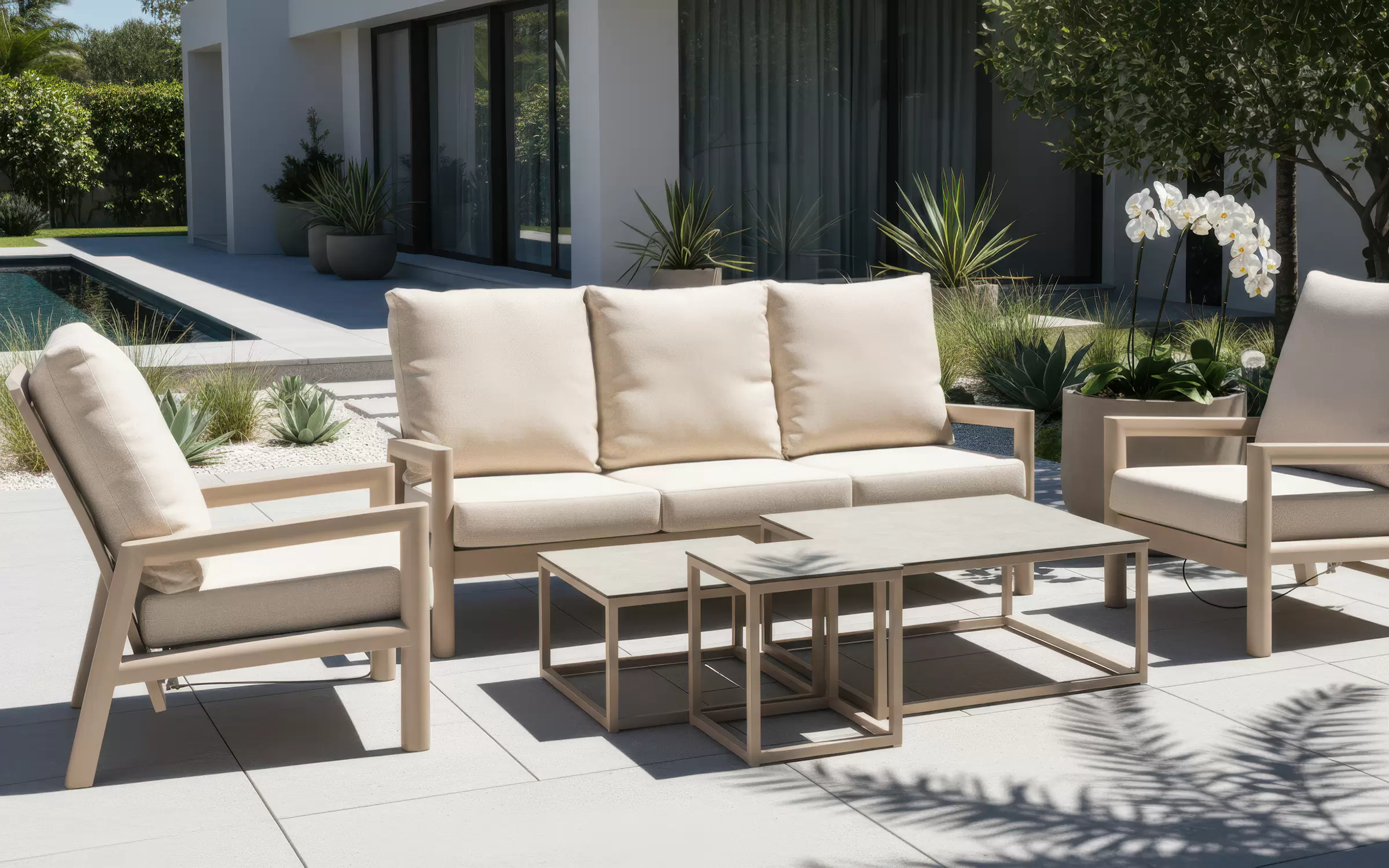 Zestaw wypoczynkowy SEVILLA to kwintesencja nowoczesnej architektury ogrodowej, zaprojektowana z myślą o bezkompromisowym relaksie na tarasach i w luksusowych strefach basenowych.