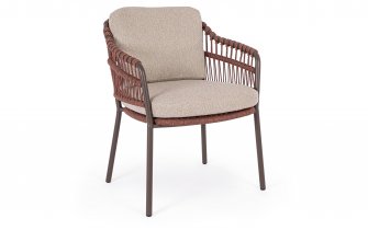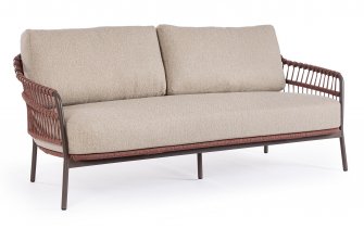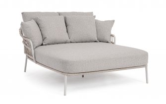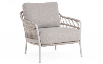 Nowoczesny komplet mebli ogrodowych Talaia w minimalistycznej a zarazem eleganckiej stylistyce. Konstrukcja ze stali nierdzewnej w malowaniu proszkowym opleciona lekkim oplotem z liny polipropylenowej.