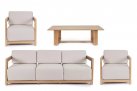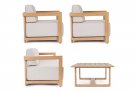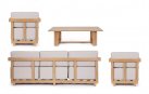 Meble ogrodowe wypoczynkowe aluminiowe pokryte powłoką imitującą drewno. Kubistyczny kształt oraz grube poduszki siedziska to wyznacznik designu tego modelu.