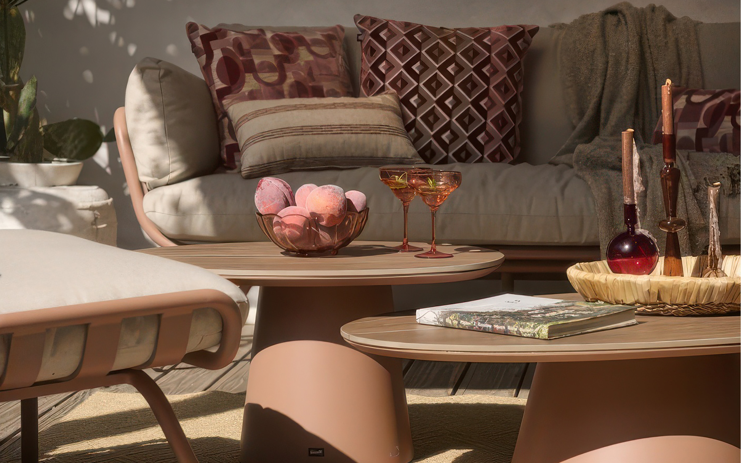 TOSCANA Zestaw wypoczynkowy ogrodowy aluminiowy z poduszkami i stolikami mocha beige