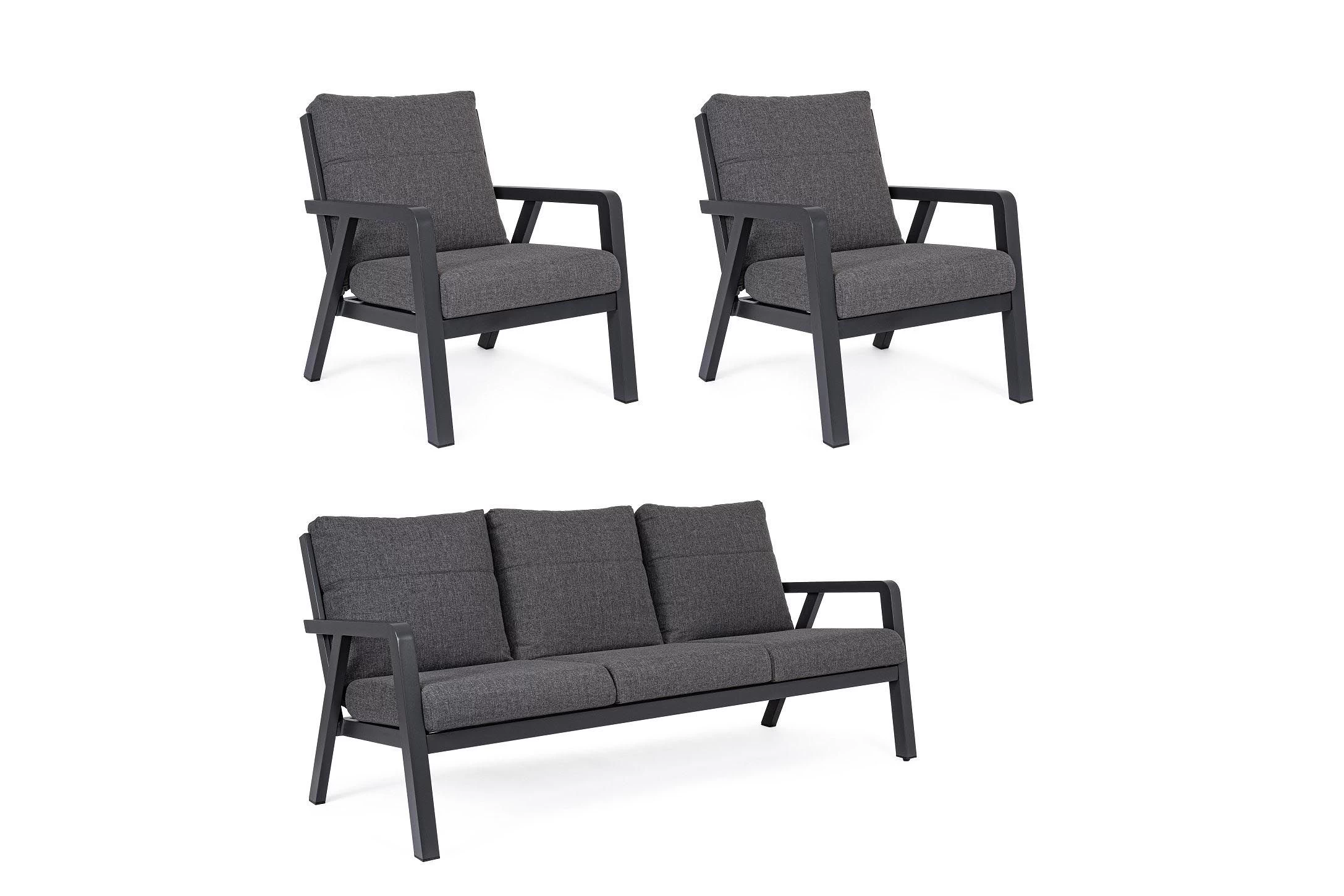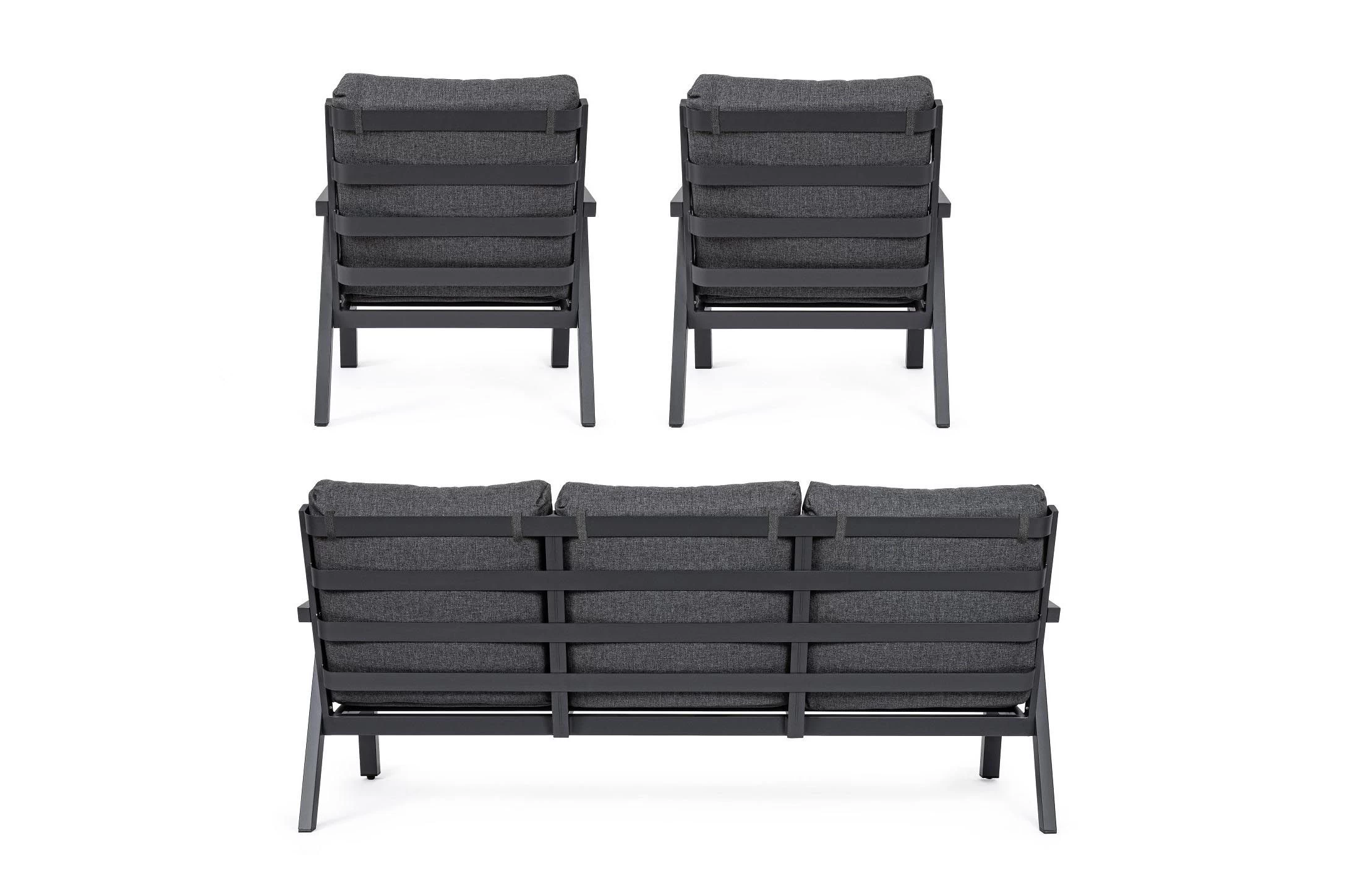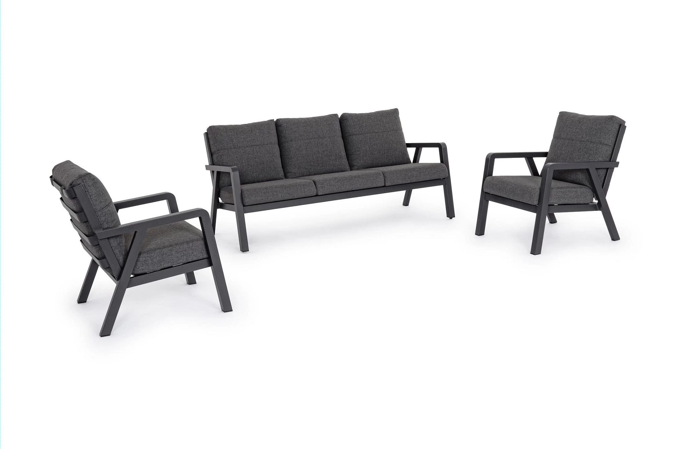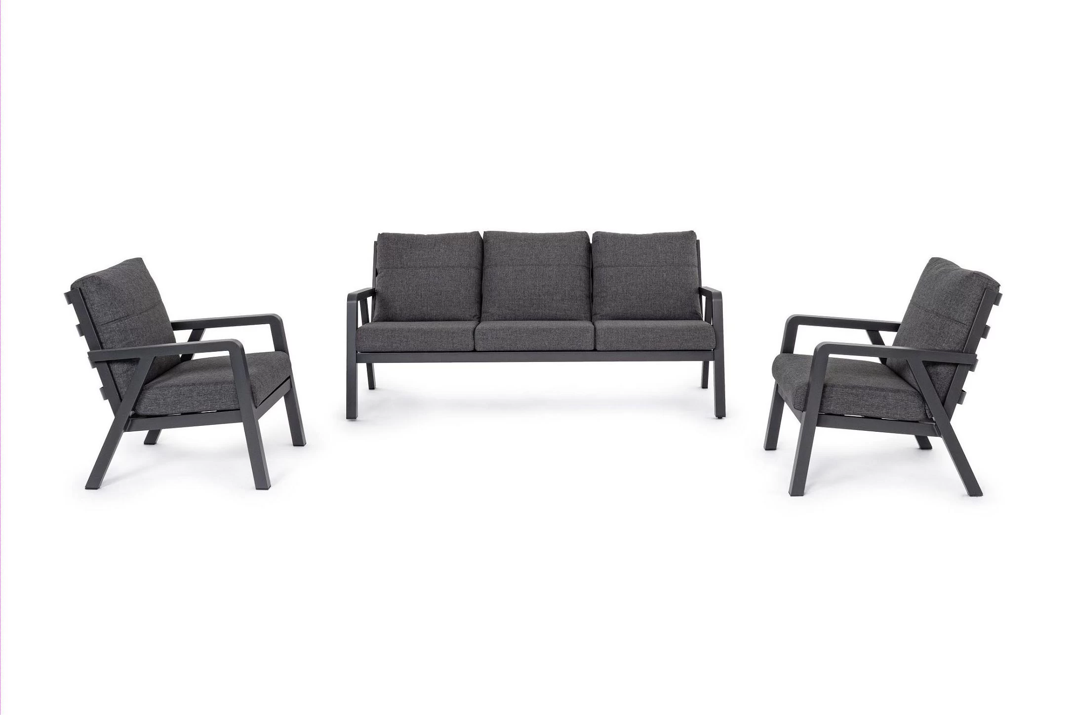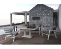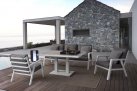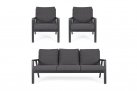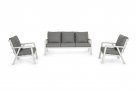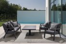Zestaw aluminiowy ogrodowy z szeroką sofą i wysokimi oparciami. Każdy element zestawu można nabyć osobno. W komplecie stolik z płynnie podnoszonym blatem ceramicznym.