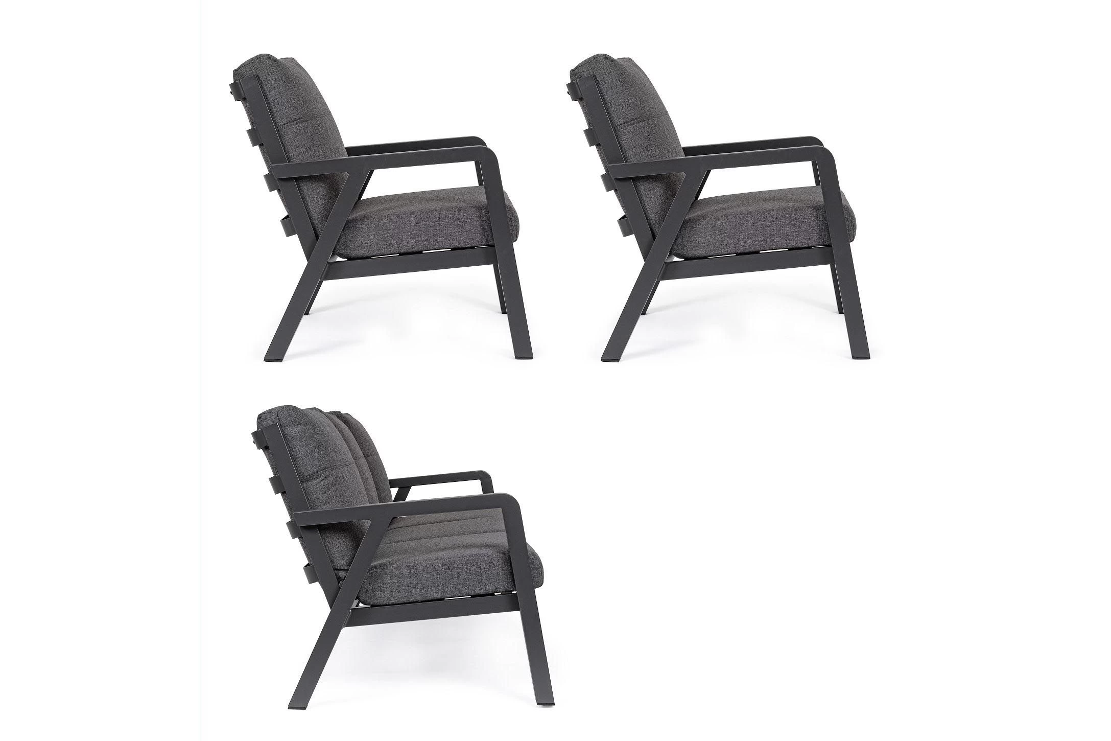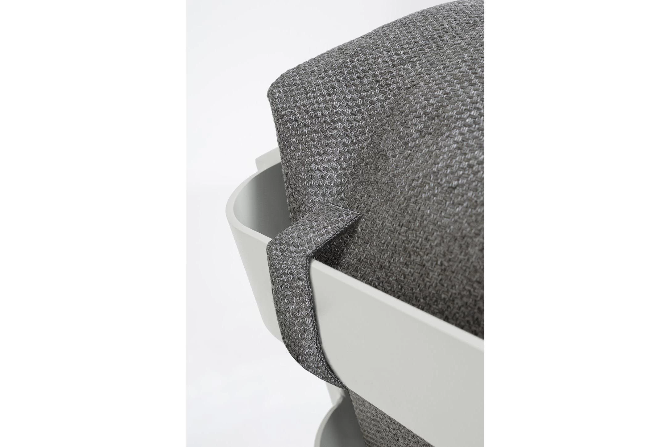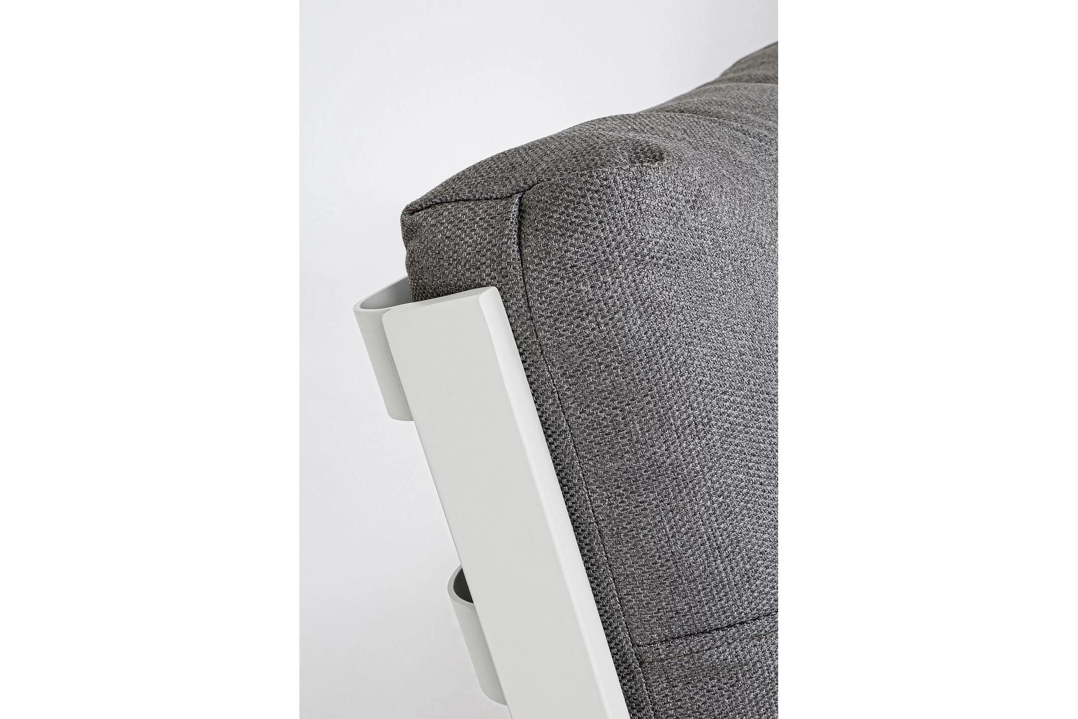 Rama aluminiowa, malowana proszkowo (poliester). Poduszki z zdejmowanymi poszewkami z tkaniny olefinowej (100% polipropylen). Do montażu.