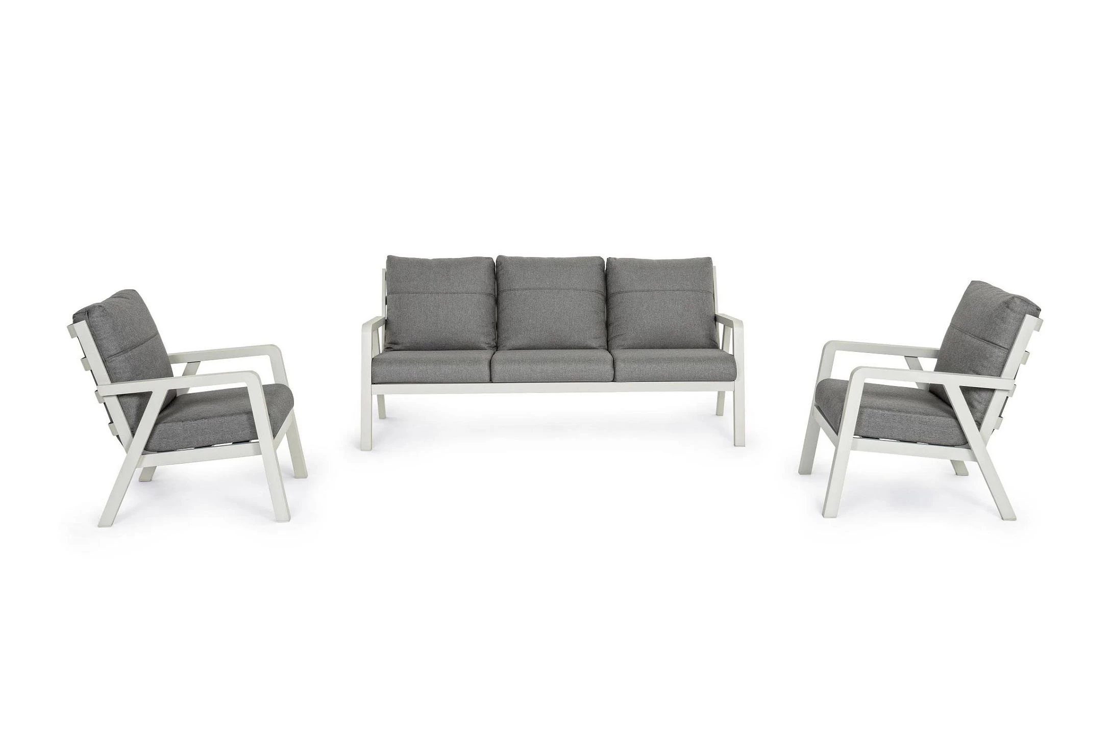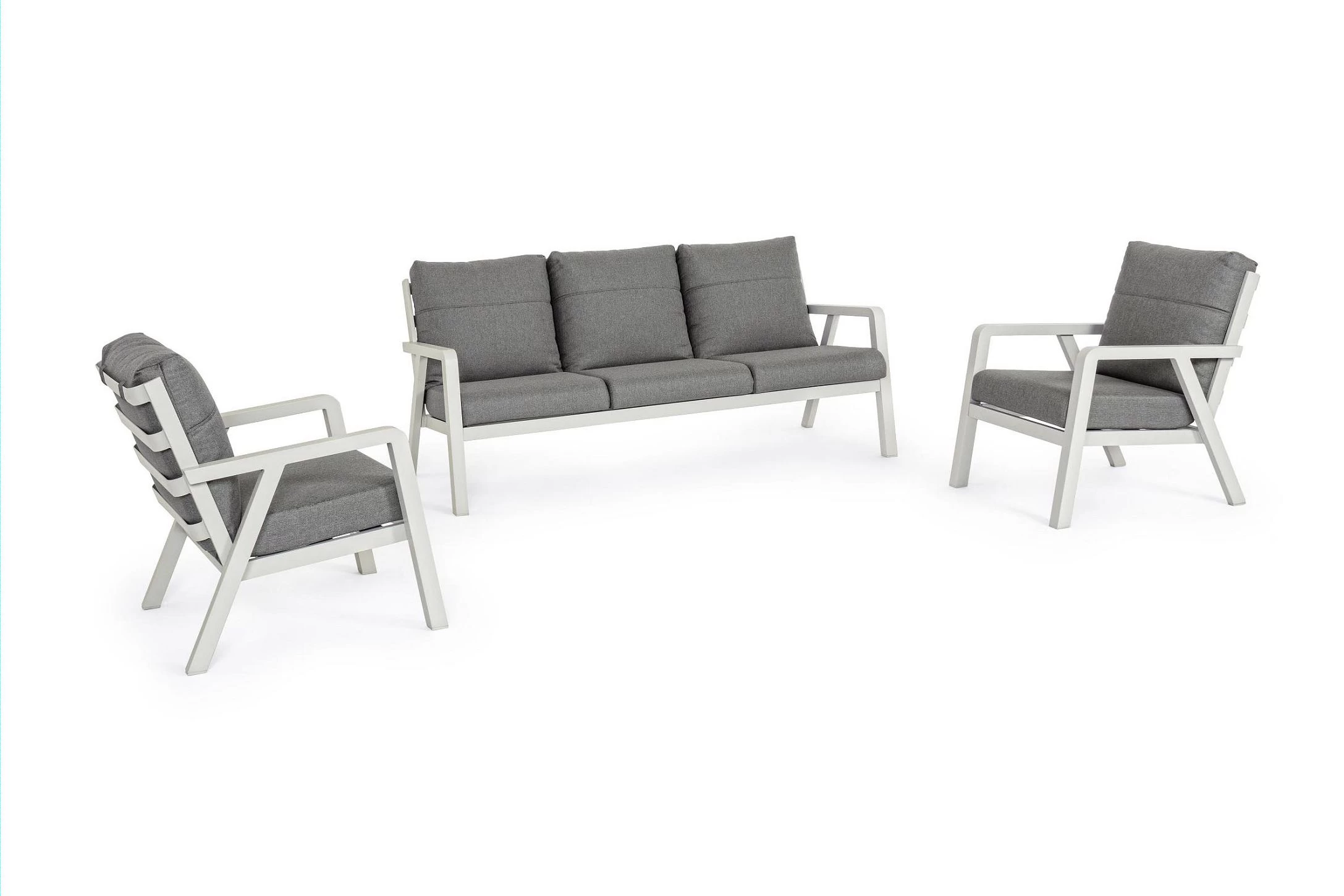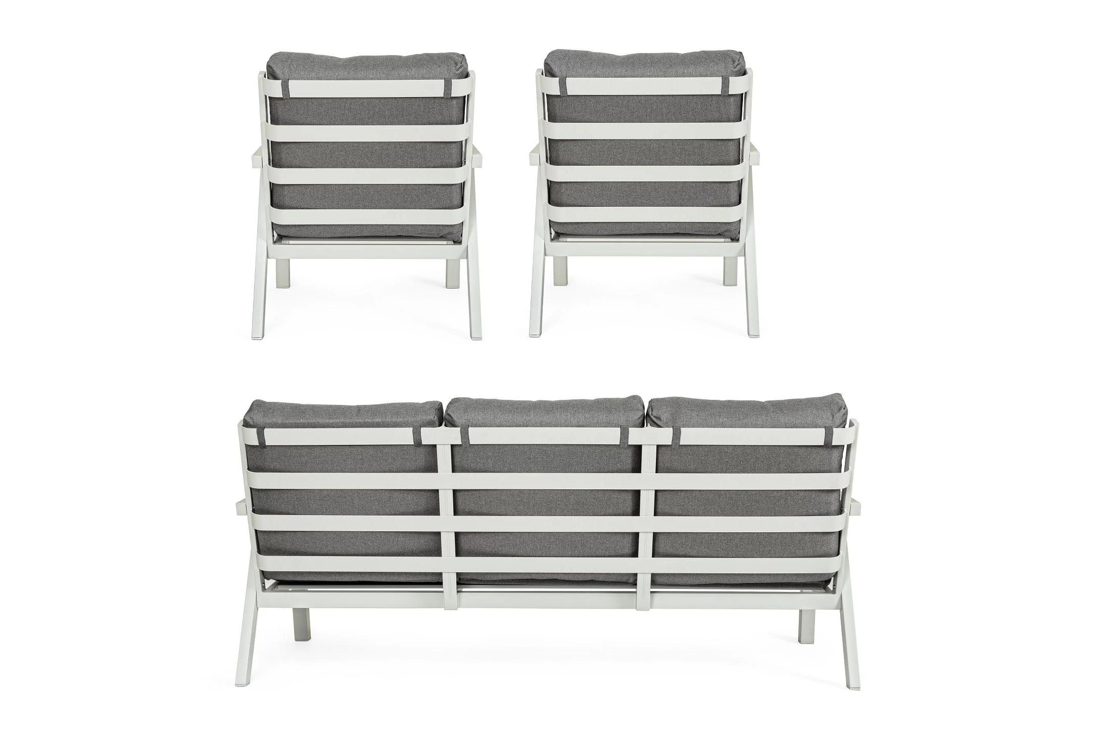Rama aluminiowa, malowana proszkowo (poliester). Poduszki z zdejmowanymi poszewkami z tkaniny olefinowej (100% polipropylen). Do montażu.