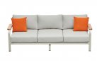 Ta kolekcja mebli tarasowych mistrzowsko łączy surowy minimalizm z najwyższą dbałością o ergonomię i wygodę użytkowania. Sofa oraz fotele wyróżniają się głęboką konstrukcją i grubymi poduszkami z tkaniny Olefin, co gwarantuje luksusowy standard odpoczynku na świeżym powietrzu. Całość dopełniają wyselekcjonowane wstawki z naturalnego drewna teakowego, które nadają zestawowi szlachetny wygląd i podkreślają jego wysoką jakość wykonania.