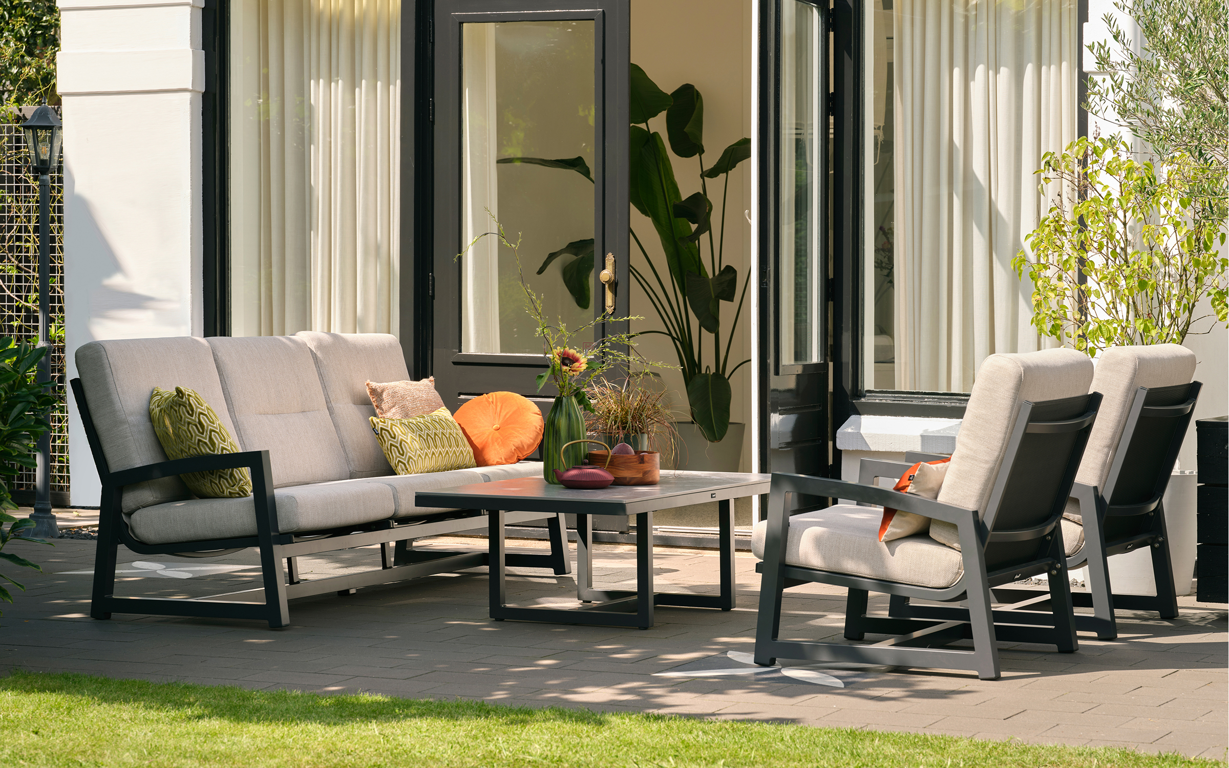Zestaw Gio marki Hartman to eleganckie połączenie lekkiej konstrukcji aluminiowej z wysokim komfortem użytkowania. Meble w kolorze grafitowym wyróżniają się minimalistycznym designem, trwałością oraz odpornością na warunki atmosferyczne. Zestaw doskonale sprawdzi się zarówno na tarasie, jak i w ogrodzie.