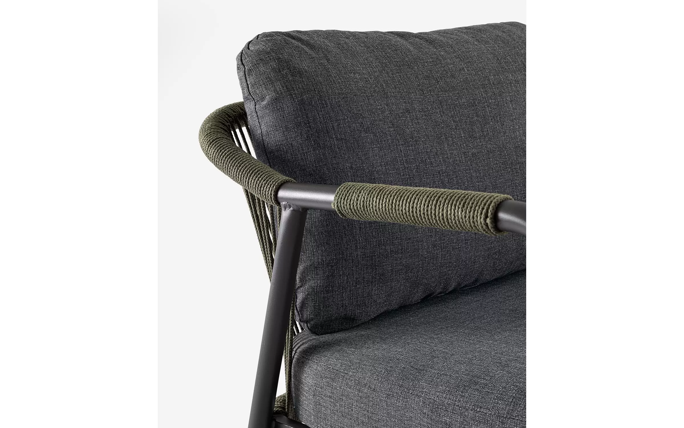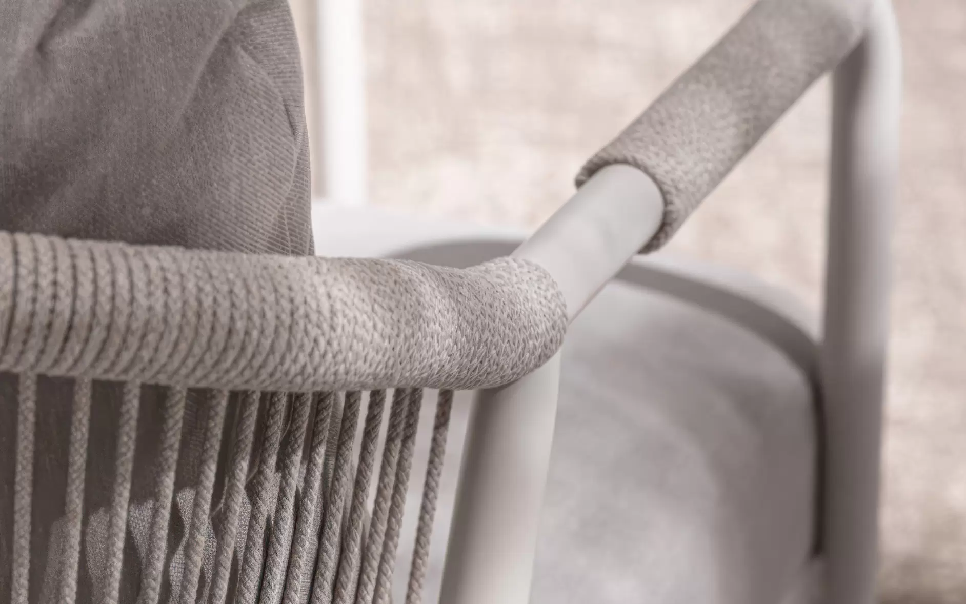 Oparcie i podłokietniki oplecione liną polipropylenową wodoodporną i odporną na uv.