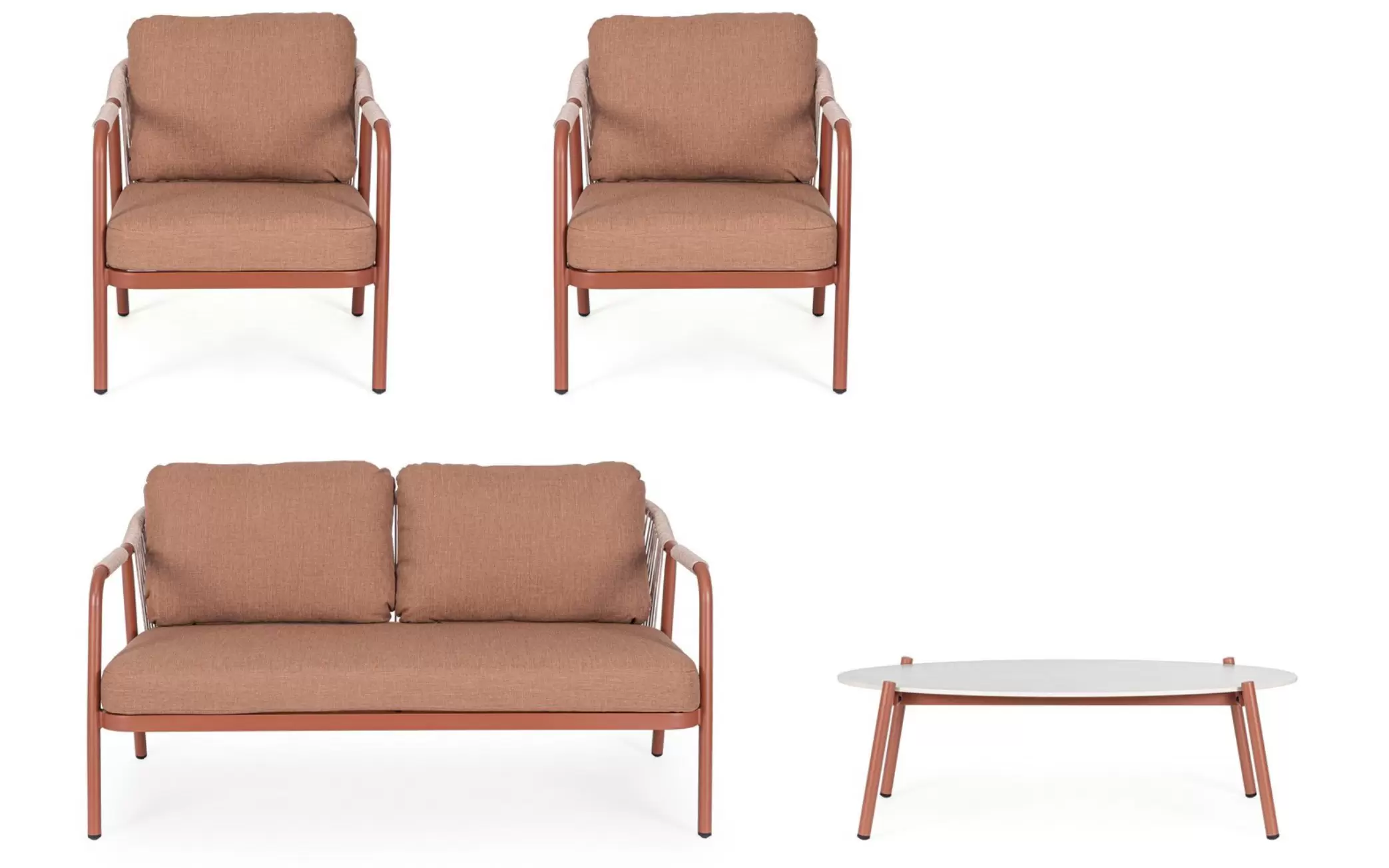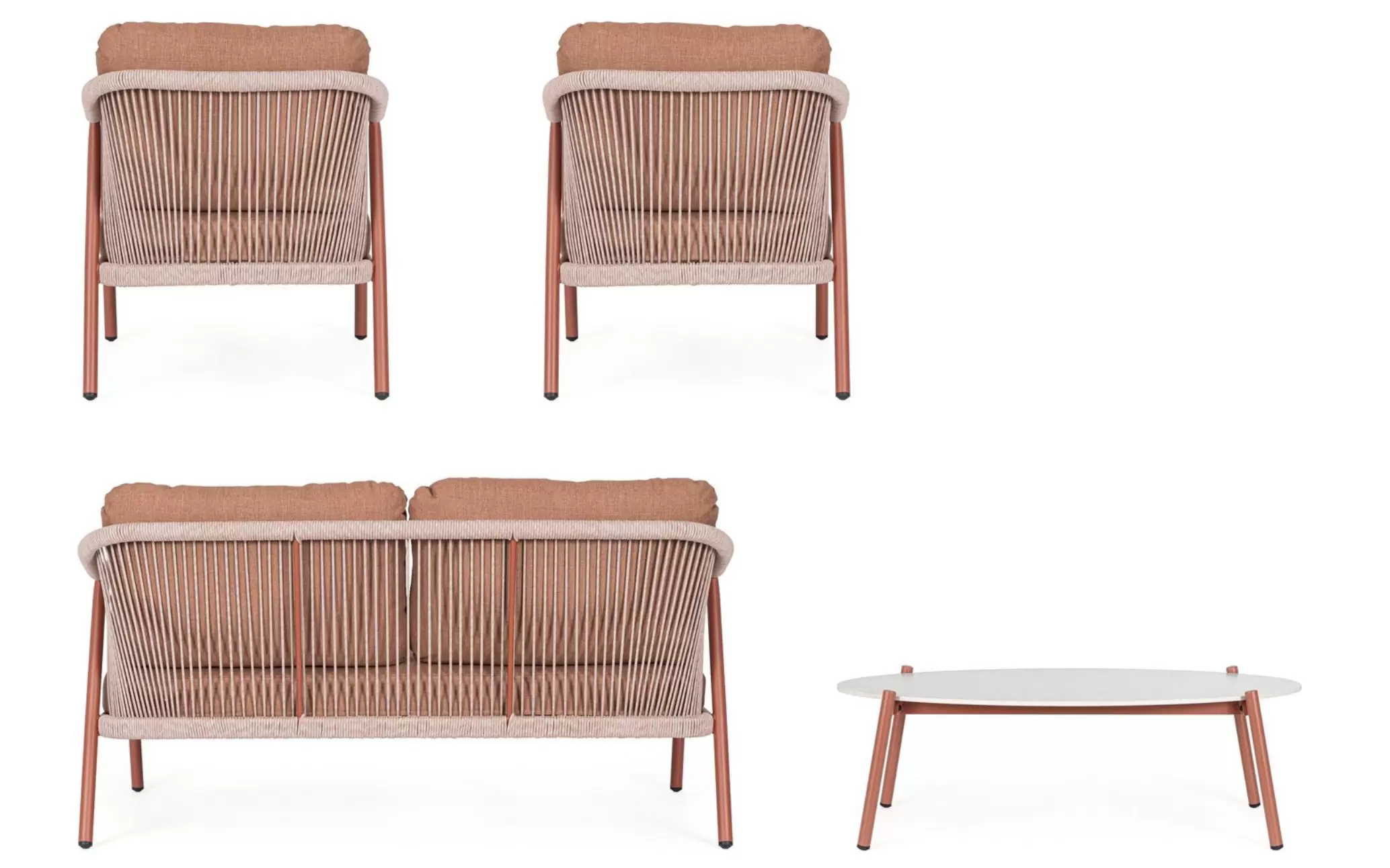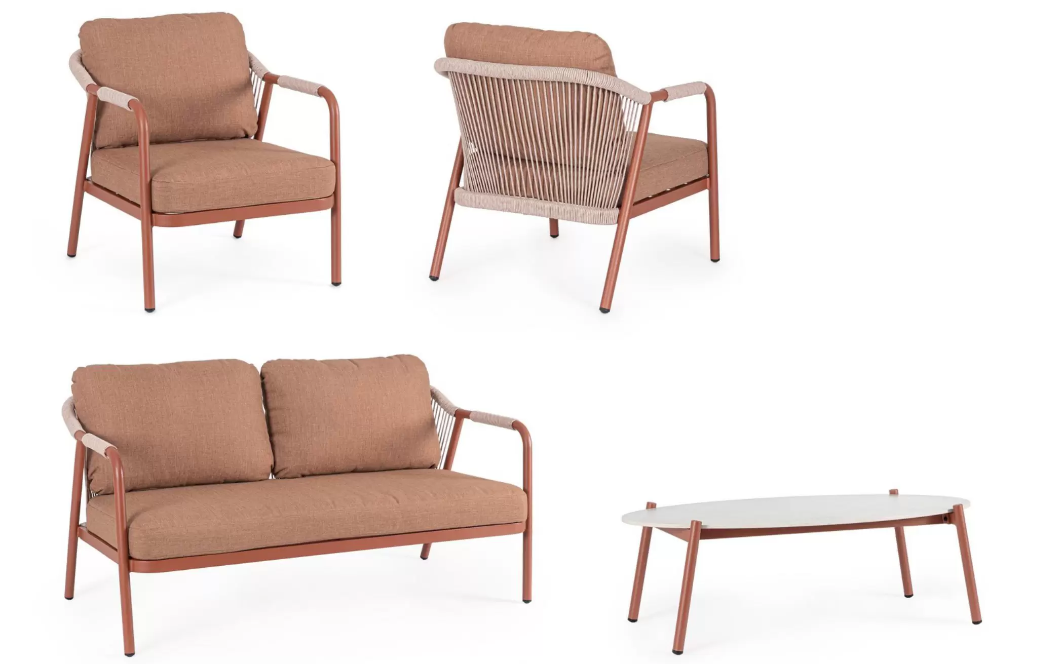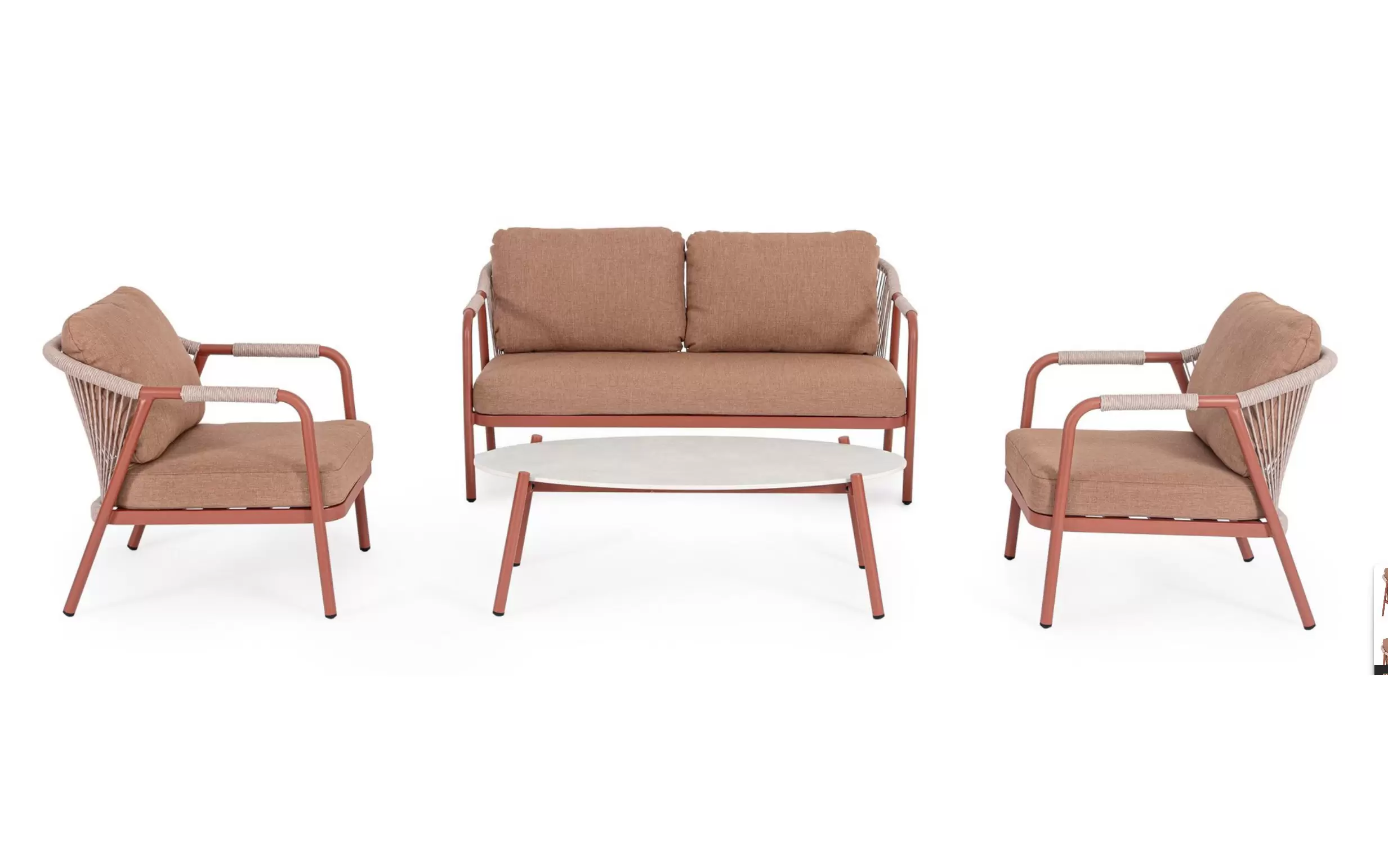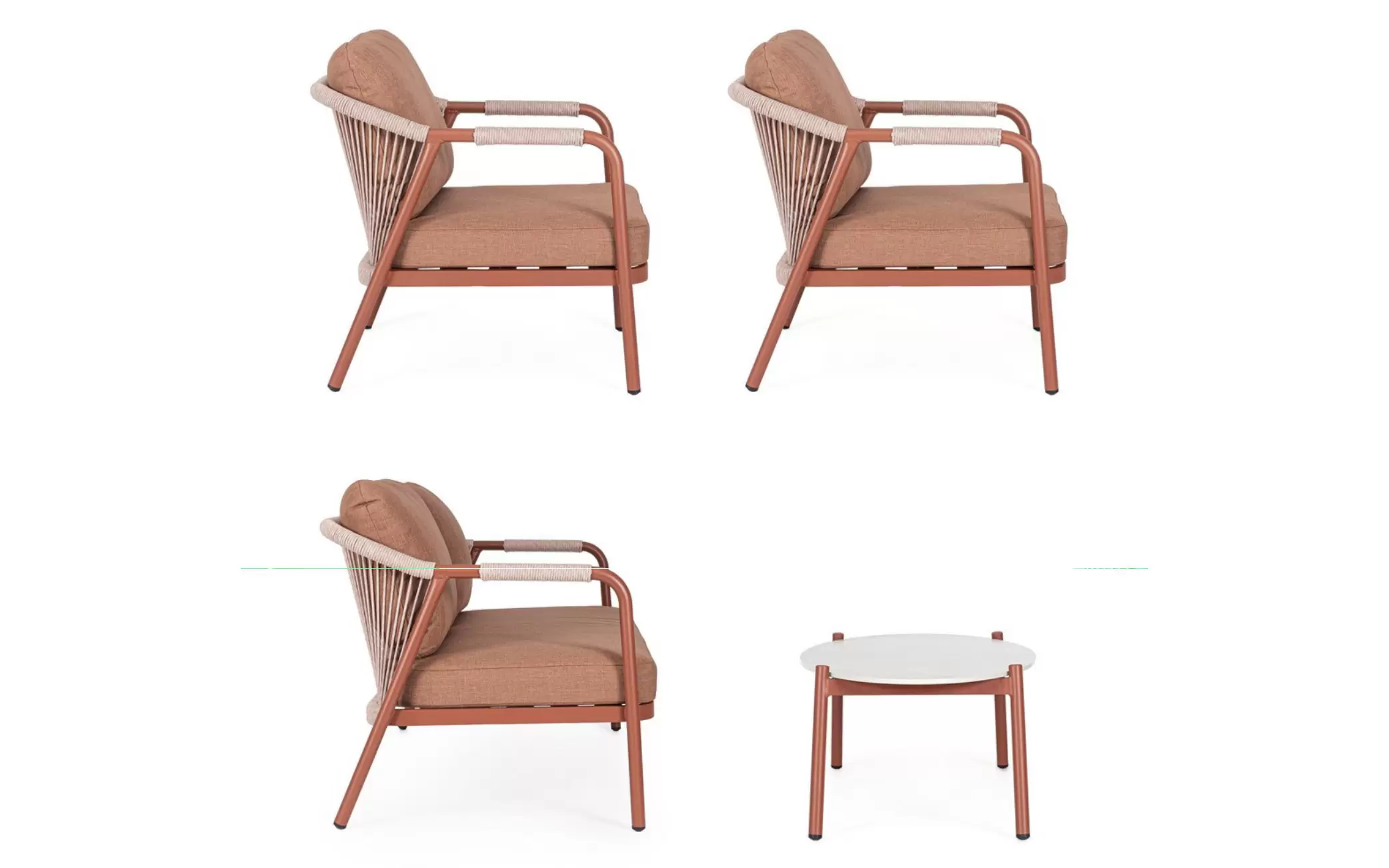 Meble ogrodowe na balkon aluminiowe kolor ceglany MIRAVET lina beżowa bizzotto