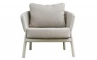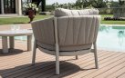 Poduszki zdejmowane w kolorze jasnoszarym, wykonane z tkaniny odpornej na warunki atmosferyczne.