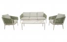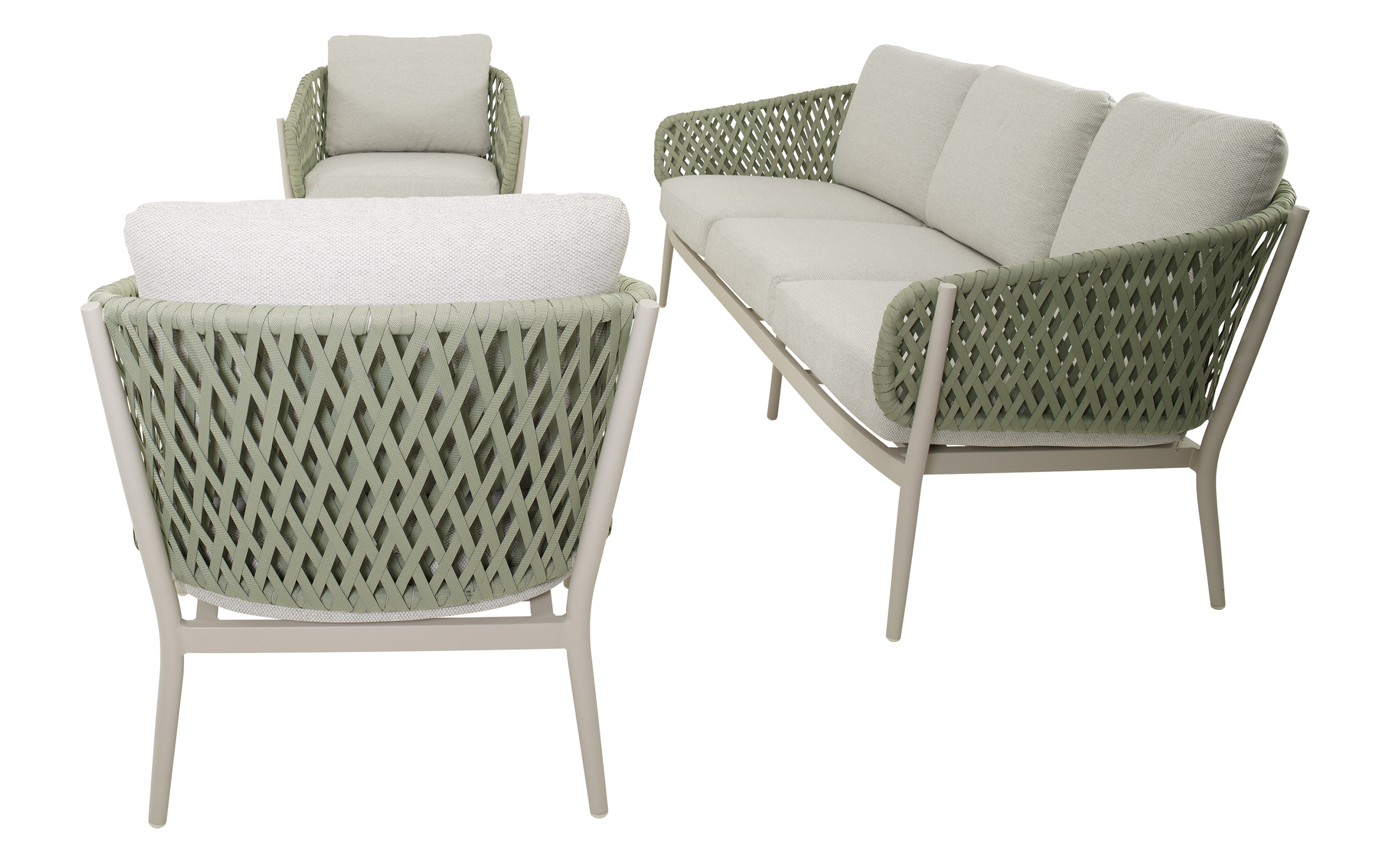 ZAYA Zestaw wypoczynkowy ogrodowy aluminiowy beż mat z zieloną plecionką i poduszkami Olefin