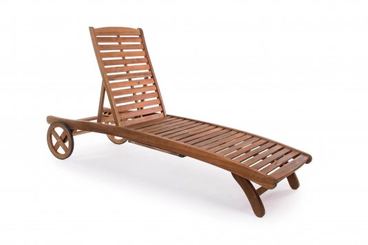 Leżak ogrodowy z drewna akacji z kółkami i regulowanym pochyleniem oparcia / Leżak 195 x 66 cm