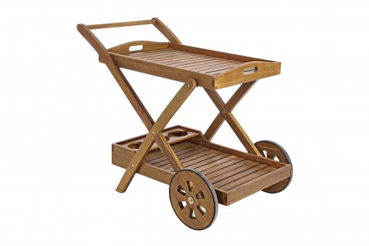 Wózek na drinki z drewna akacji / 2 tace oraz uchwyty na butelki / 2 kółka / Wymiary: 56 szer. x 89 głęb. x 76 wys. [cm]