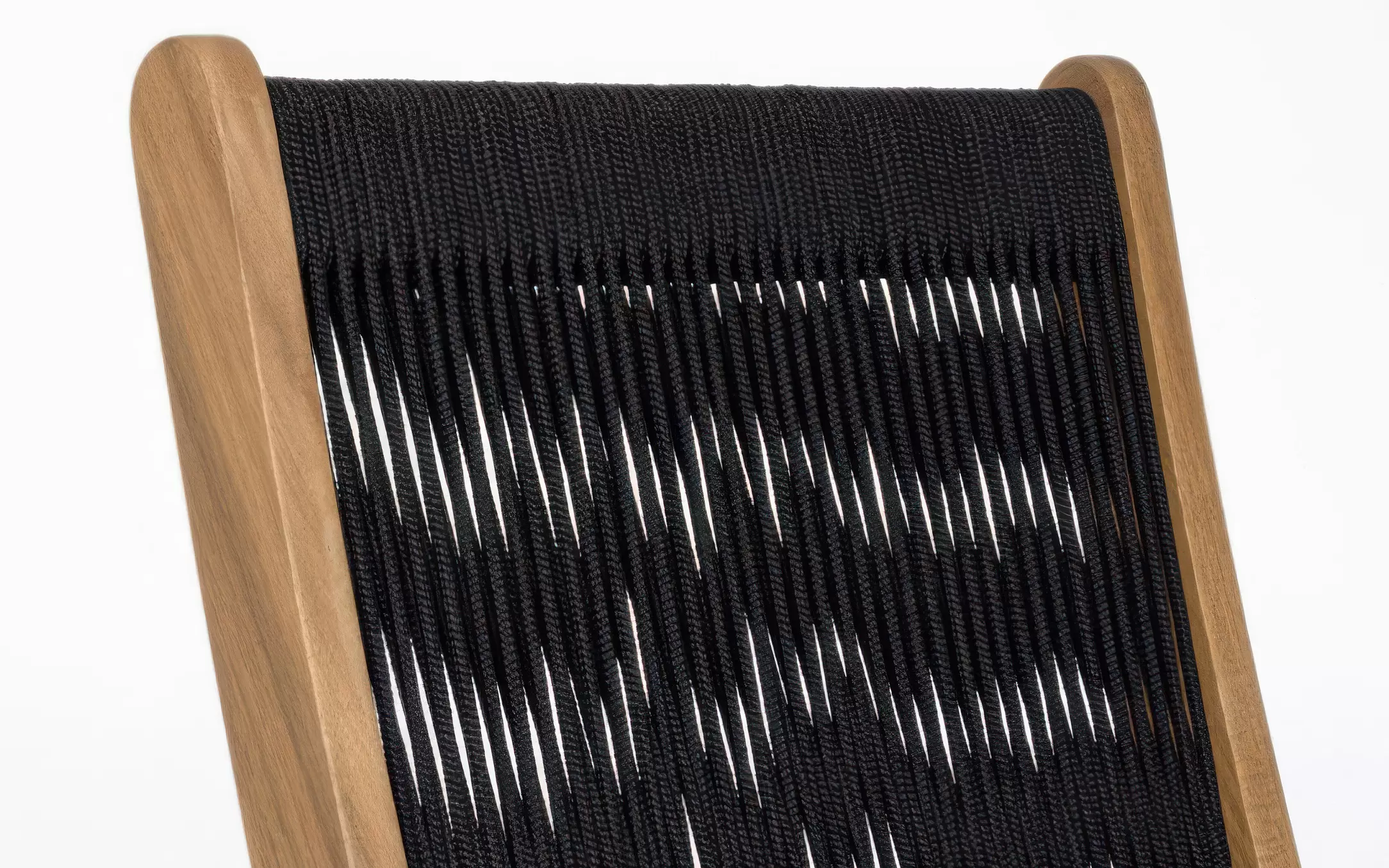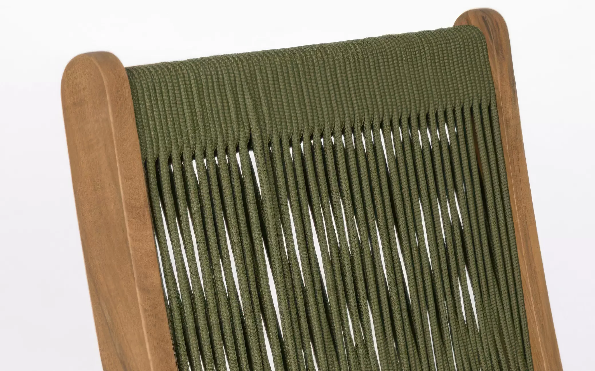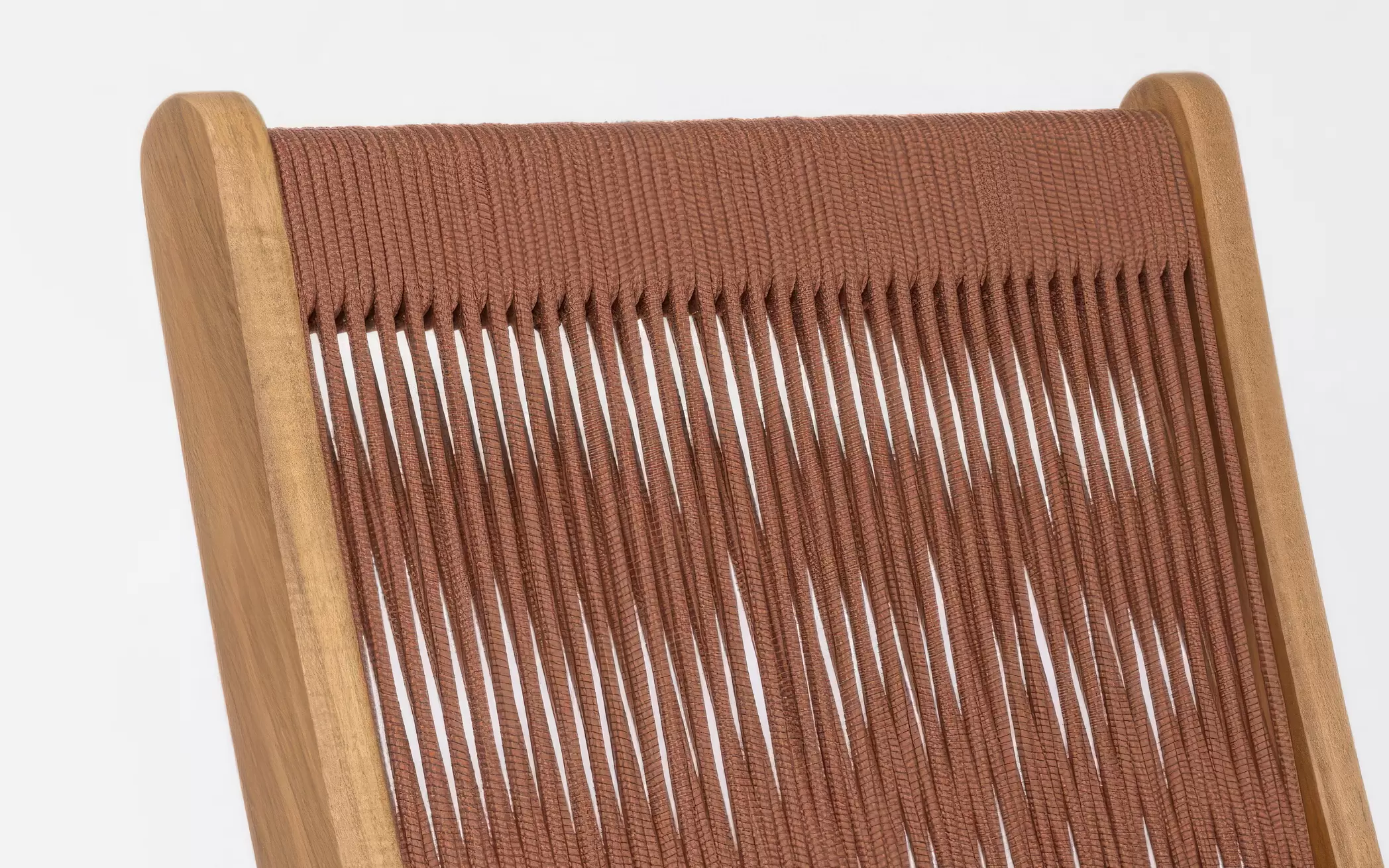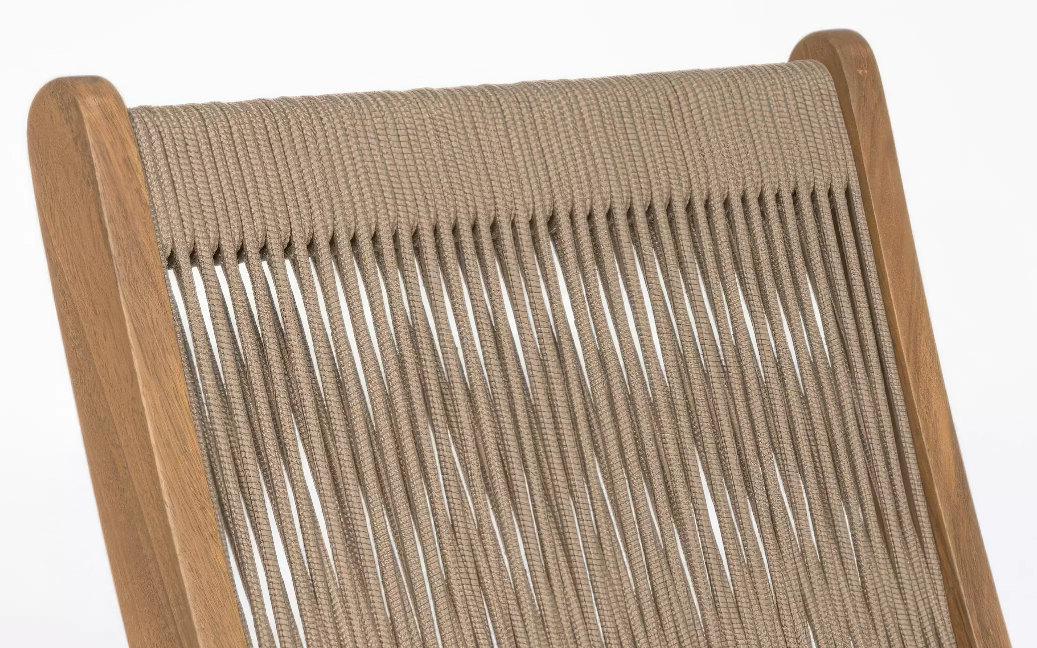 Oparcie wykonano z lina polipropylenowej, odpornej na UV, wilgoć i odkształcenia. Plecionka nadaje krzesłu lekkości wizualnej i nowoczesnego charakteru.