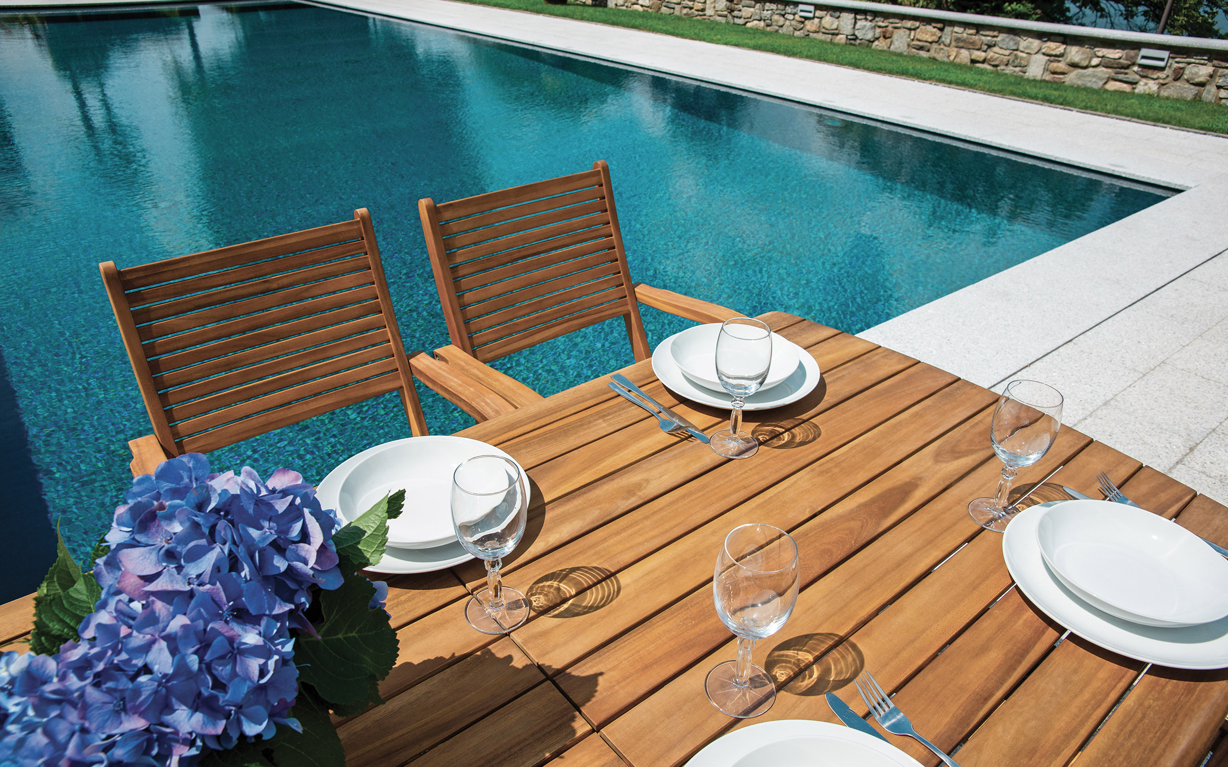 Wykonane z naturalnego drewna akacjowego, odpornego na warunki atmosferyczne, wilgoć i promieniowanie UV. Drewno egzotyczne o wysokiej trwałości i ciepłym odcieniu. Zalecana regularna konserwacja olejem do drewna.