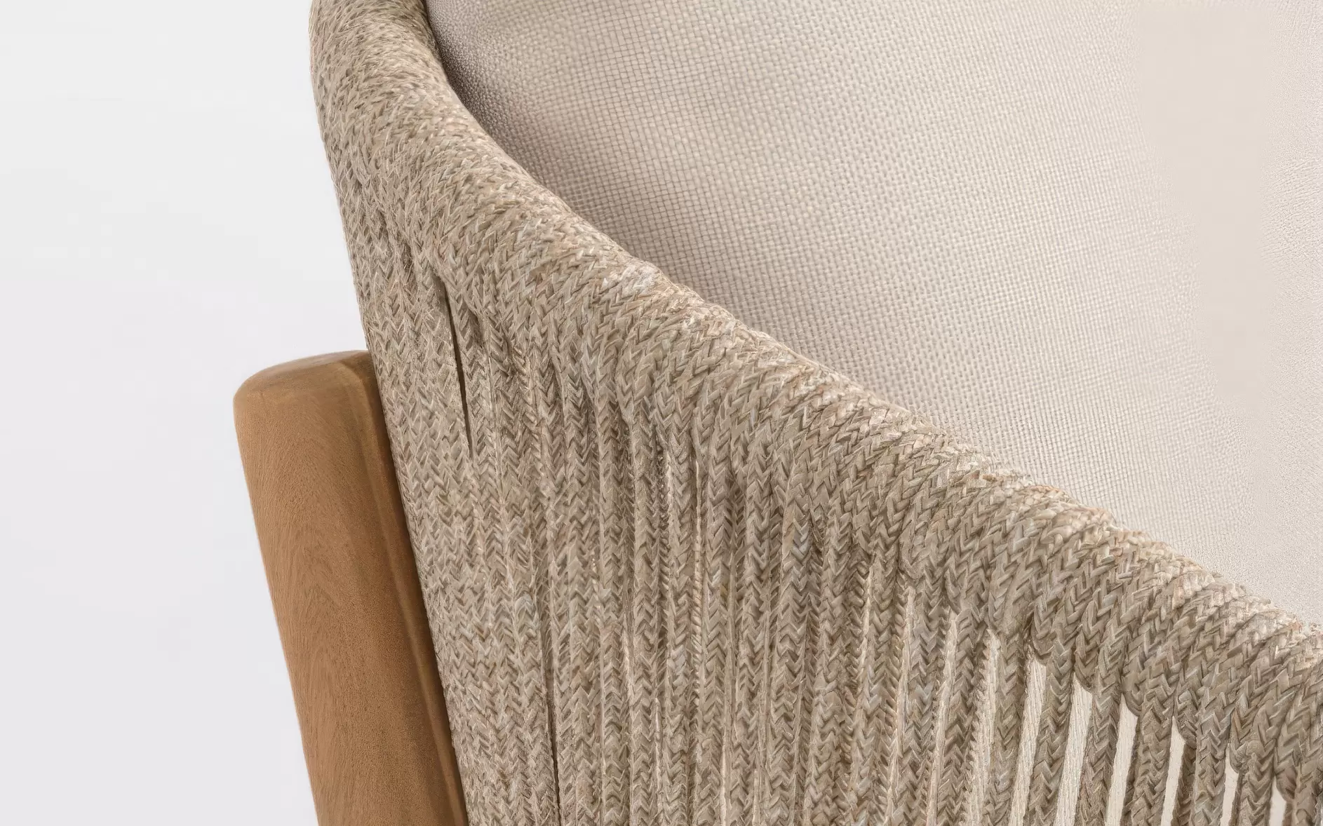 Aluminium i plecionka poliestrowa – szkielet oparcia wykonany z aluminium jest całkowicie odporny na rdzę i niezwykle lekki, co ułatwia przestawianie mebli. Oplot z technicznej liny poliestrowej charakteryzuje się wysoką sprężystością i odpornością na promieniowanie UV. Dzięki temu plecionka nie rozciąga się i nie kruszeje na słońcu, zachowując swoją formę przez lata.